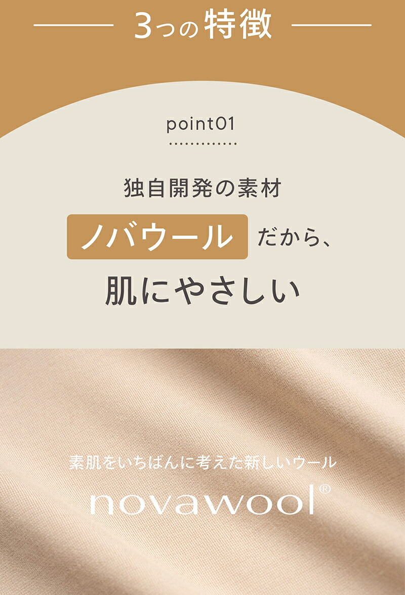 素肌に直接触れる下着のために独自に開発した素材「nova wool melty plus」を使用。