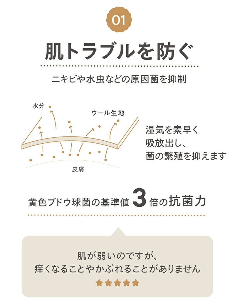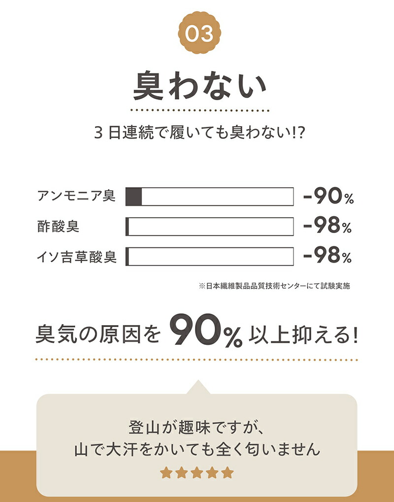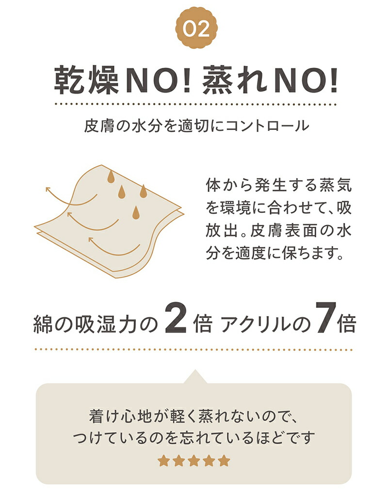 汗蒸れ・汗冷え・汗臭を解消する消臭・抗菌機能に加え、素肌を清潔かつ快適に保つ調温・調湿機能に長けています。