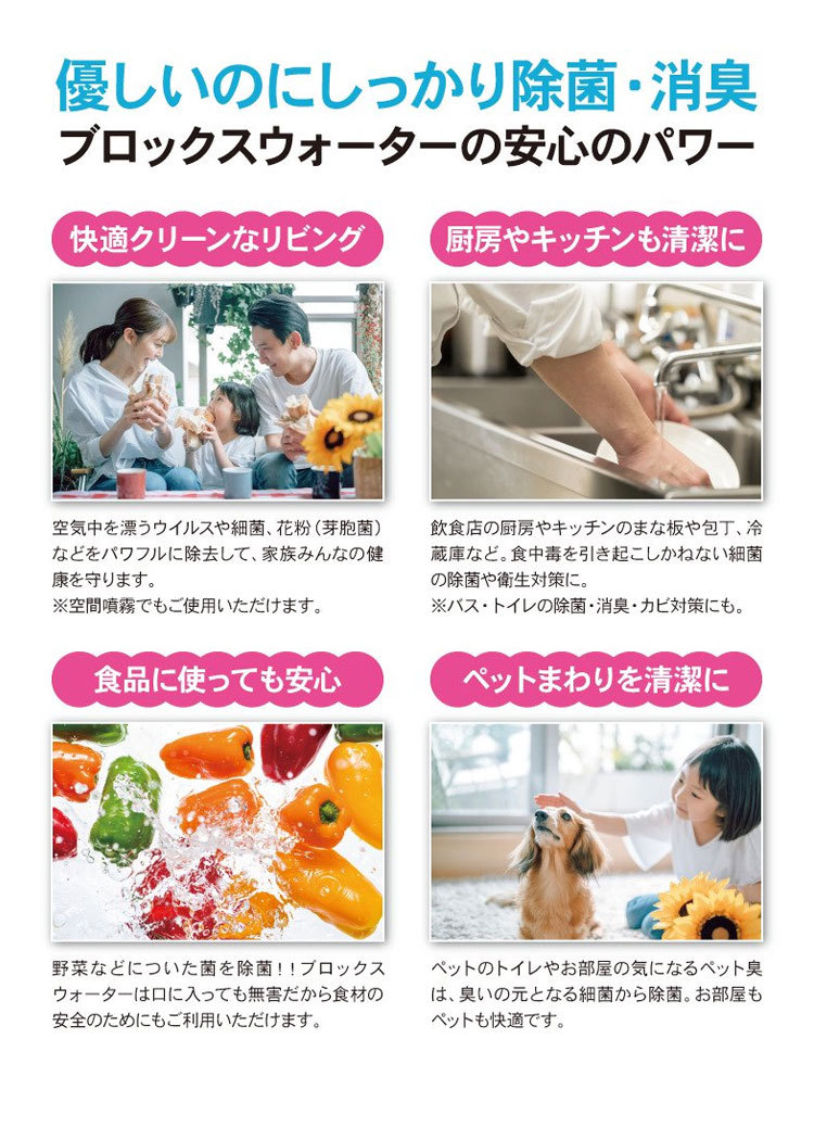 ブロックスウォーターは、アルコールでは除菌しきれなかった細菌やウィルスにも