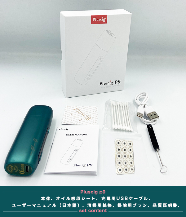 ◆セット内容:Pluscig P9本体・TypeC ケーブル・掃除用ブラシ・綿棒(8本)