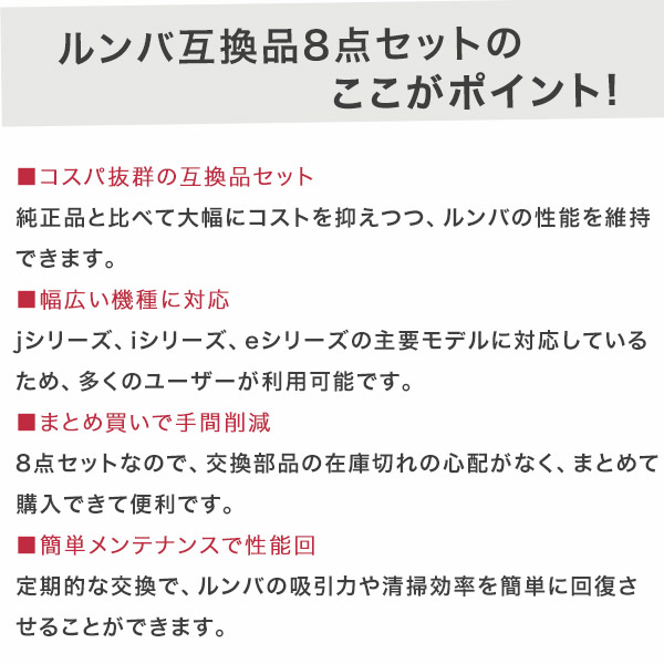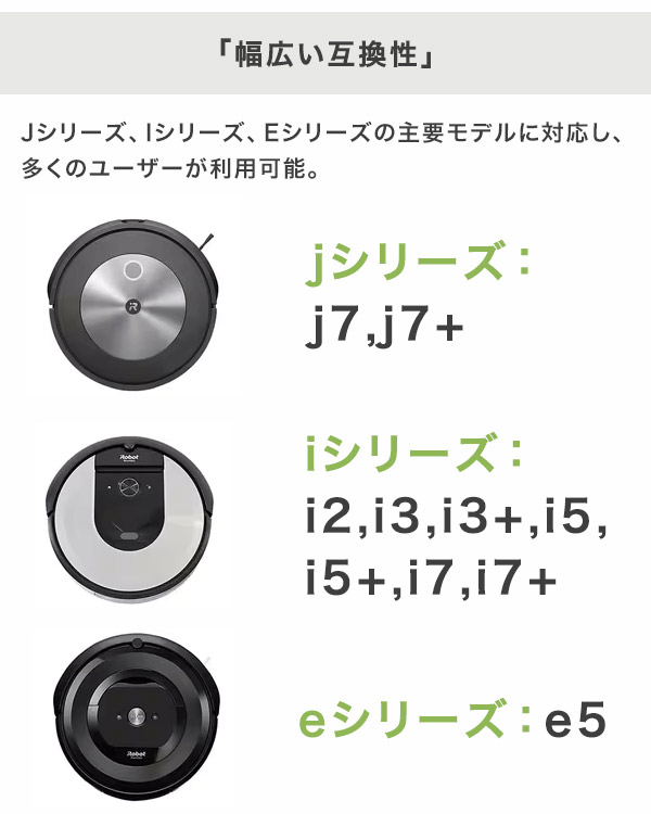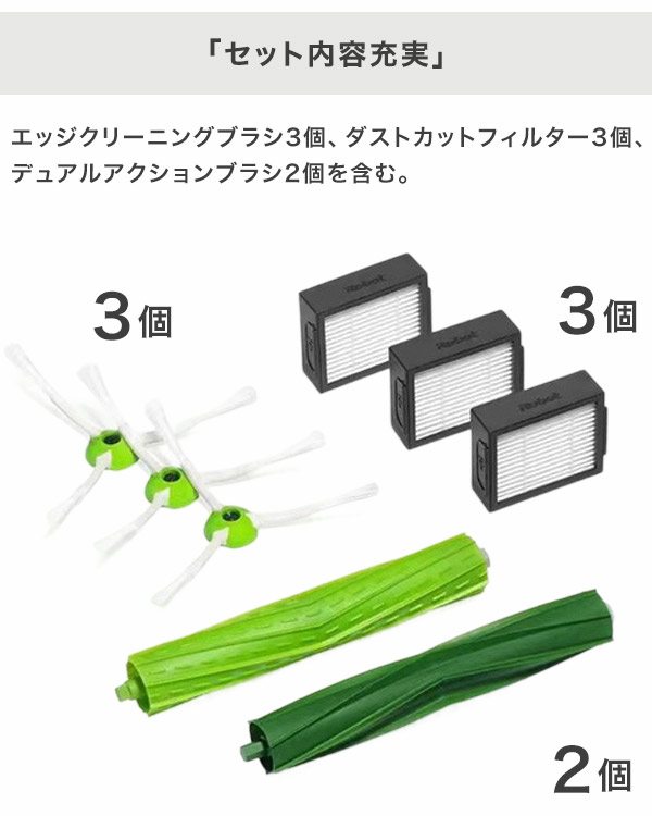 ルンバjシリーズ、iシリーズ、eシリーズの主要モデルに対応する8点セットで、あなたのお掃除ロボットに新たな息吹を!