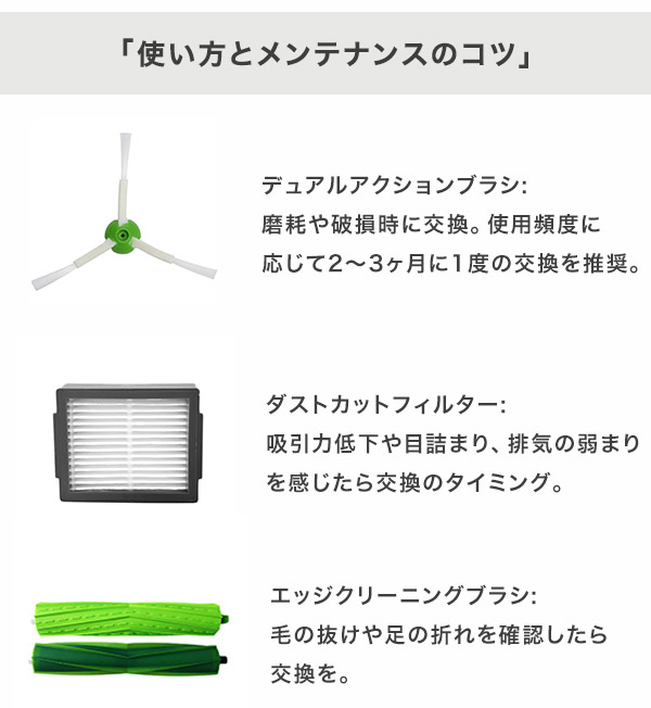 定期的な交換で、ルンバの吸引力や清掃効率を容易に回復。