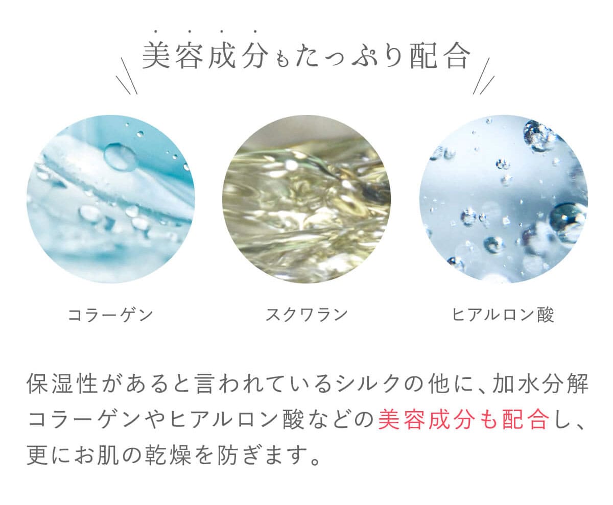 シルクの他にも美容成分を配合し、お肌の乾燥を防ぎます。