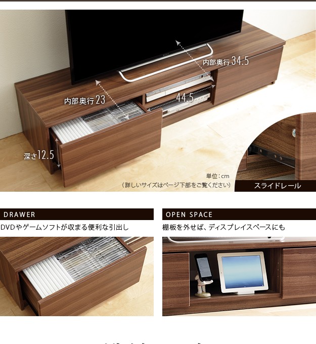 テレビ台 テレビボード ローボード 幅150cm 背面収納 ステラ リビングボード TVボード ロータイプ ウォールナット 白 ホワイト 木製 北欧 モダン キャスター付き