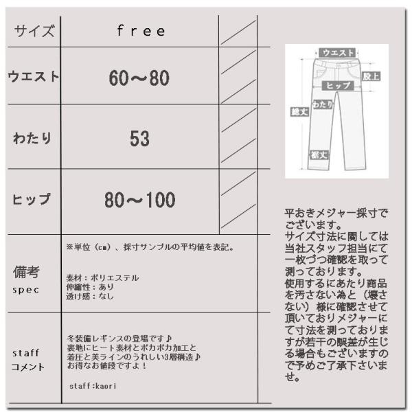 ディテール:冬完全装備レギンスの登場です♪通常のコンプレックス系の骨盤や美脚を元に作られた商品に今度は裏地にヒート素材とポカポカ加工と着圧と美ラインに3層構造の拘りです。通常タグ商品であれば3倍近い値段になりますが当店WEB価格驚きの価格です。