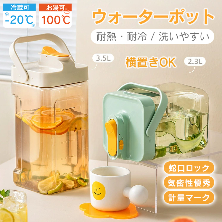 ポット 冷水ポット 横に倒せるお茶ポット 麦茶入れる容器 ウォータージャグ おしゃれ 倒せる 冷水 麦茶入れ ウォーターピッチャー お茶入れ容器 プラスチック ミルクジャグ 冷蔵庫 冷蔵庫ポット 耐熱冷水ポット 洗いやすい 簡単 キーパー タンク お茶入れ 2リットル 縦横 耐熱ボトル ウォーターボトル 2.3L 蛇口付き 安全ロック ハンドル付き 漏れない ウォータージャグ ドリンクボトル キャンプ アウトドア 部活 スポーツ 広口 果物 チューハイ 果実酒 梅酒 デスク 防災 非常時 ウォータータンク 給水袋 敬老の日 父の日 母の日 クリスマス プレゼント ギフト
