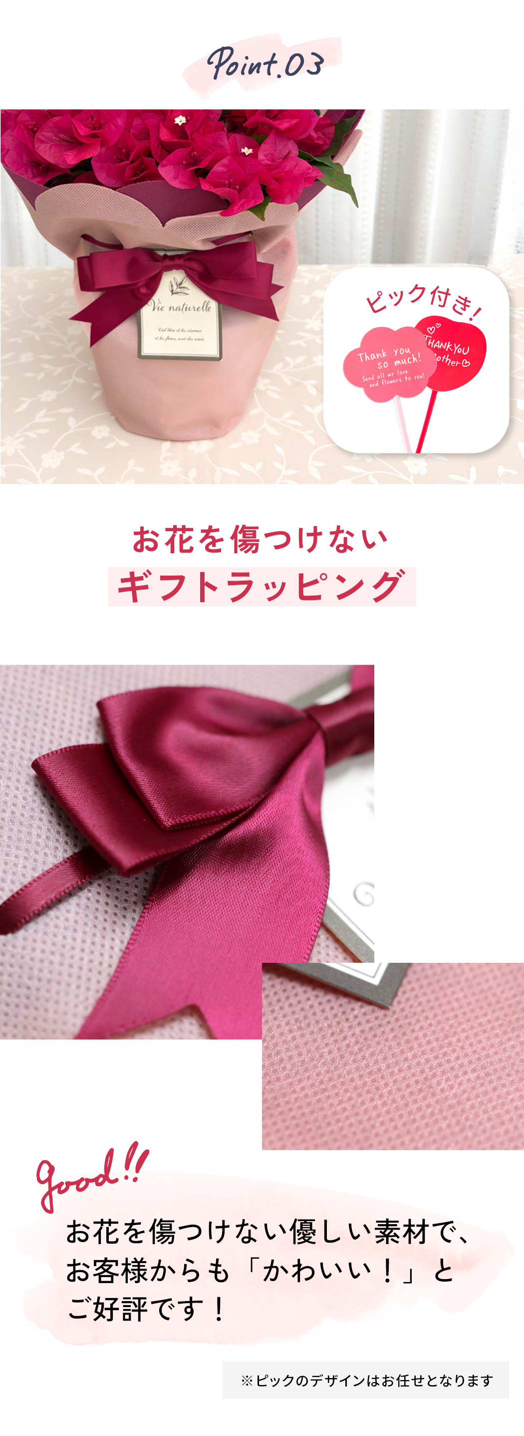 ◎生花の為、お届け先様がご不在または住所不明が続く場合は、注文者様に転送させていただきます。