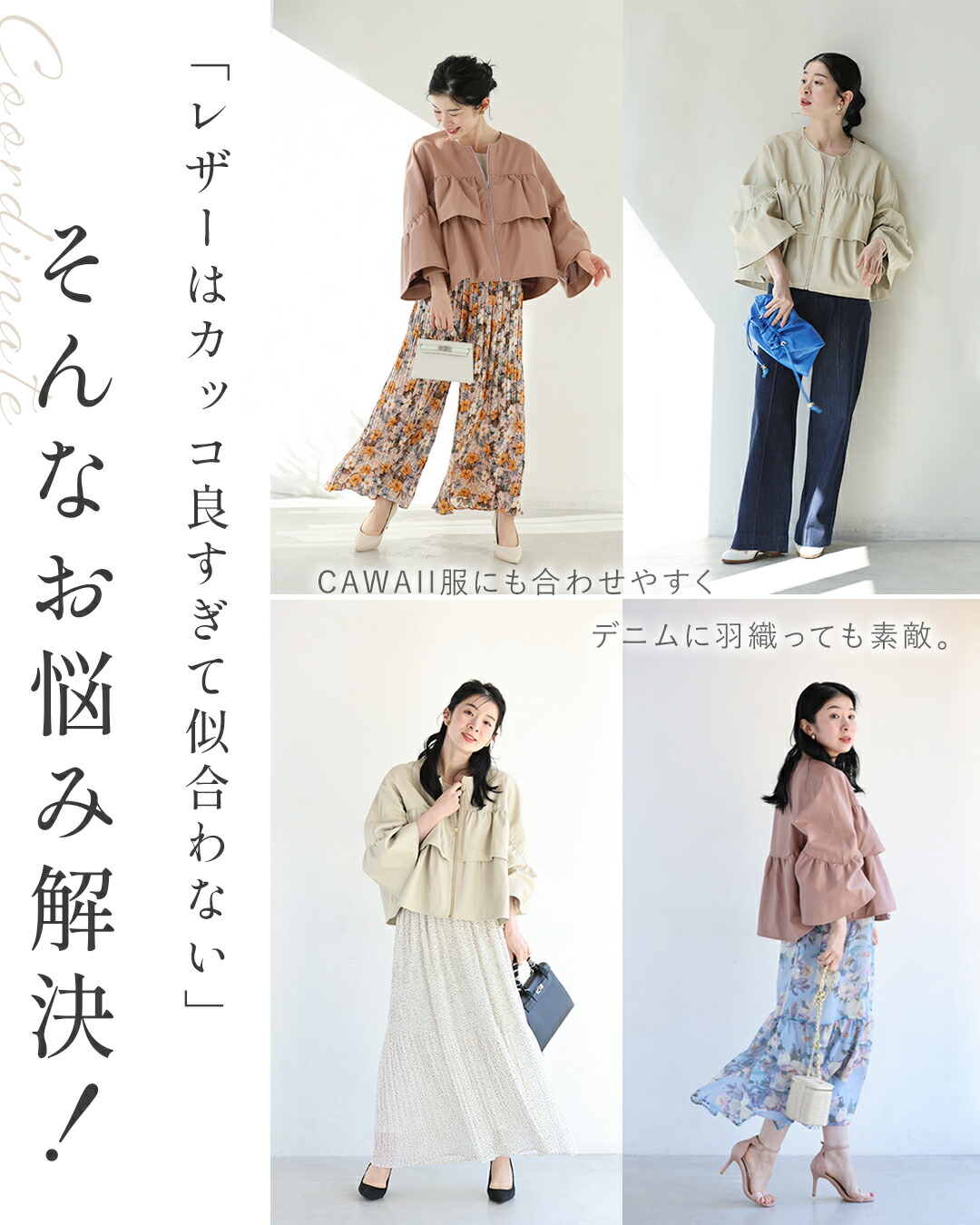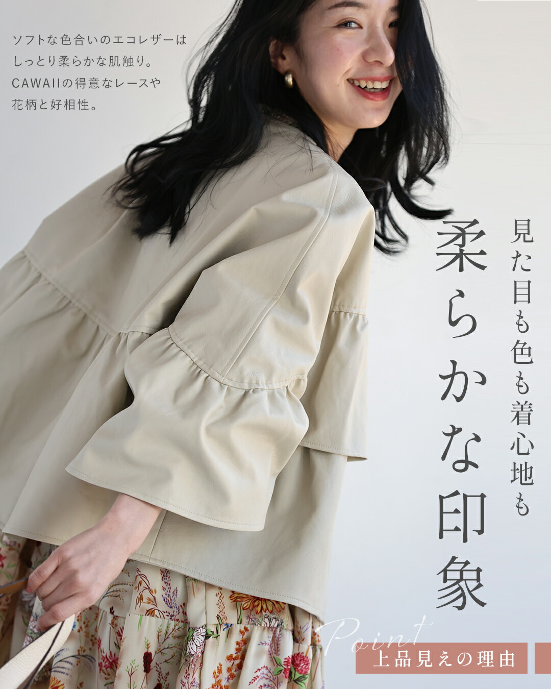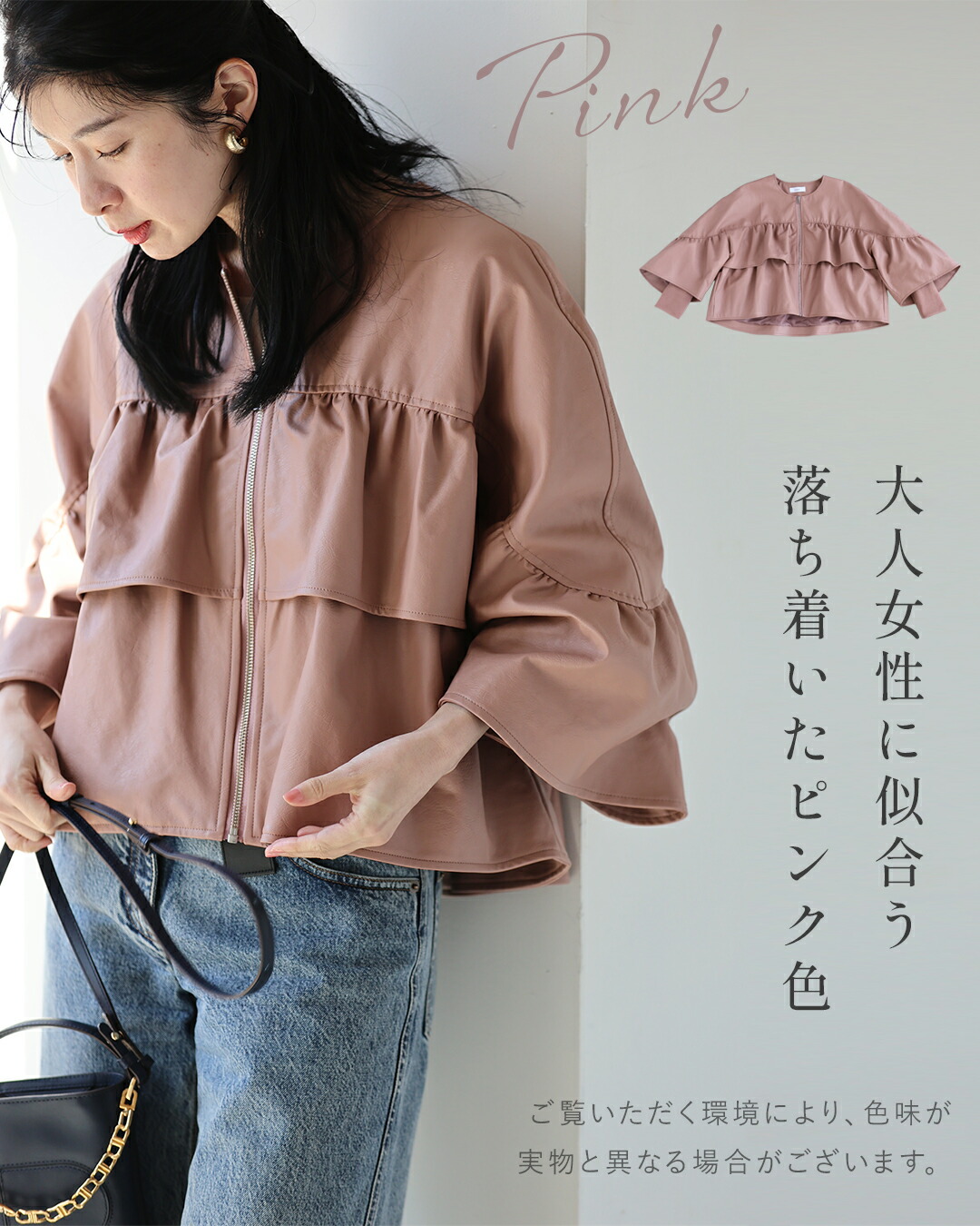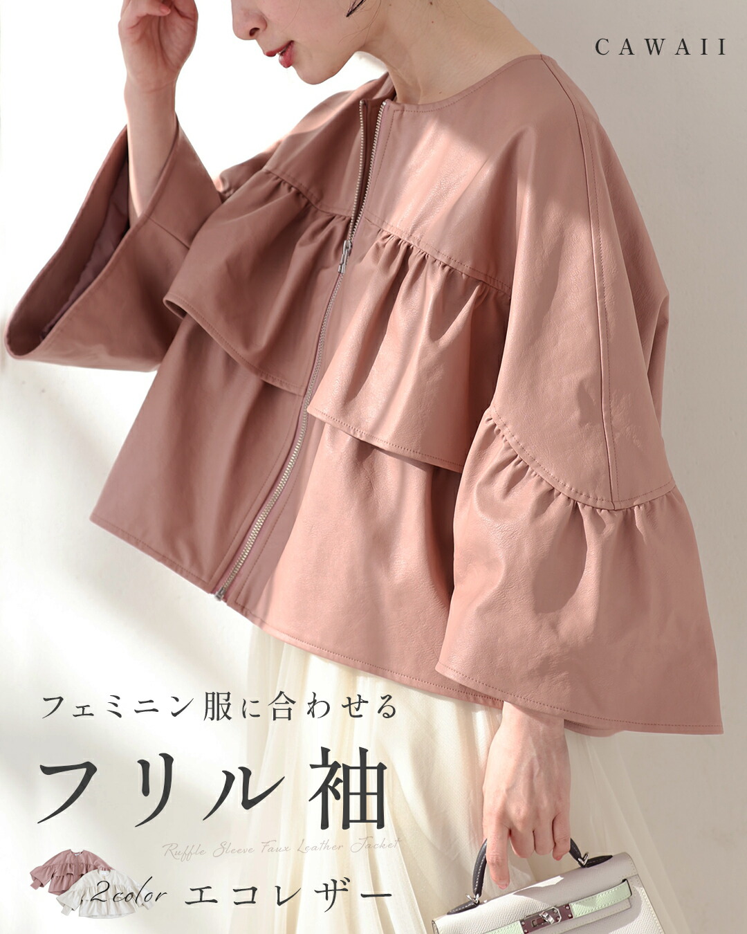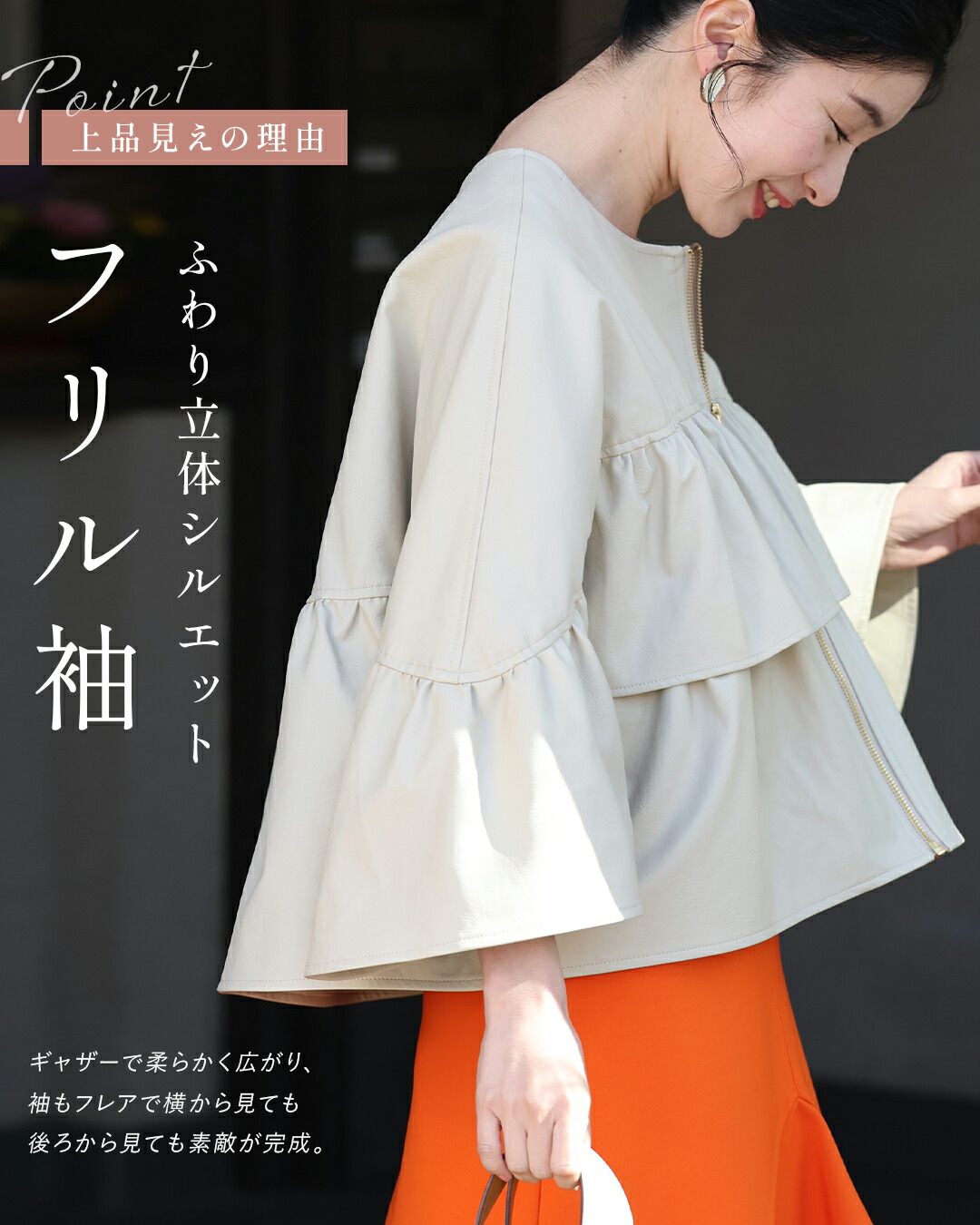 SからL対応 フェミニン服に合わせる フリル袖 エコレザー