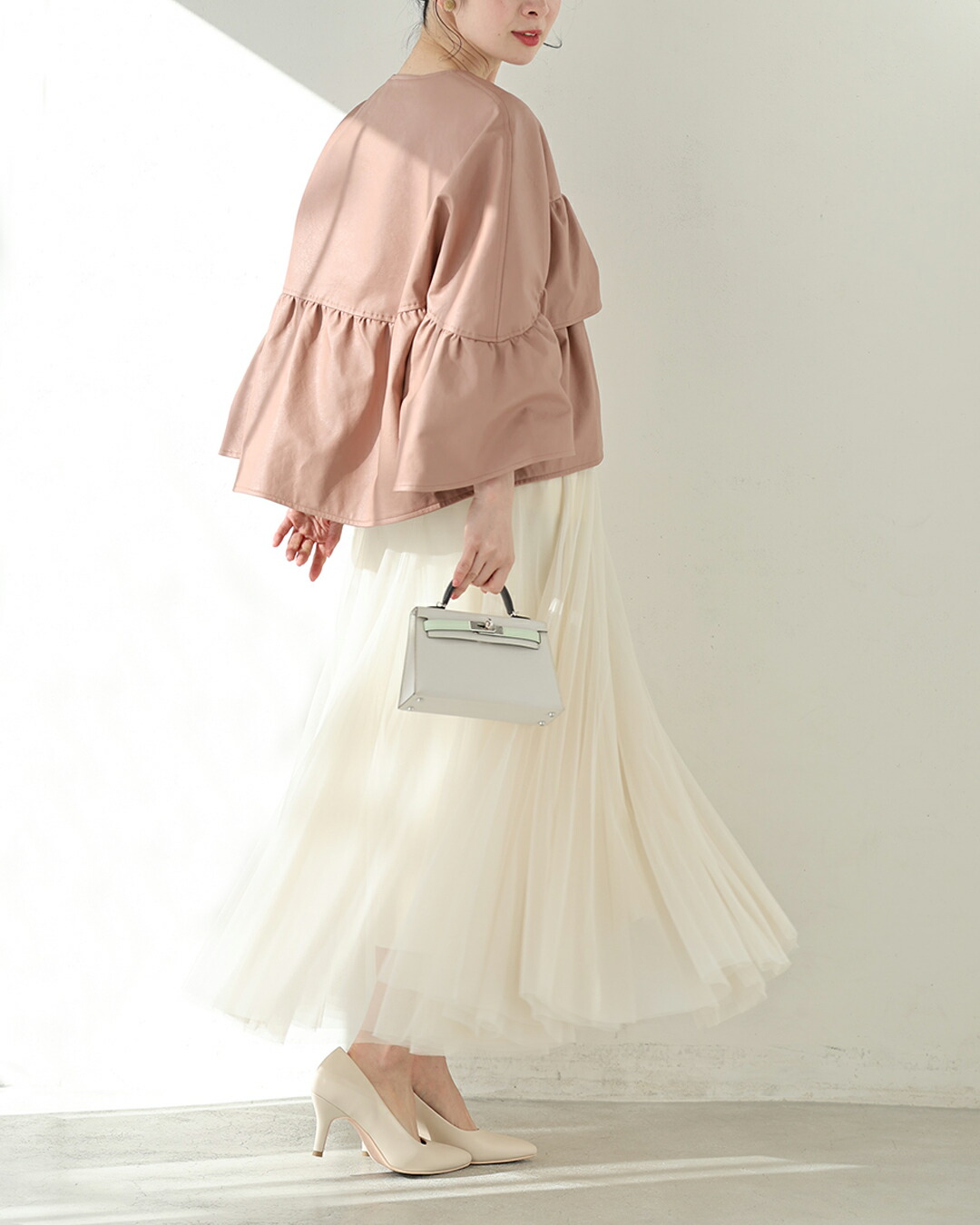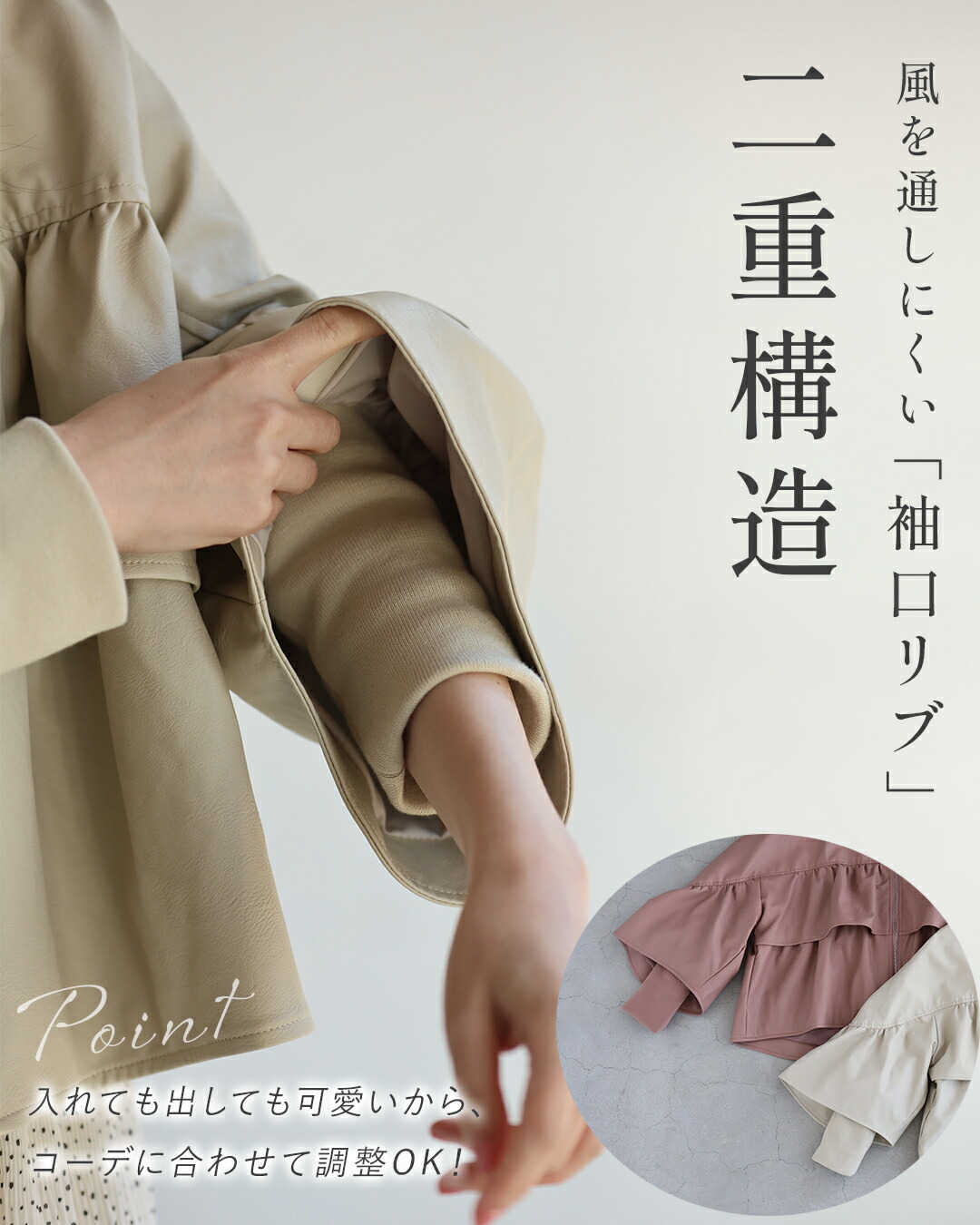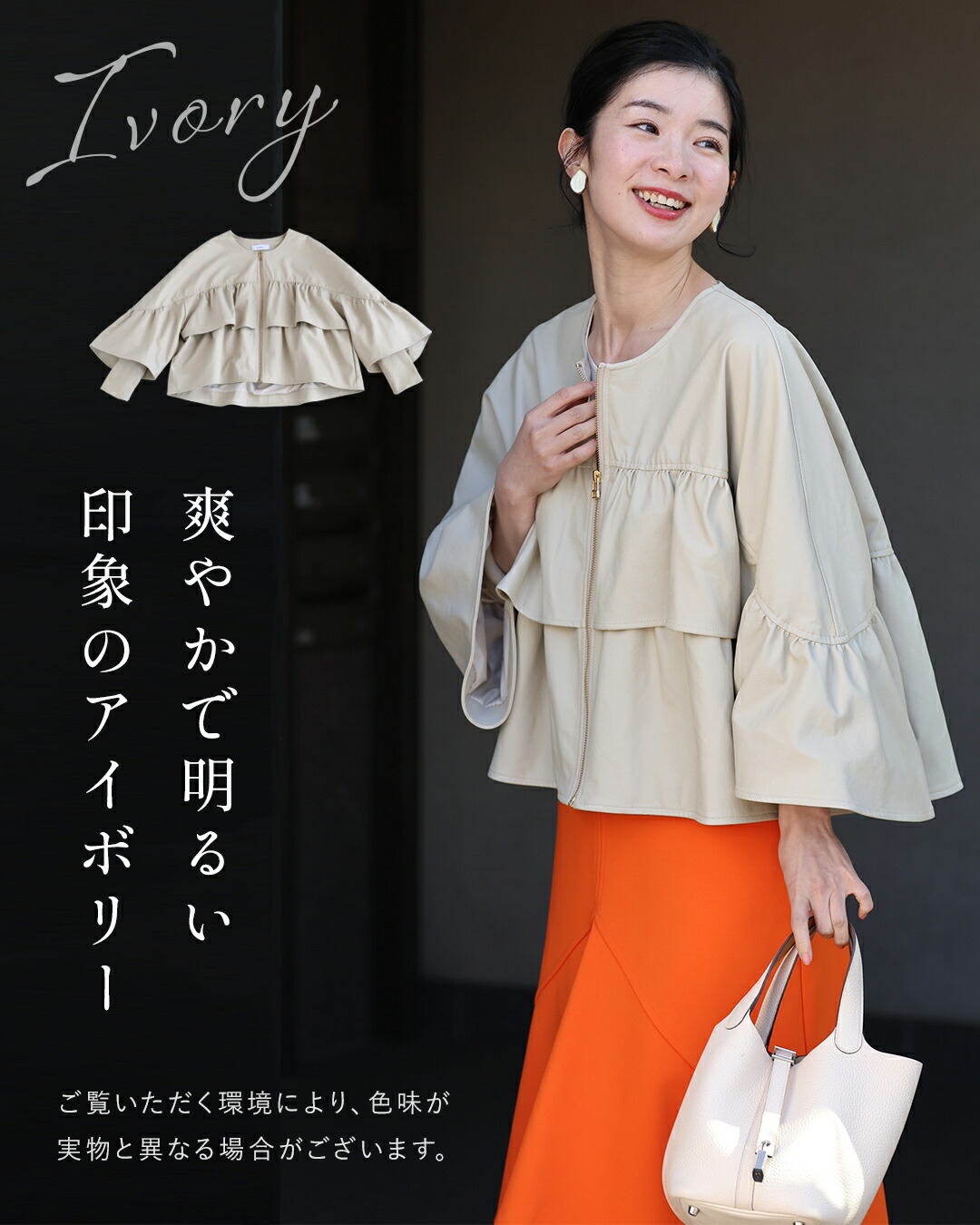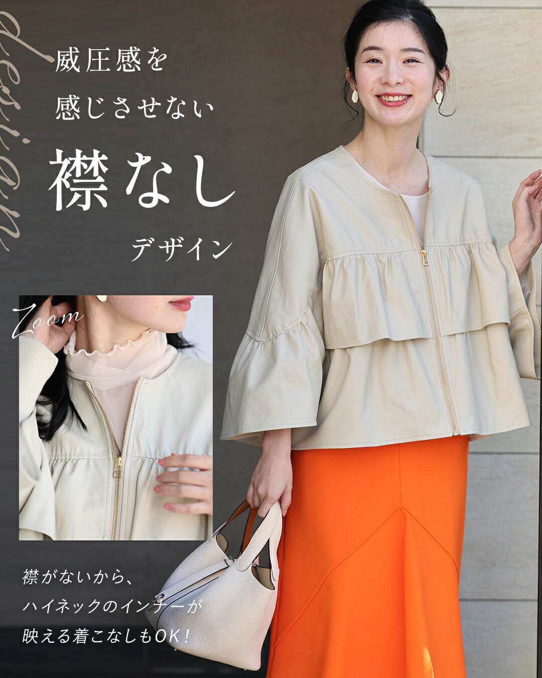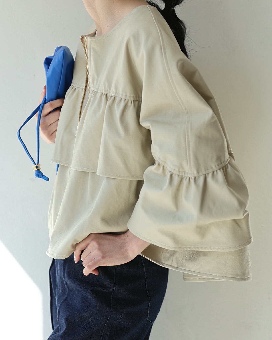 SからL対応 フェミニン服に合わせる フリル袖 エコレザー