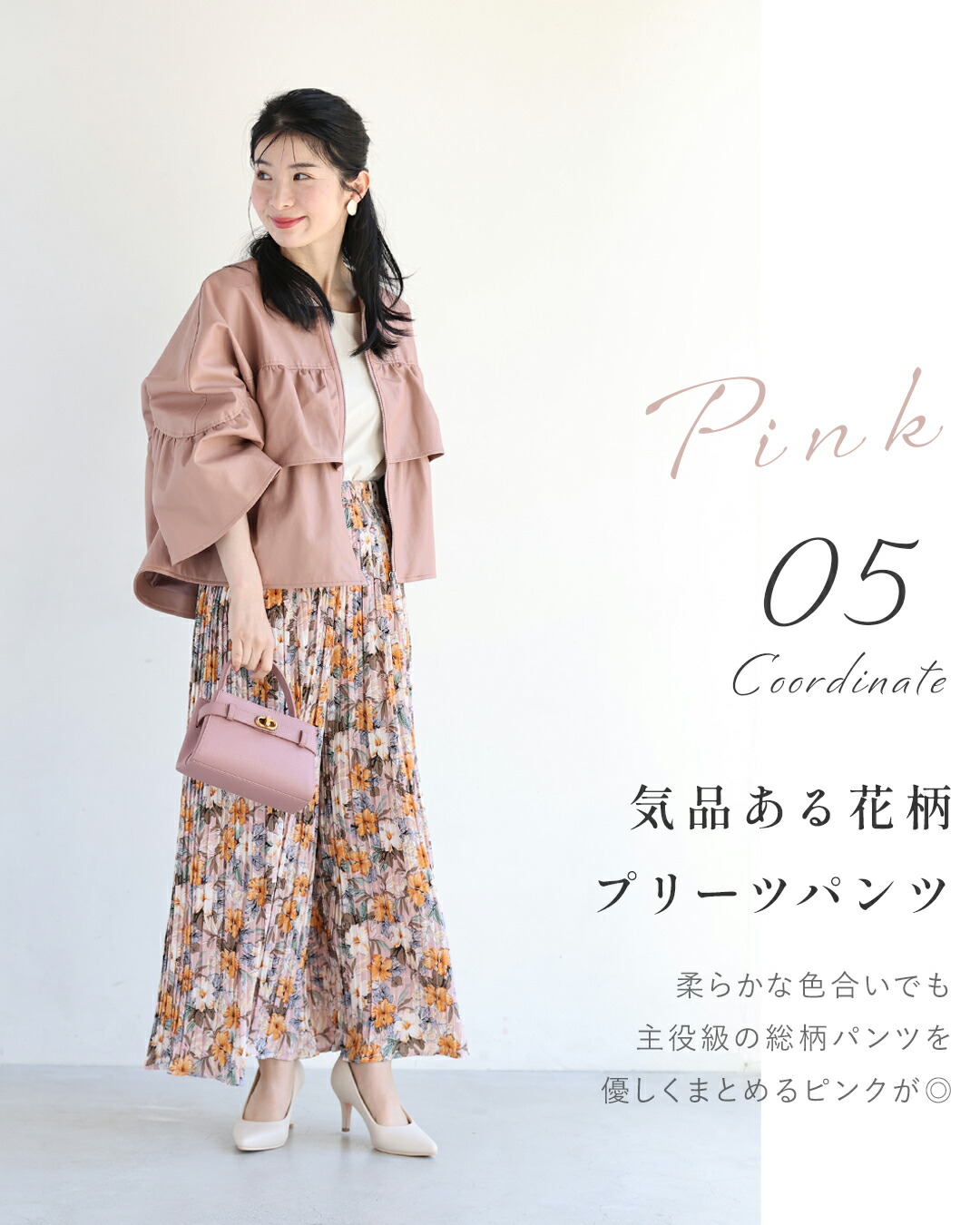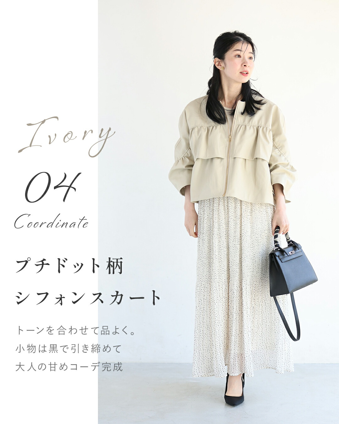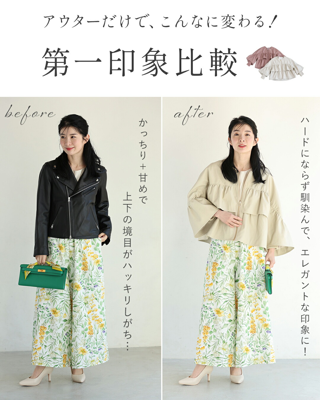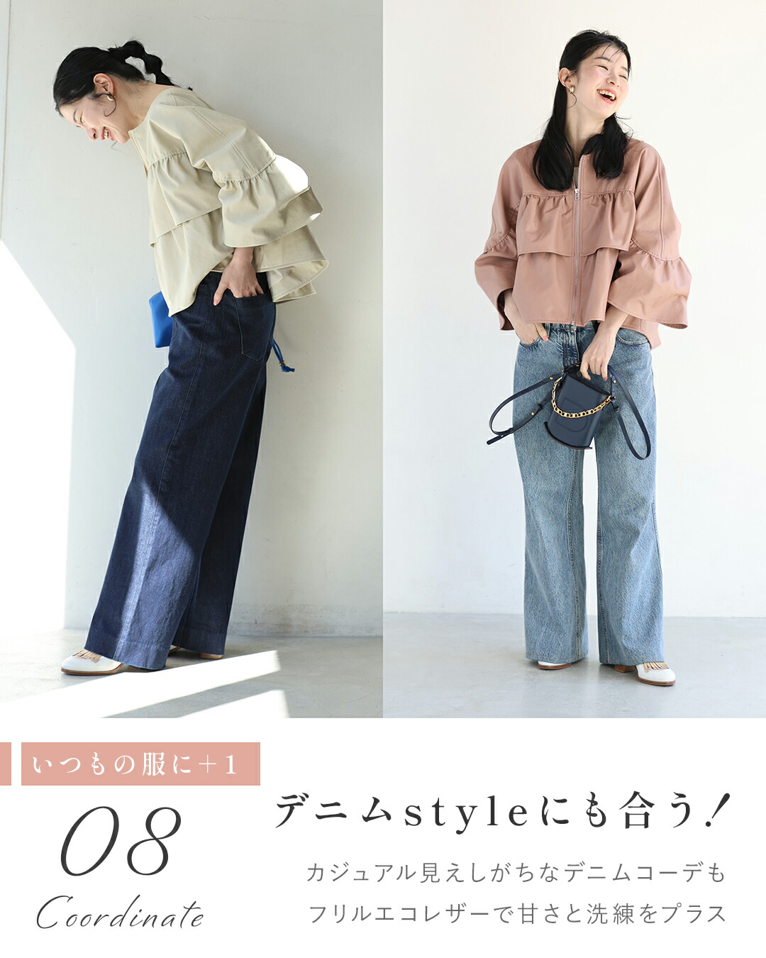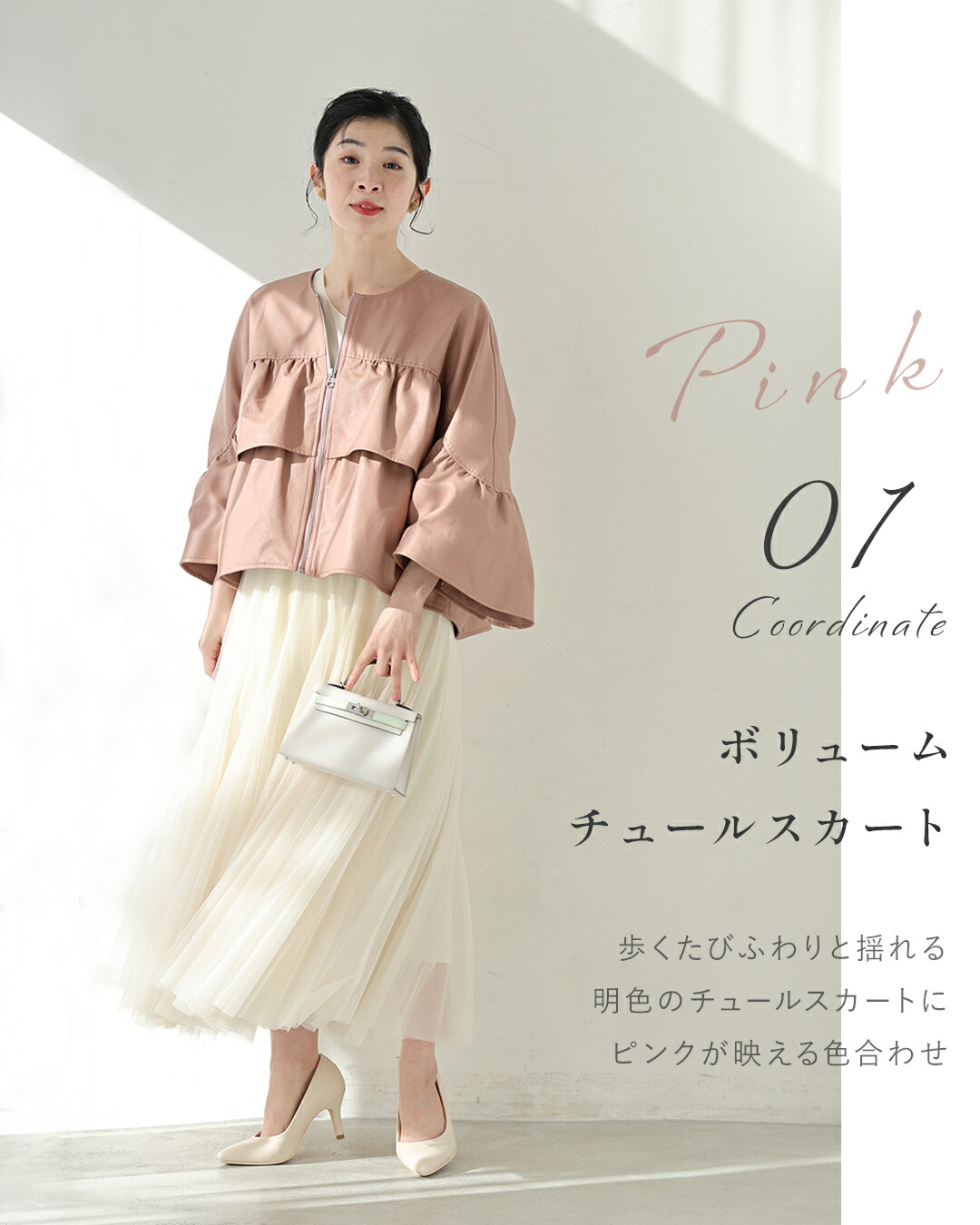 SからL対応 フェミニン服に合わせる フリル袖 エコレザー