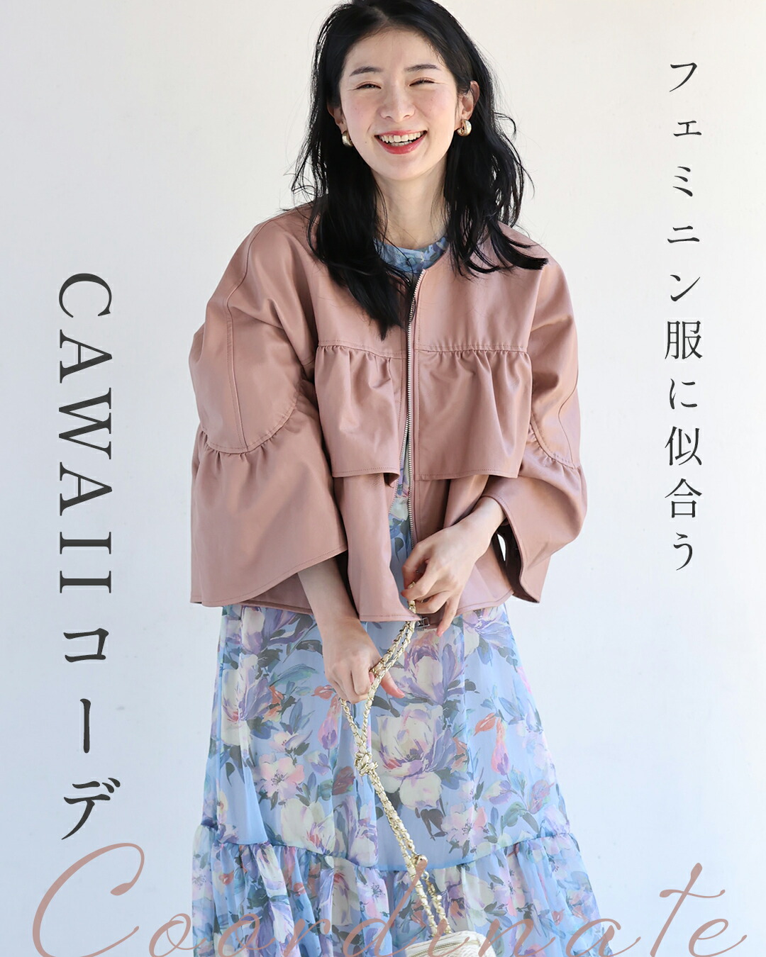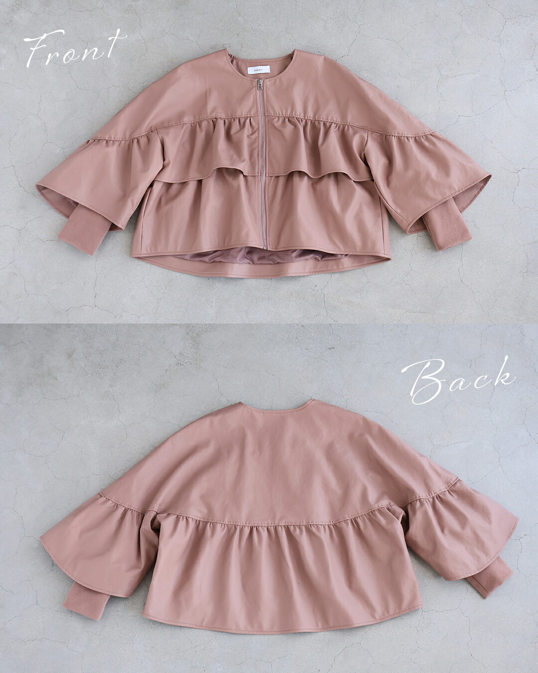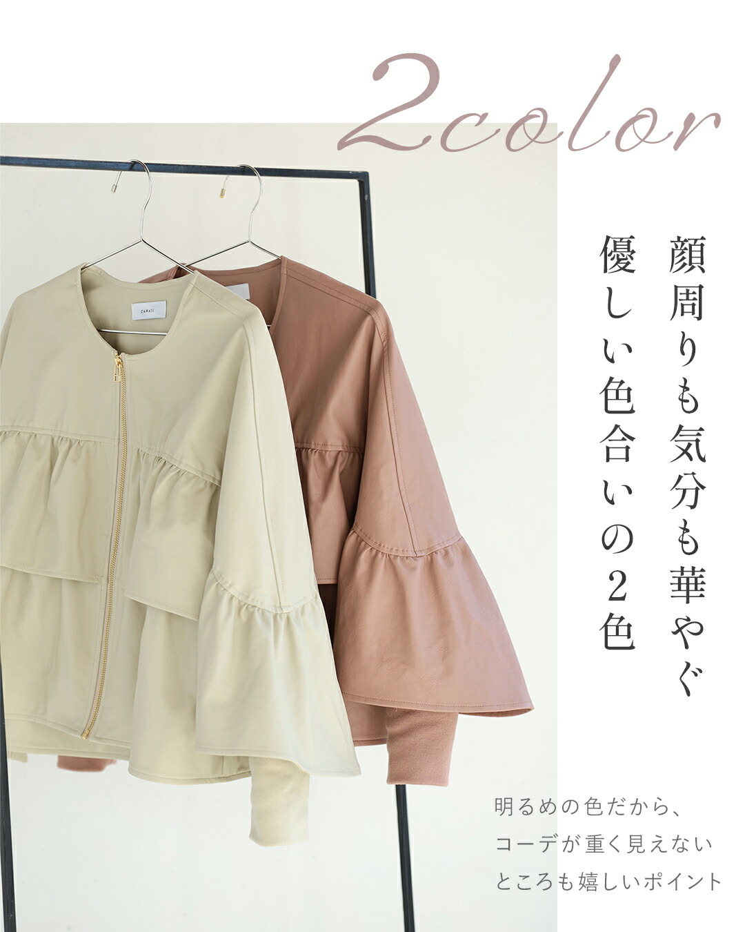 fbk00065od 新作 新着 再入荷 CAWAII FRENCHPAVE フレンチパヴェ エレガント ベーシック カジュアル 可愛い かわいい カワイイ おしゃれ オシャレ お洒落 個性 個性的 定番 ベーシック 大人かわいい 大人可愛い 上品 女性らしい デザイン スタンダード ナチュラル きれいめ キレイめ シンプル フェミニン レディース レディースファッション 大人 ママ ミセス 30代 40代 50代 60代 フェミニン服に合わせる フリル袖 エコレザー ジャケット 羽織り フロントファスナー ジップアップ ノーカラー S M L ワンサイズ フリー 小さめ 小さい 低身長 痩せ ほっそり 小柄 細身 標準サイズ 大きめシルエット 大きい ビッグシルエット ゆったり F サイズ自由 春服 春物 秋服 秋物 ショート丈 短丈 アイボリー ピンク 無地 ティアード 日常使い ヘビロテ 毎日 デイリー おでかけ 仕事 会社 通勤 防寒対策 ふんわり 体型カバー