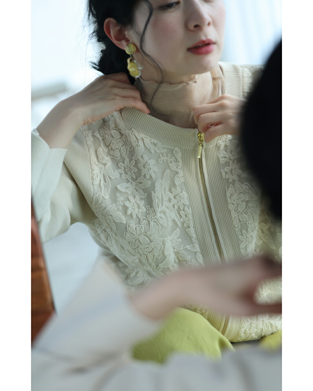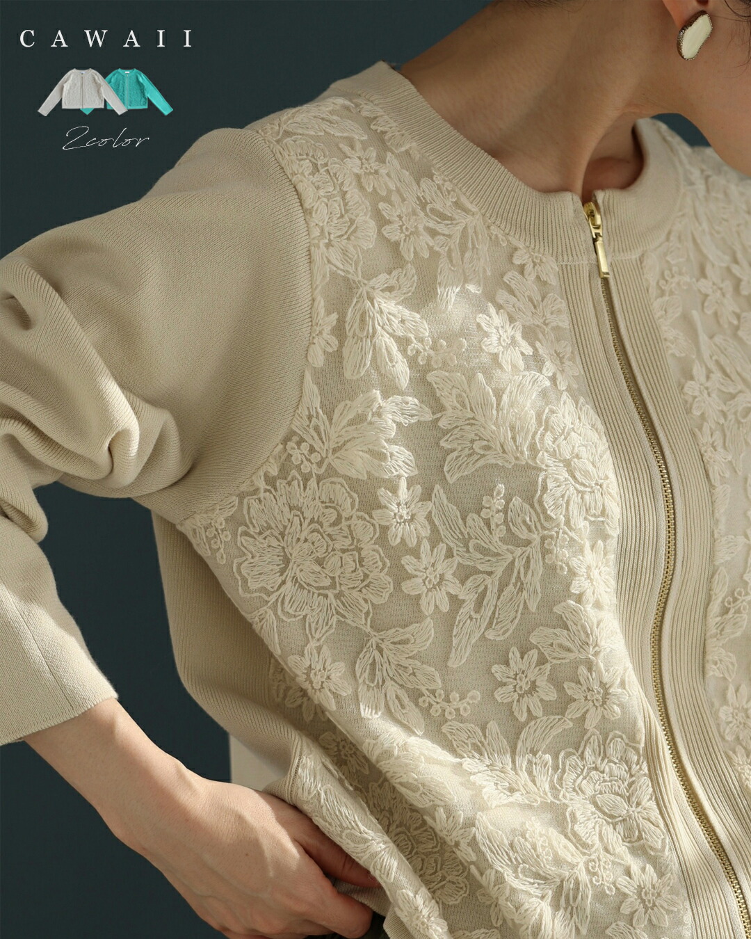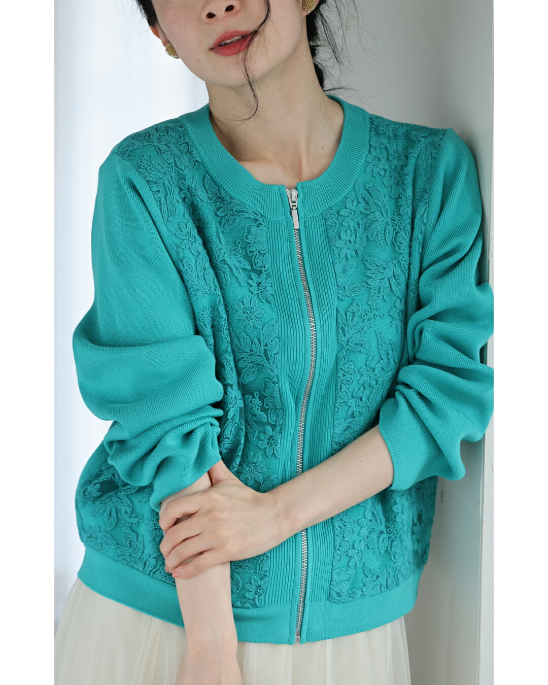 fbk00066od 新作 新着 再入荷 CAWAII FRENCHPAVE フレンチパヴェ エレガント ベーシック カジュアル 可愛い かわいい カワイイ おしゃれ オシャレ お洒落 個性 個性的 定番 ベーシック 大人かわいい 大人可愛い 上品 女性らしい デザイン スタンダード ナチュラル きれいめ キレイめ シンプル フェミニン レディース レディースファッション 大人 ママ ミセス 30代 40代 50代 60代 オーガンジーに咲く 花刺繍 リブニット ブルゾン 羽織り 軽アウター 長袖 S M L ワンサイズ フリー 小さめ 小さい 低身長 痩せ ほっそり 小柄 細身 標準サイズ 大きめシルエット 大きい ビッグシルエット ゆったり F サイズ自由 春夏コーデ 春服 春物 夏服 夏物 軽やか 軽量 大人女子 短丈 日常着 デイリー おでかけ デート 買い物 パーカー フロントジップ 手軽さ 重宝 伸縮