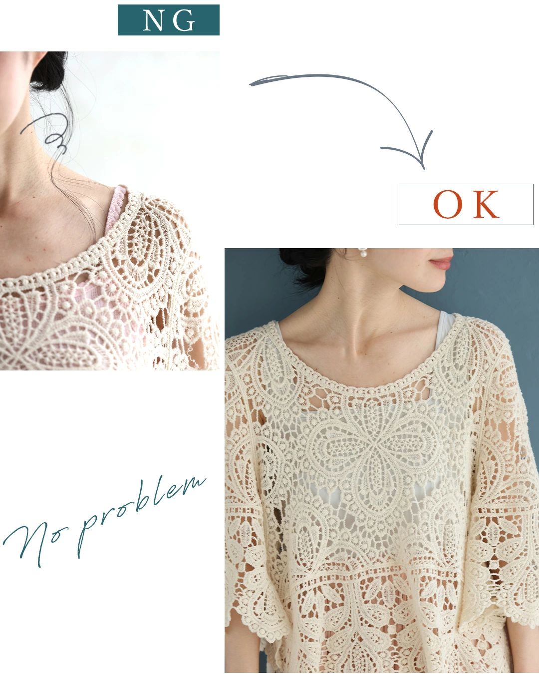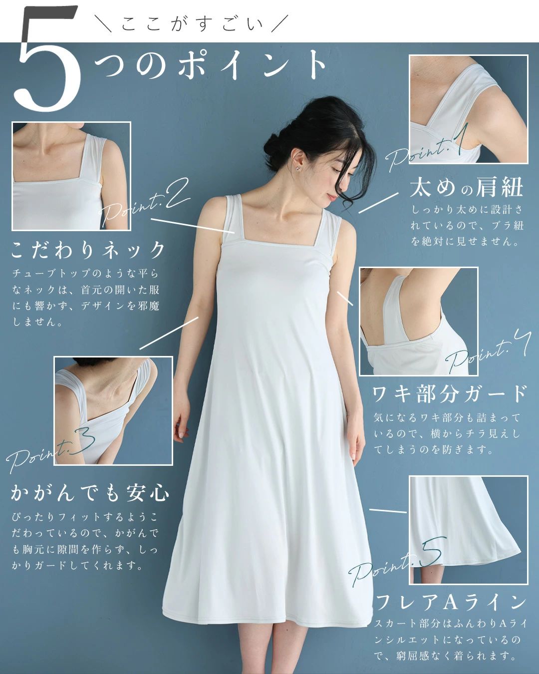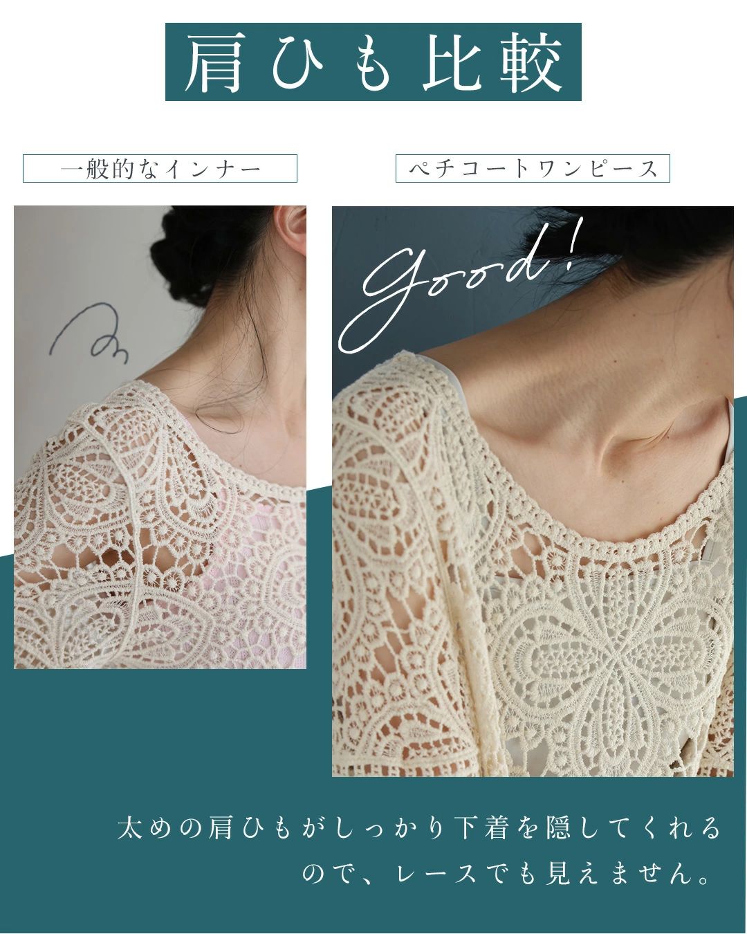 cawaii ダークグレー FRENCHPAVE オリジナル ブラ紐隠しのワンピースペチコートレース服用ブラ紐隠しインナー