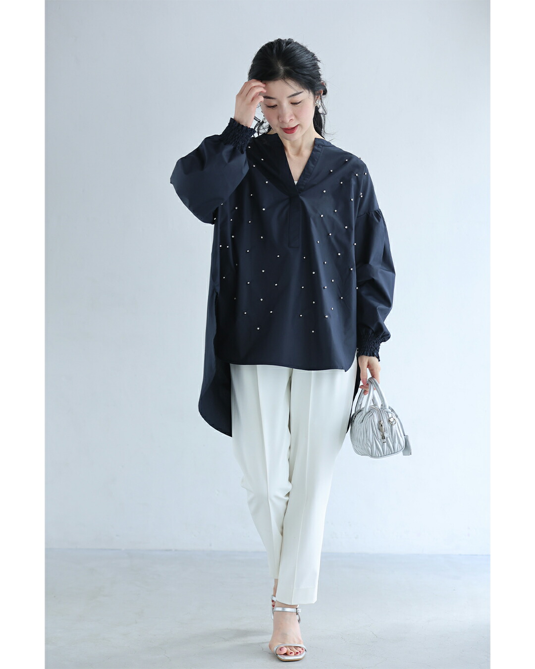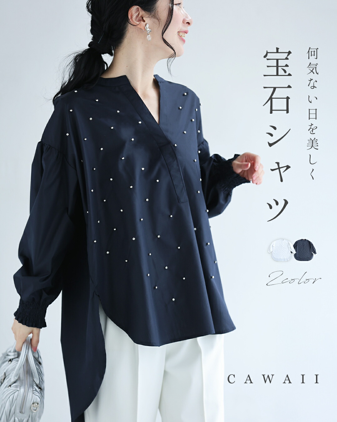 爆買 fys00028 新作 新着 再入荷 CAWAII FRENCHPAVE フレンチパヴェ エレガント ベーシック カジュアル 可愛い かわいい カワイイ おしゃれ オシャレ お洒落 個性 個性的 定番 ベーシック 大人かわいい 大人可愛い 上品 女性らしい デザイン スタンダード ナチュラル きれいめ キレイめ シンプル フェミニン レディース レディースファッション 大人 ママ ミセス 30代 40代 50代 60代 何気ない日を美しく 宝石シャツ トップス S M L XL ワンサイズ フリー 小さめ 小さい 低身長 痩せ ほっそり 小柄 細身 標準サイズ 大きめシルエット 大きい ビッグシルエット ゆったり F サイズ自由 薄手 涼感性 涼しい ずずしい 春 夏 春服 春物 夏服 夏物 軽やか 軽量 体型カバー お尻隠し 清楚感 ホワイト 白 ネイビー 紺 日常使い デイリー おでかけ 仕事 会社 通勤 大人女子 軽やか 軽量 ビジュー Vネック