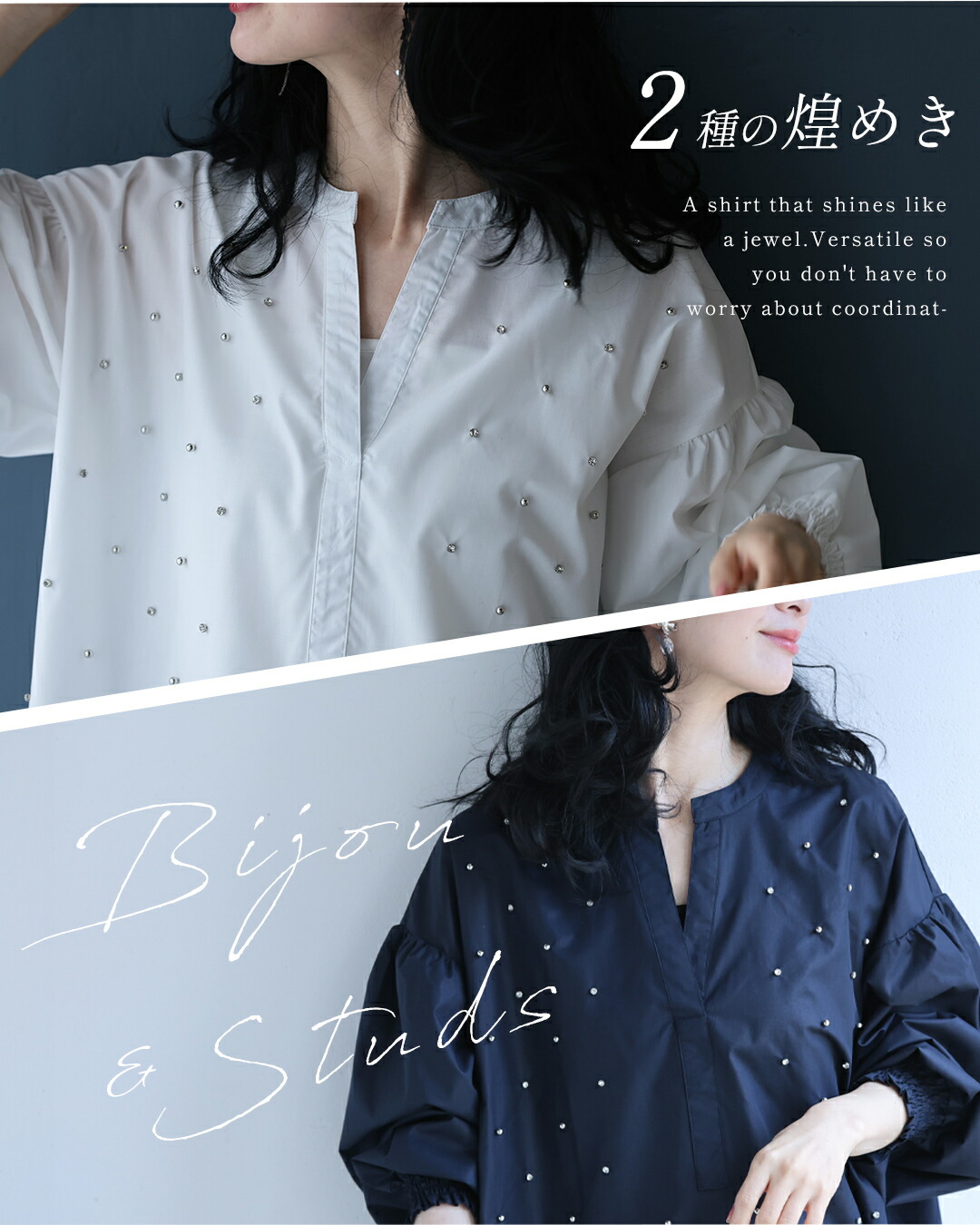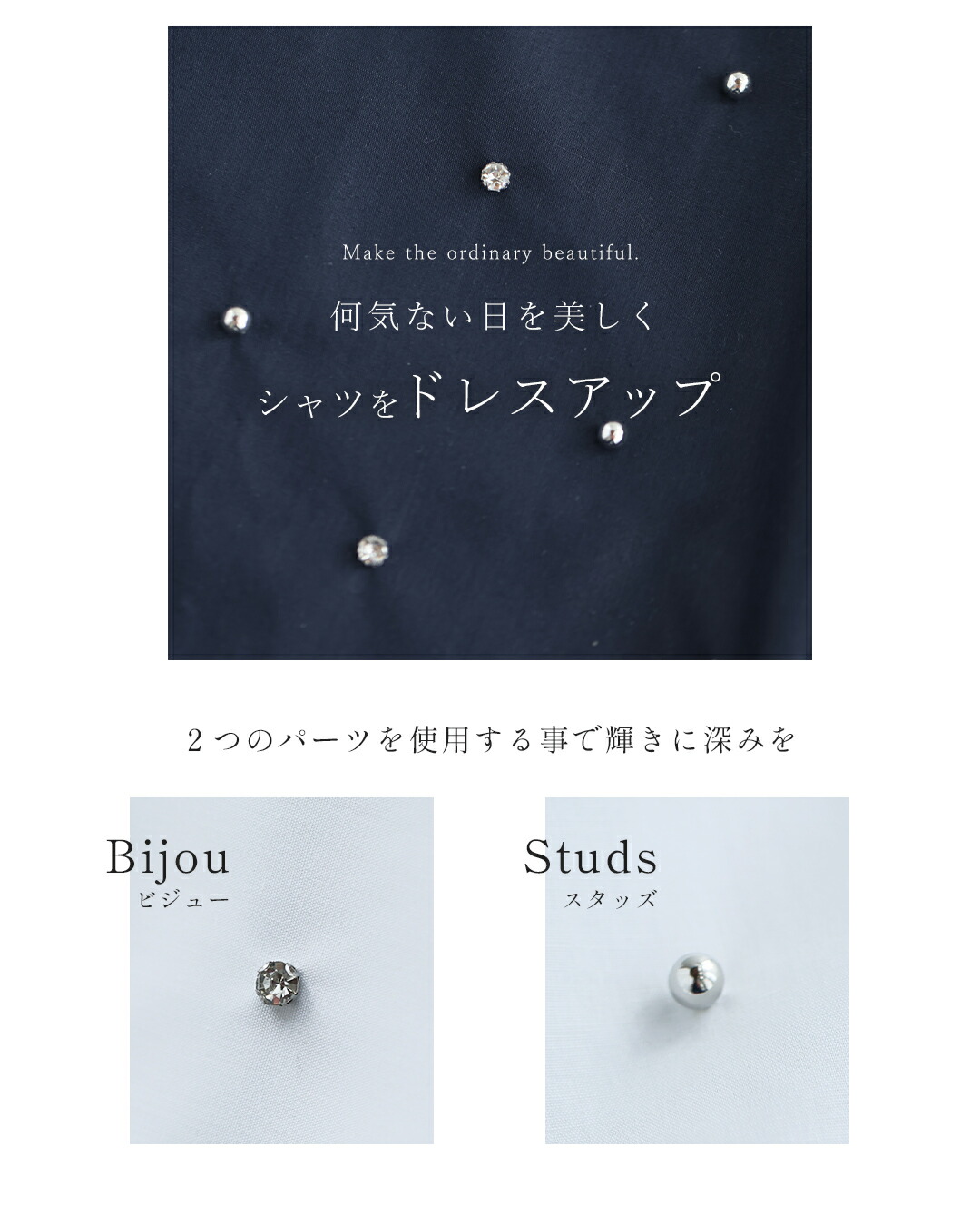 Sから2L対応 何気ない日を美しく 宝石シャツ