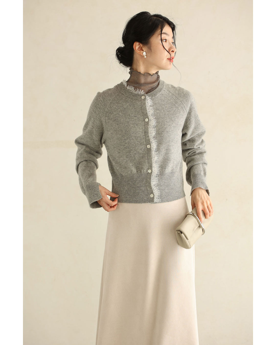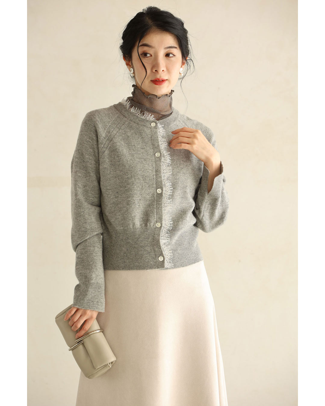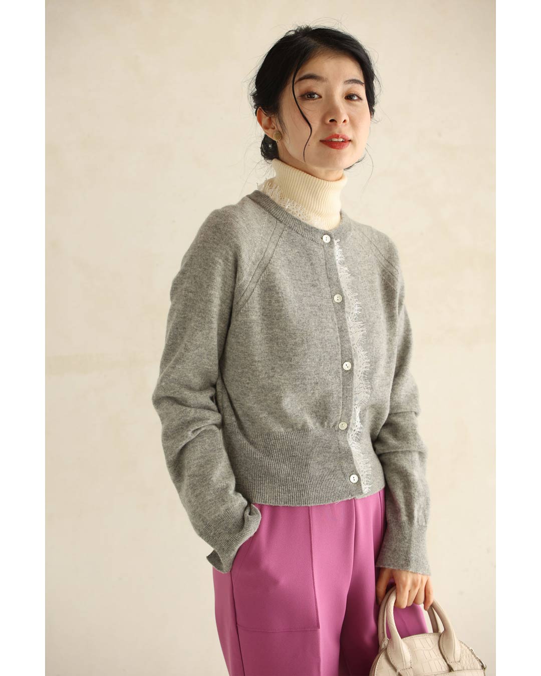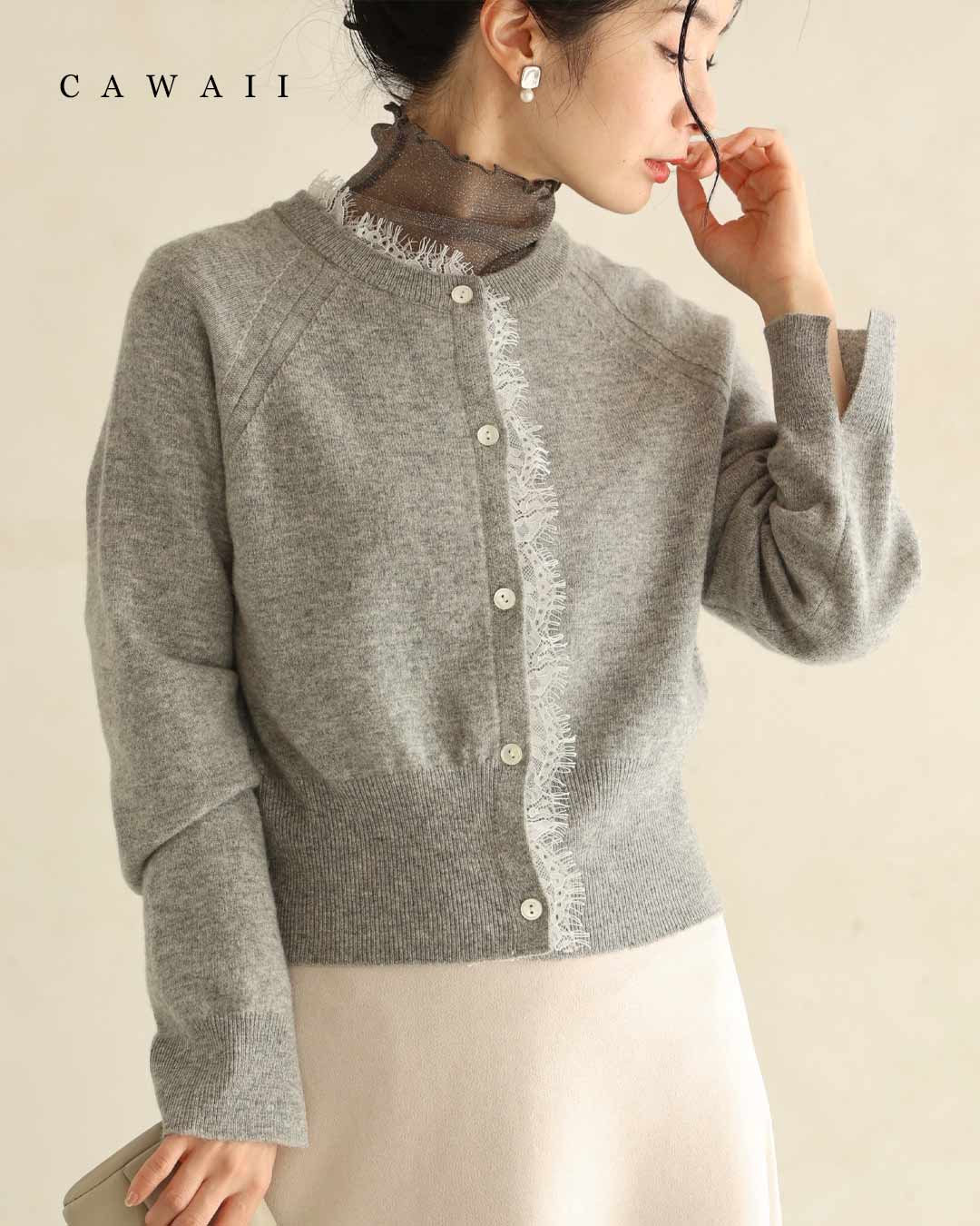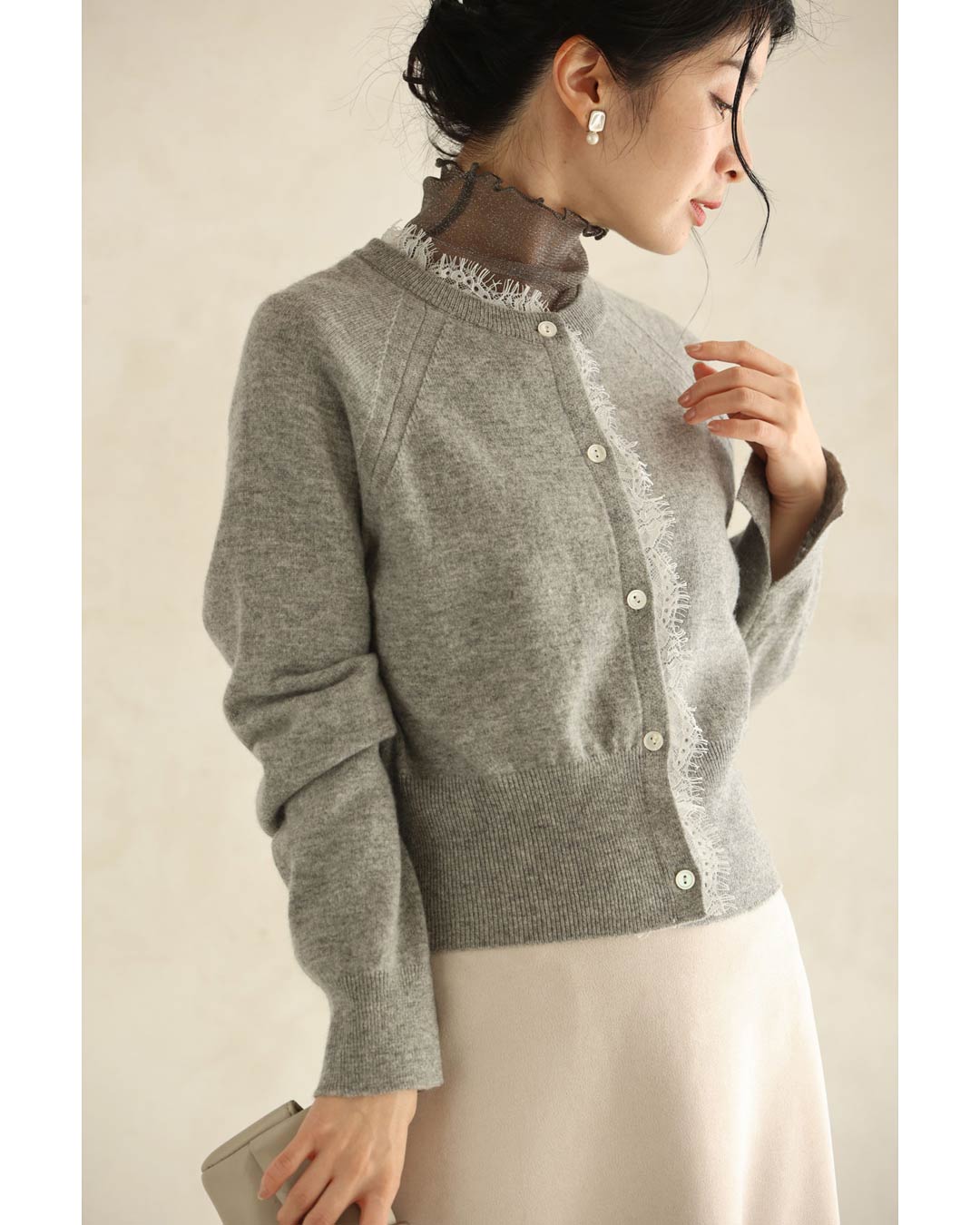 w60966ps 新作 新着 再入荷 CAWAII FRENCHPAVE フレンチパヴェ エレガント ベーシック カジュアル 可愛い かわいい カワイイ おしゃれ オシャレ お洒落 個性 個性的 定番 ベーシック 大人かわいい 大人可愛い 上品 女性らしい デザイン スタンダード ナチュラル きれいめ キレイめ シンプル フェミニン レディース レディースファッション 大人 ママ ミセス 30代 40代 50代 60代 首元から流れる アシンメトリー レース カーディガン 羽織り ニット素材 袖スリット 短丈 温かみ スッキリ丈 ウール 脚長効果 スタイルアップ Sサイズ Mサイズ Lサイズ フリーサイズ フリー 小さめ 小さめサイズ小さい 小さいサイズ 低身長 痩せ ほっそり 小柄 細身 標準サイズ F サイズ自由 暖かい ぬくい 秋 冬 秋服 秋物 冬服 冬物 伸縮 グレー 灰 灰色 日常着 普段着 日常使い ヘビロテ おでかけ オフィスカジュアル