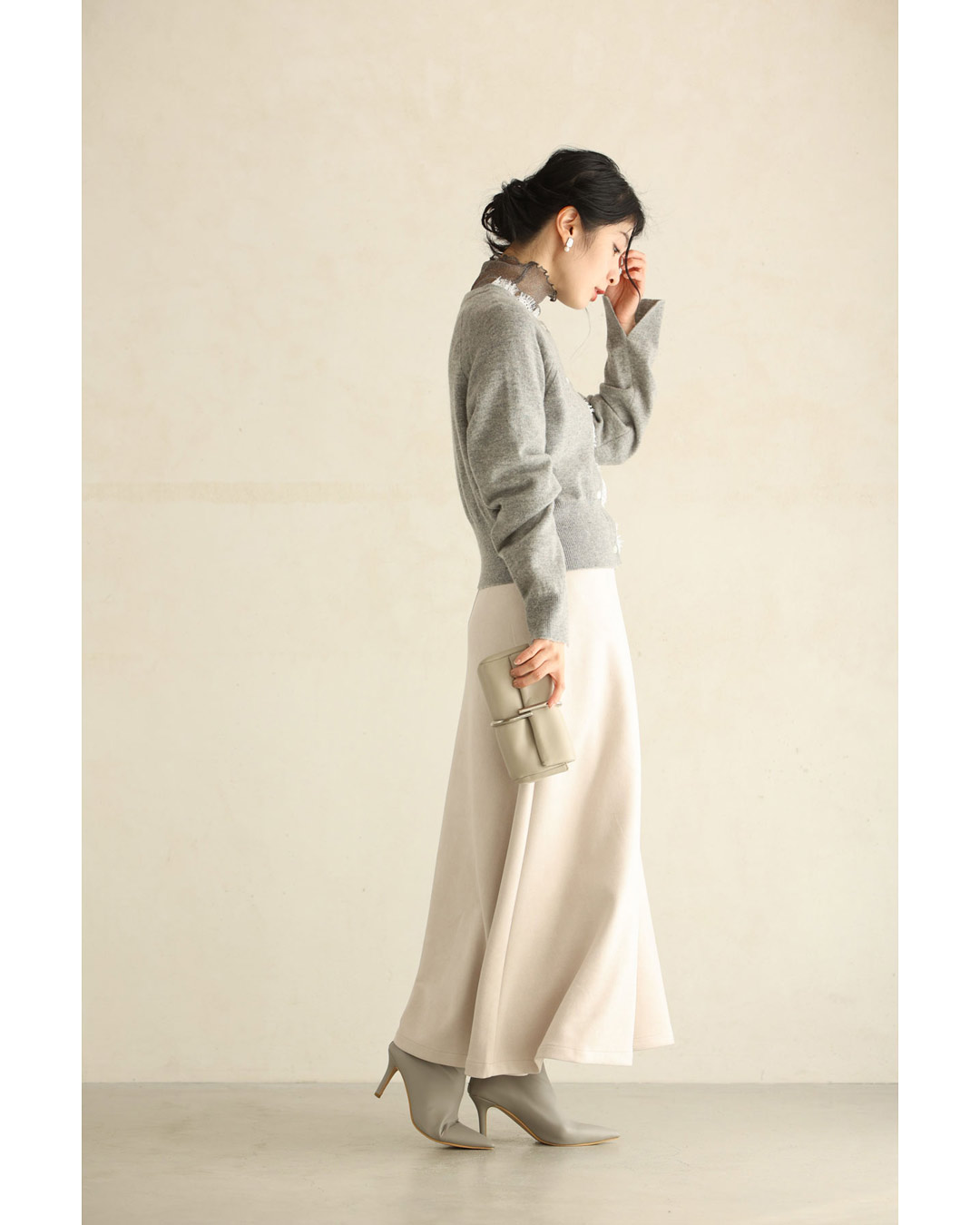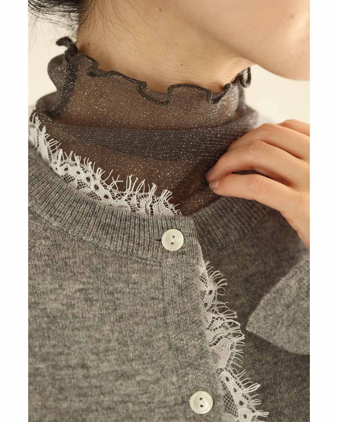 SからL対応 首元から流れるアシンメトリーレースカーディガン