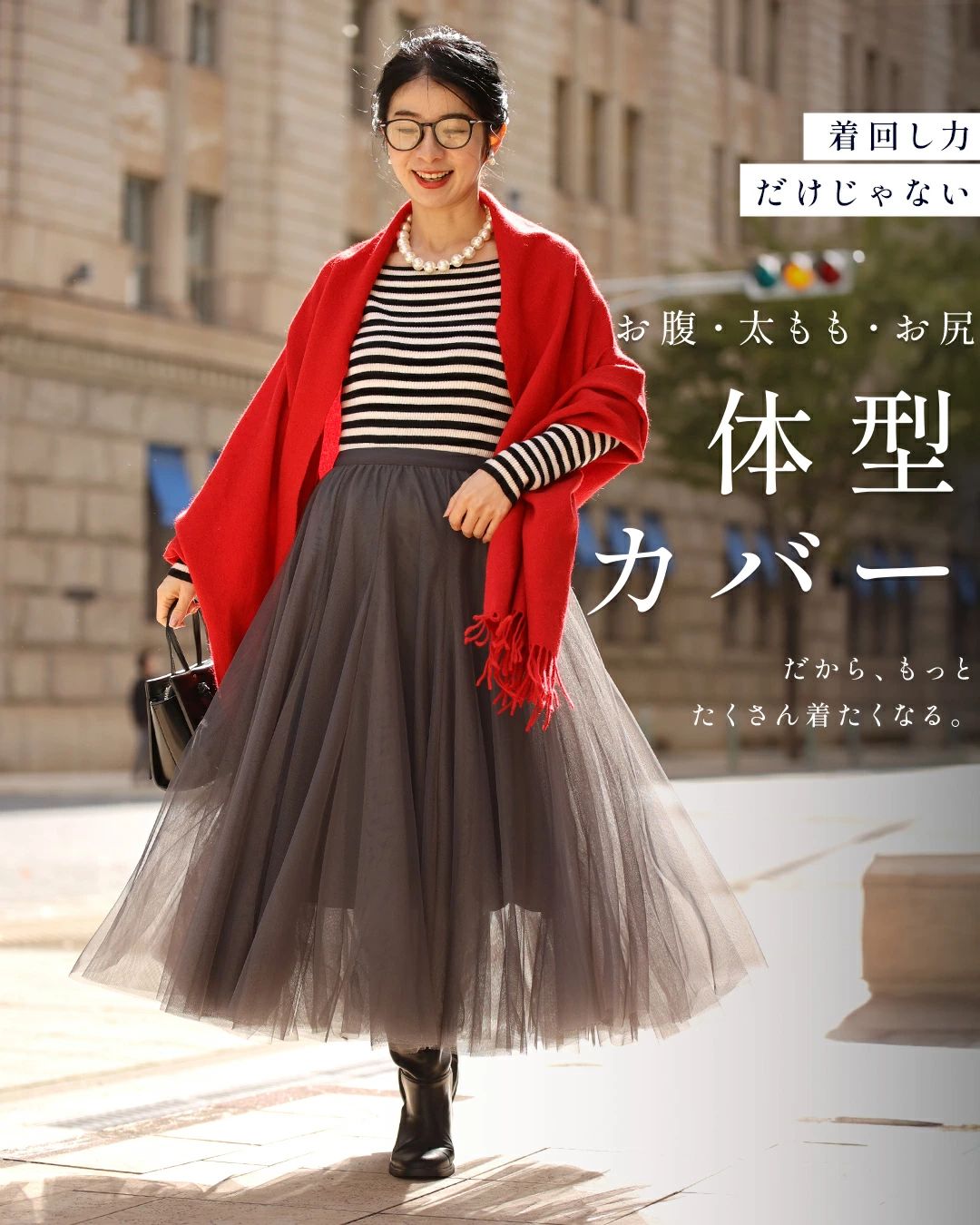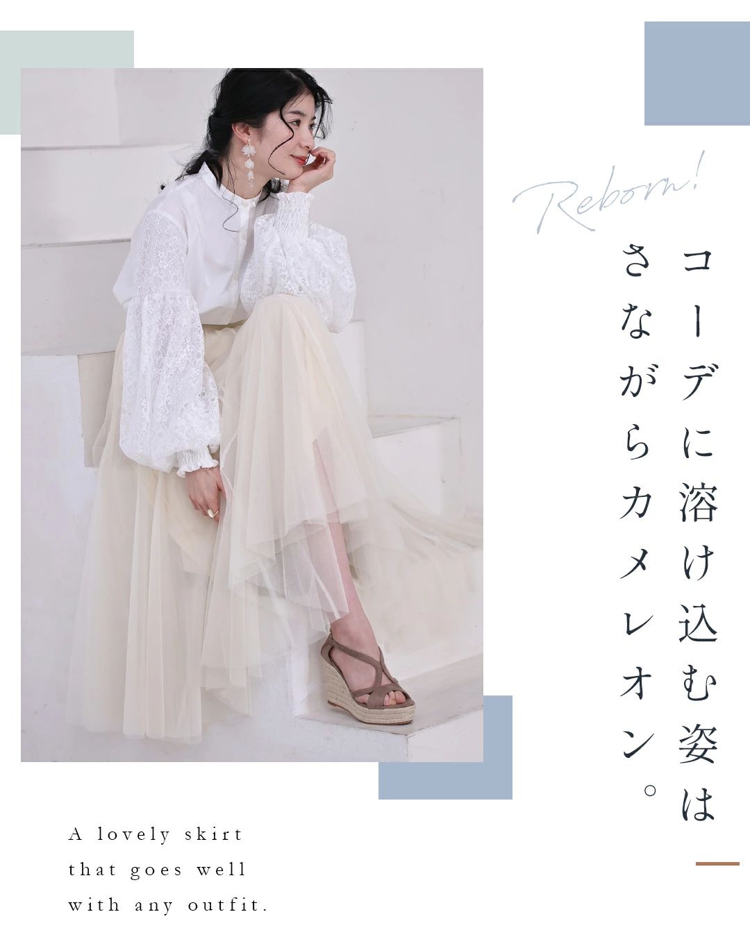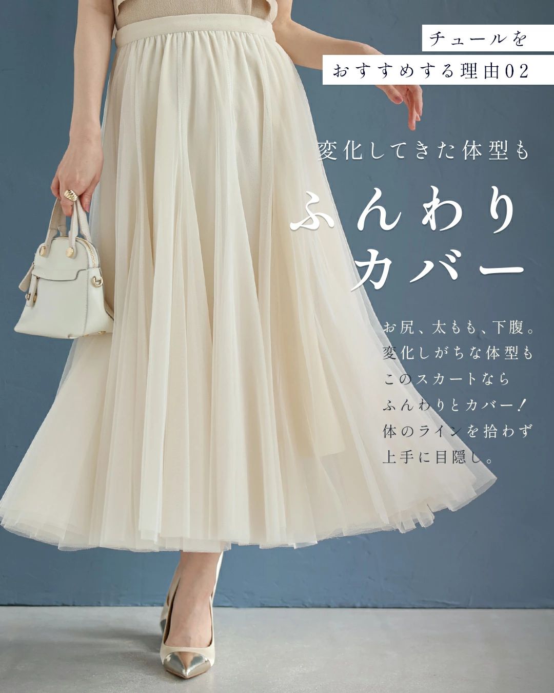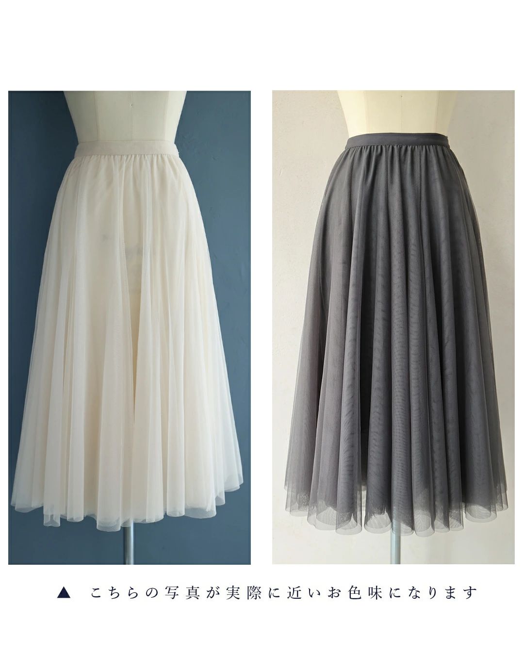 SからM/Lから2L対応 着回しNO.1!カメレオンチュールスカート