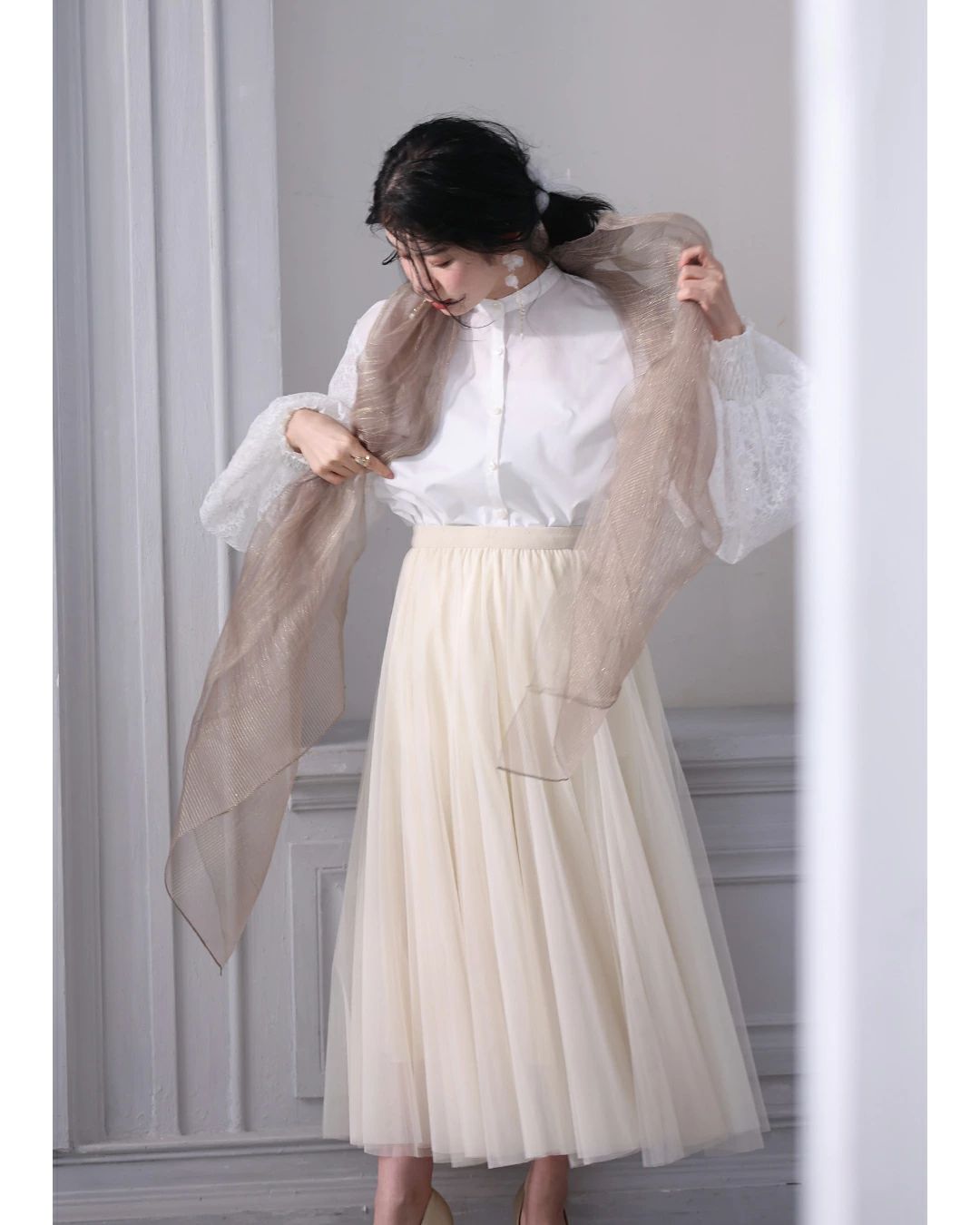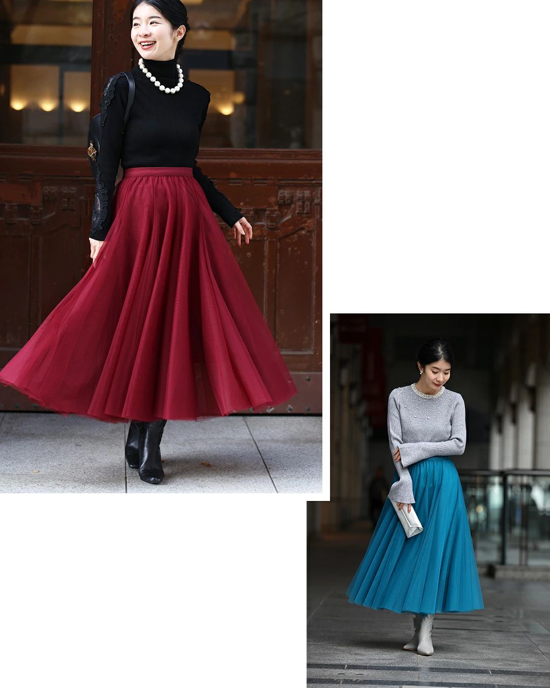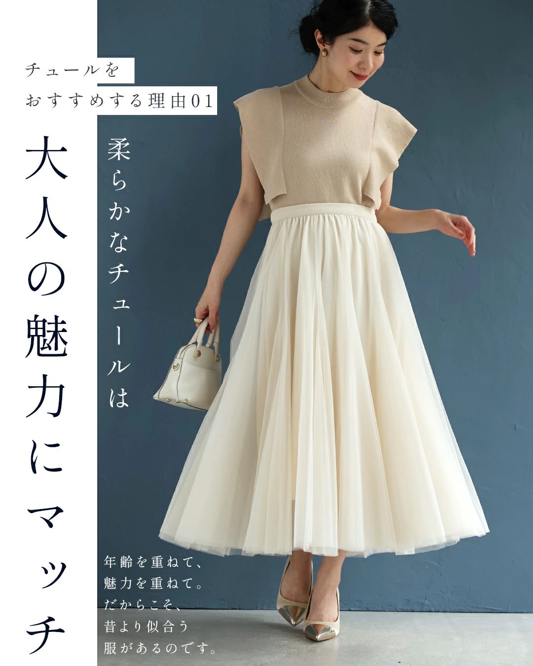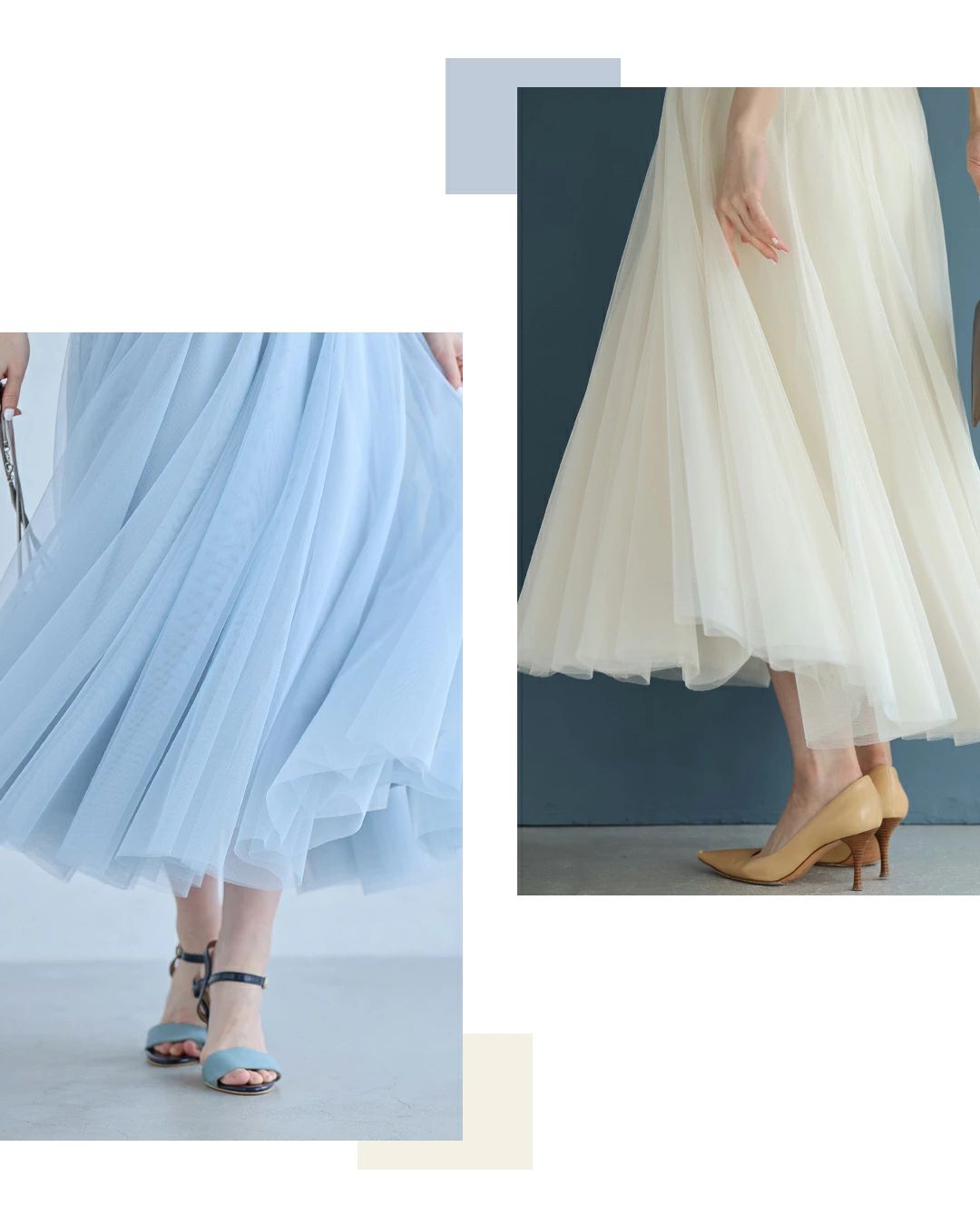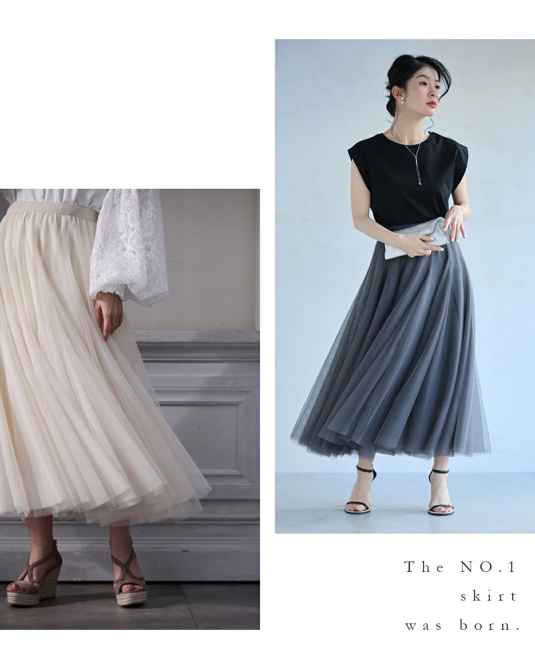 SからM/Lから2L対応 着回しNO.1!カメレオンチュールスカート