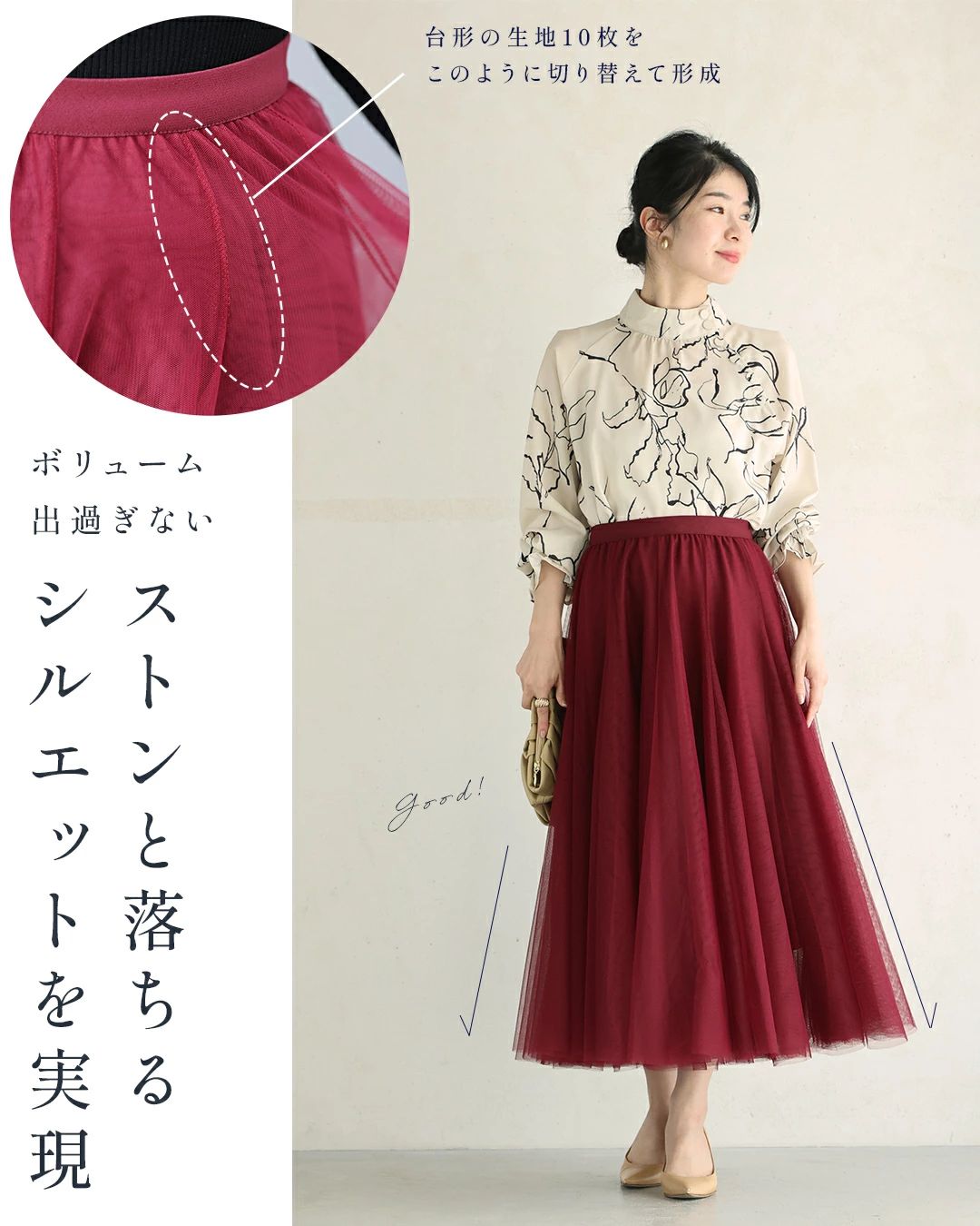 w60980ps 新作 新着 再入荷 CAWAII FRENCHPAVE フレンチパヴェ エレガント ベーシック カジュアル 可愛い かわいい カワイイ おしゃれ オシャレ お洒落 個性 個性的 定番 ベーシック 大人かわいい 大人可愛い 上品 女性らしい デザイン スタンダード ナチュラル きれいめ キレイめ シンプル フェミニン レディース レディースファッション 大人 ママ ミセス 30代 40代 50代 60代 着回しNO.1!カメレオン スカート ウエストゴム ゴム 総ゴム 膝下 ひざ下 フレアスカート フレア チュール生地 ふんわり エアリー Sサイズ Mサイズ Lサイズ 2Lサイズ 3Lサイズ フリーサイズ フリー 小さめ 小さめサイズ小さい 小さいサイズ 低身長 痩せ ほっそり 小柄 細身 標準サイズ 大きめシルエット 大きい 大きめ ビッグシルエット ぽっちゃり F サイズ自由 体型カバー 体型隠し 体型隠れる オールシーズン 春 夏 秋 冬 春夏 秋冬 1年中 秋服 秋物 冬服 冬物 春服 春物 夏 夏服 夏物 ブルーグリーン ブルー グリーン 青色 緑色 ワインレッド レッド 赤色 グレー 灰 灰色 無地 ワンカラー ワントーン 日常着 普段着 日常使い おでかけ 旅行 女子会