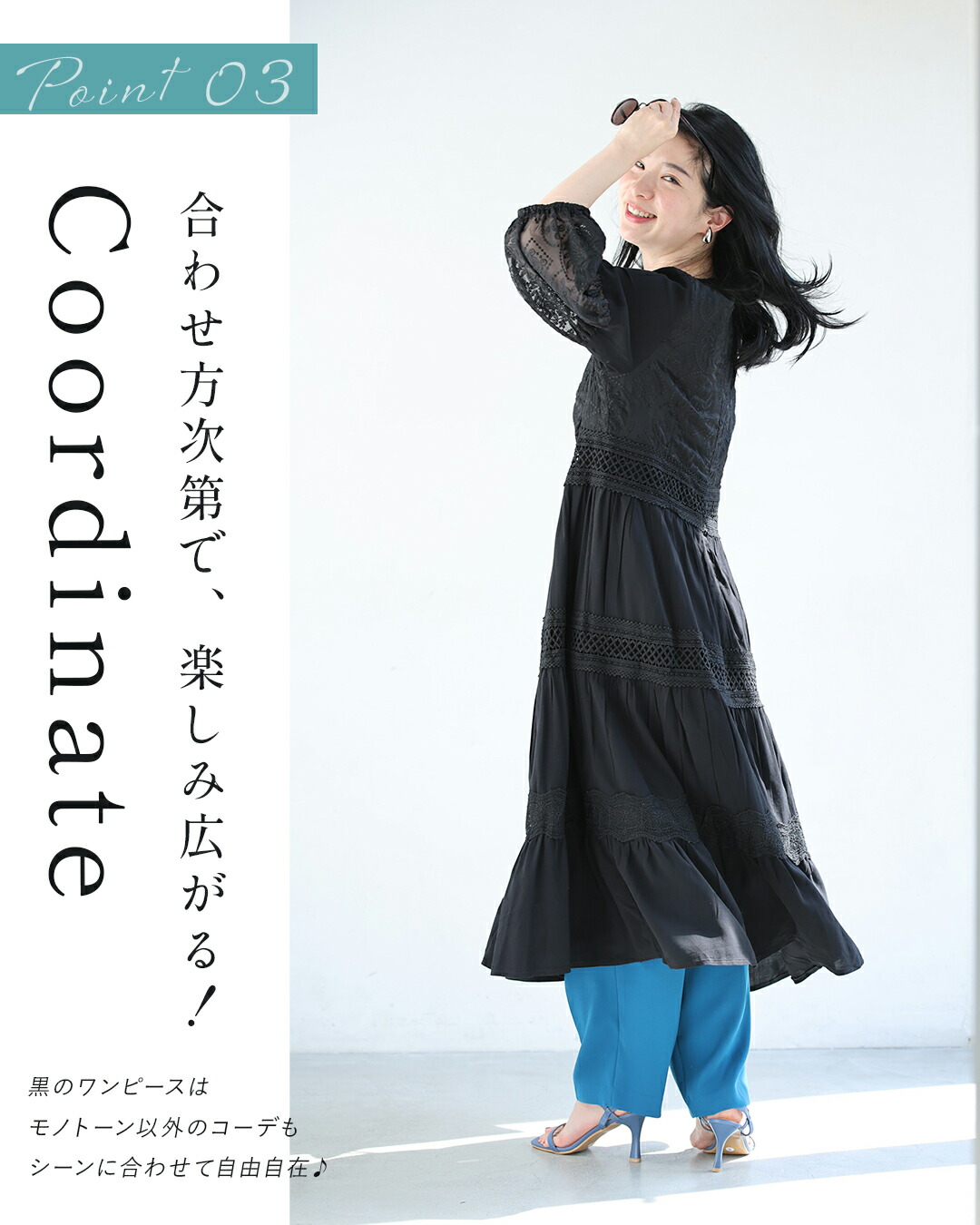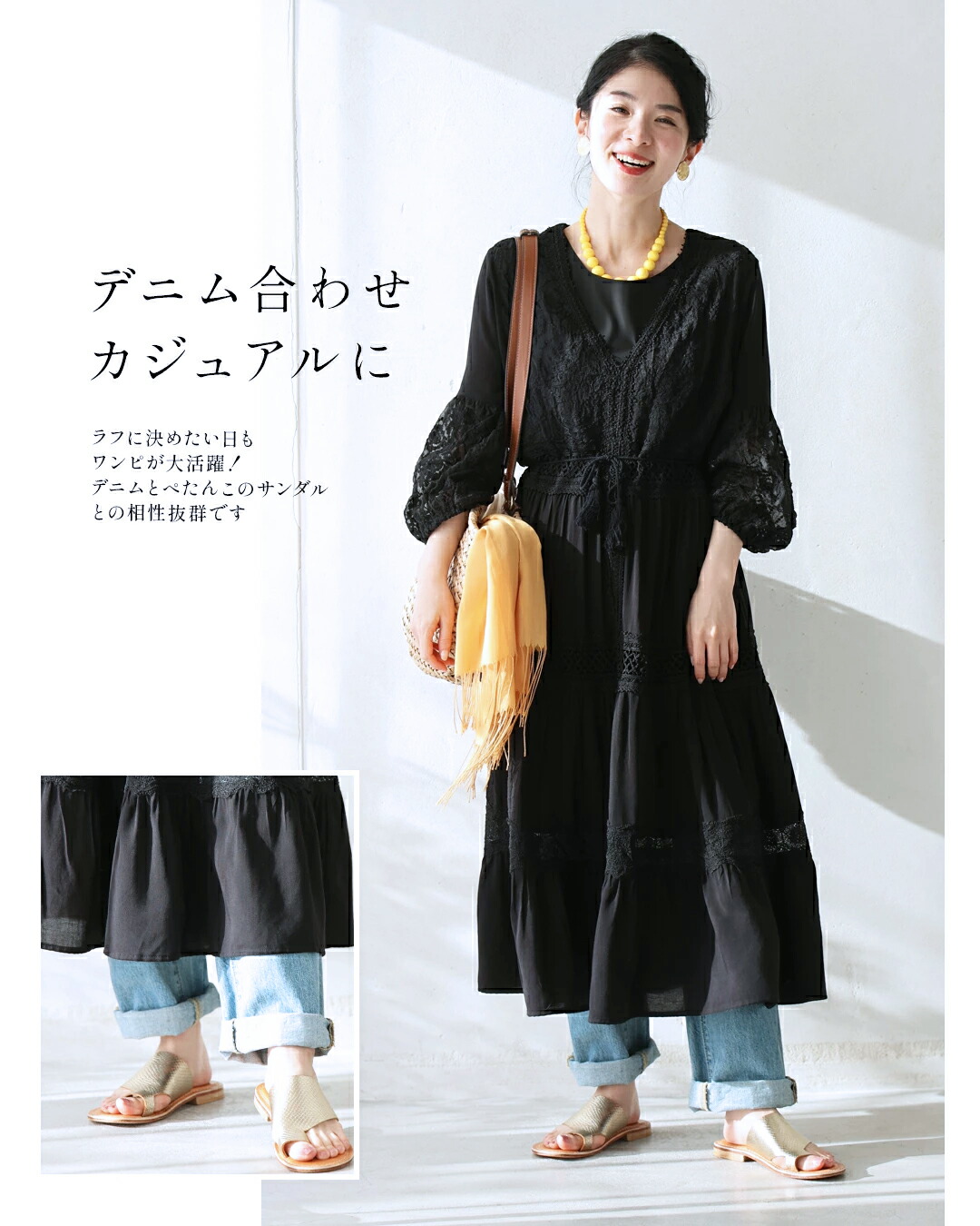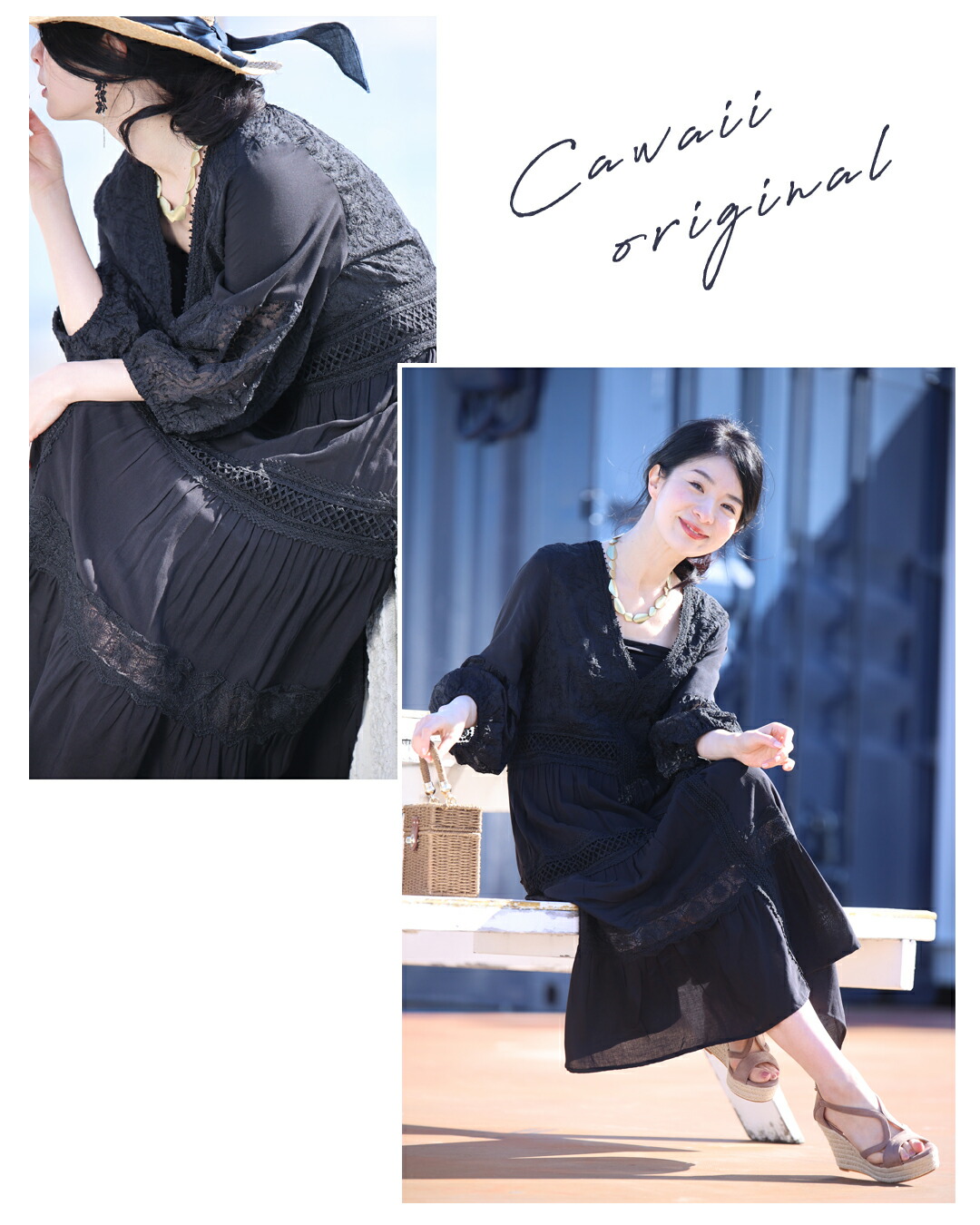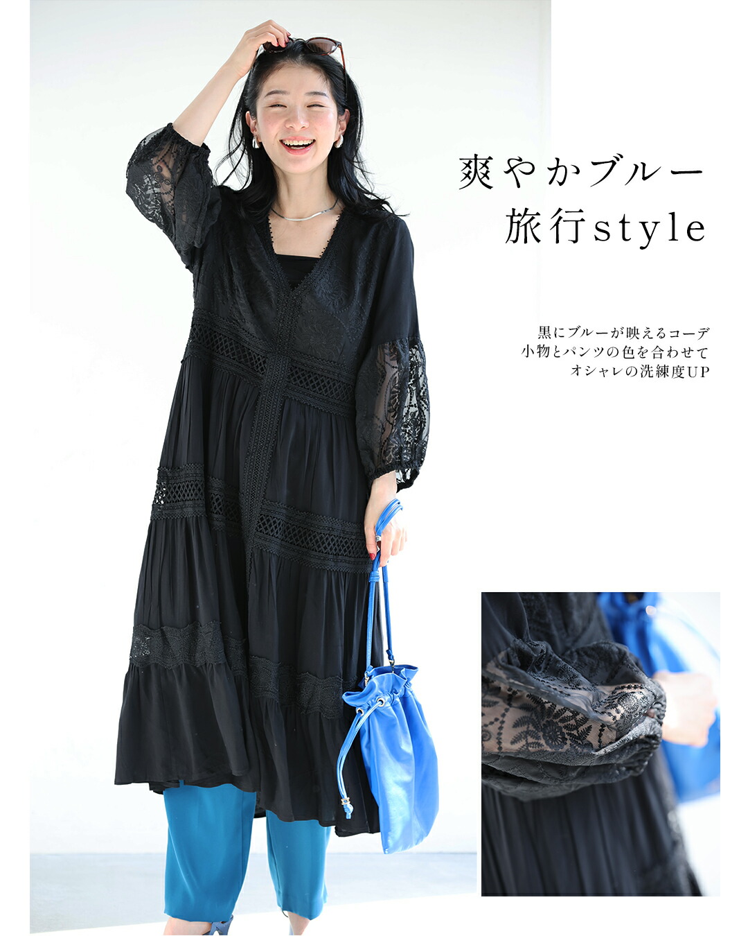 w61170ps 新作 新着 再入荷 CAWAII FRENCHPAVE フレンチパヴェ エレガント ベーシック カジュアル 可愛い かわいい カワイイ おしゃれ オシャレ お洒落 個性 個性的 定番 ベーシック 大人かわいい 大人可愛い 上品 女性らしい デザイン スタンダード ナチュラル きれいめ キレイめ シンプル フェミニン レディース レディースファッション 大人 ママ ミセス 30代 40代 50代 60代 大人旅 南国巡る 刺繍 ワンピ 9分袖 九分袖 8分袖 八分袖 半端袖 ぽわん袖 Vネック ティアード ふんわり 透け感 メリハリ スッキリ見え Sサイズ Mサイズ Lサイズ 2Lサイズ フリーサイズ フリー 小さめ 小さめサイズ小さい 小さいサイズ 低身長 痩せ ほっそり 小柄 細身 標準サイズ 大きめシルエット 大きい 大きめ ビッグシルエット ぽっちゃり F サイズ自由 春 夏 秋 春服 春物 夏服 夏物 薄手 涼しい ずずしい 楽ちん 楽チン ラクラク 楽々 ブラック 黒 黒色 ワンカラー ワントーン 刺繍 レース レース服 日常着 普段着 日常使い おでかけ リゾート サマードレス サンドレス 旅行 女子会