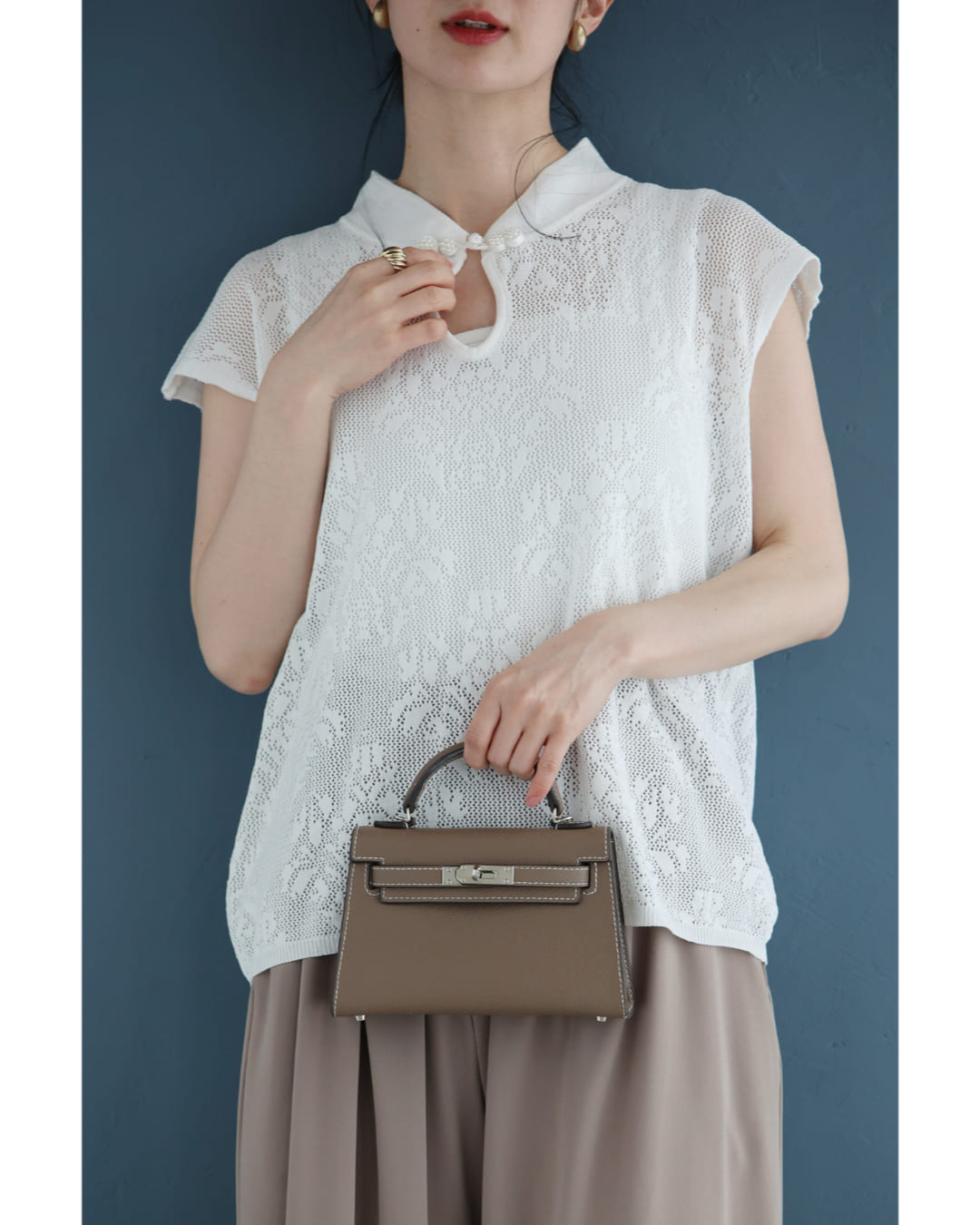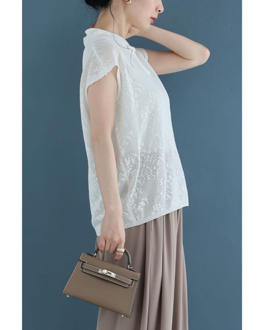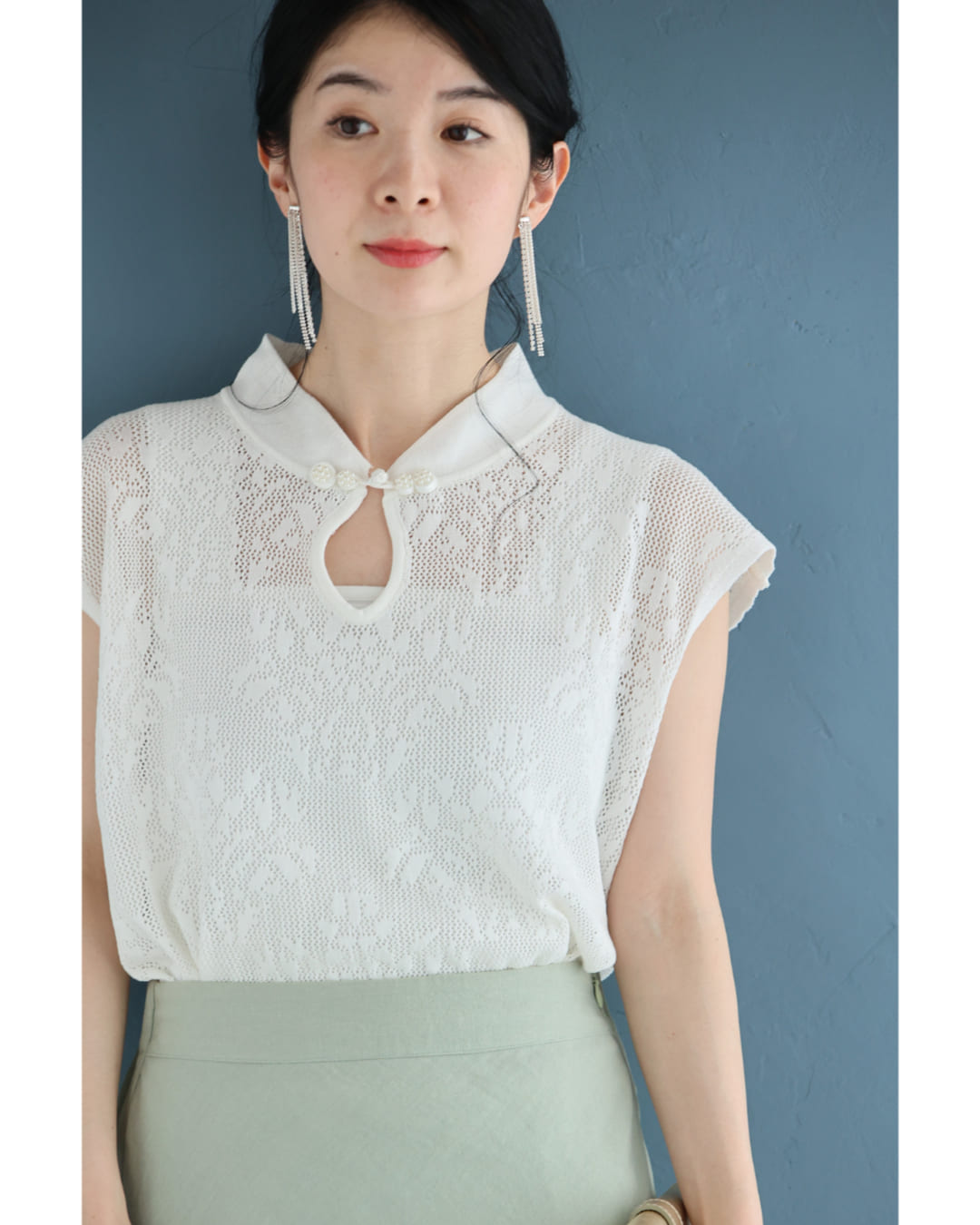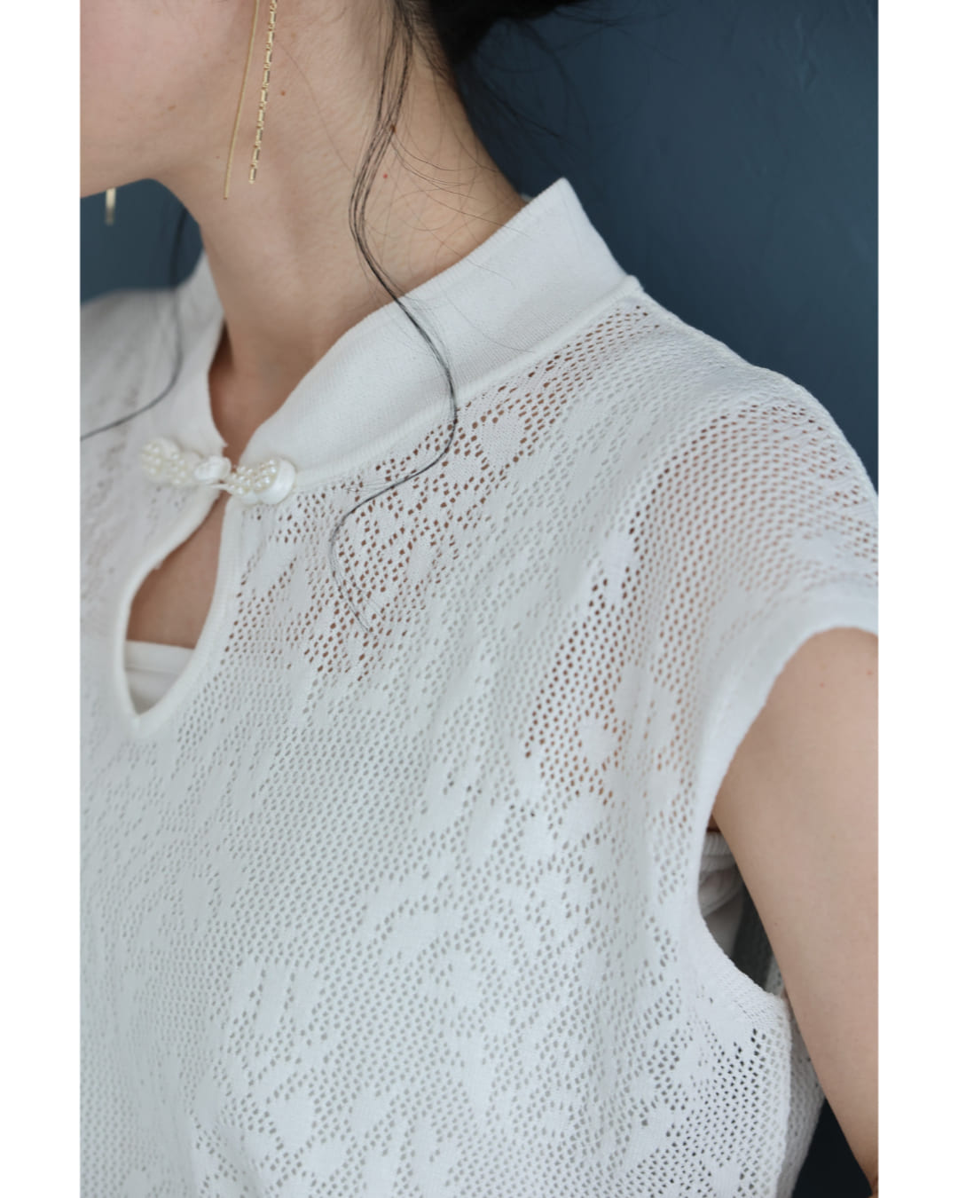 w61224ps 新作 新着 再入荷 CAWAII FRENCHPAVE フレンチパヴェ エレガント ベーシック カジュアル 可愛い かわいい カワイイ おしゃれ オシャレ お洒落 個性 個性的 定番 ベーシック 大人かわいい 大人可愛い 上品 女性らしい デザイン スタンダード ナチュラル きれいめ キレイめ シンプル フェミニン レディース レディースファッション 大人 ママ ミセス 30代 40代 50代 60代 アジアンデザイン 首元 メッシュ カットソー トップス ノースリ ノースリーブ 袖なし フレンチスリーブ チャイナカラー チャイナボタン ワンポイント サマーニット 透かし編み 透け感 短め丈 短丈 スッキリ見え スタイルアップ効果 ワンサイズ S M L フリーサイズ フリー 小さめ 小さいサイズ 低身長 痩せ ほっそり 小柄 細身 標準サイズ ゆったり F サイズ自由 薄手 涼感性 涼しい ずずしい 春 夏 春服 春物 夏 夏服 夏物 着回し 重ね着 レイヤード ストレッチ 伸びる 伸縮性 軽やか 軽量 楽ちん 楽チン ラクラク 楽々 ホワイト 白 白色 柄 総柄 普段着 日常使い おでかけ 旅行 女子会