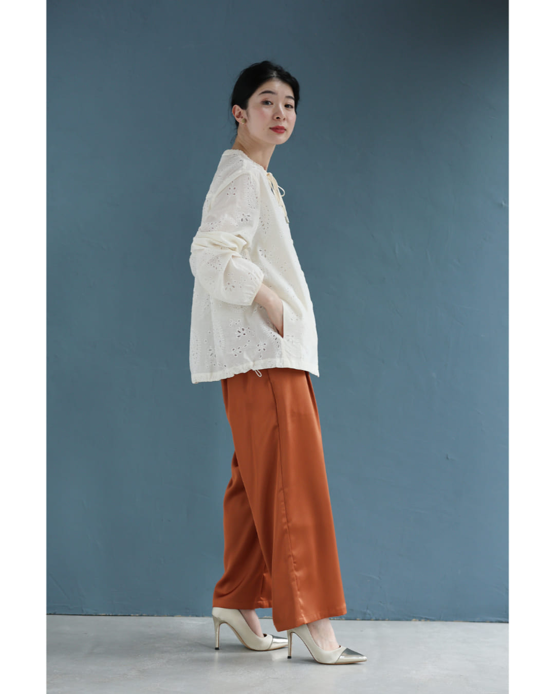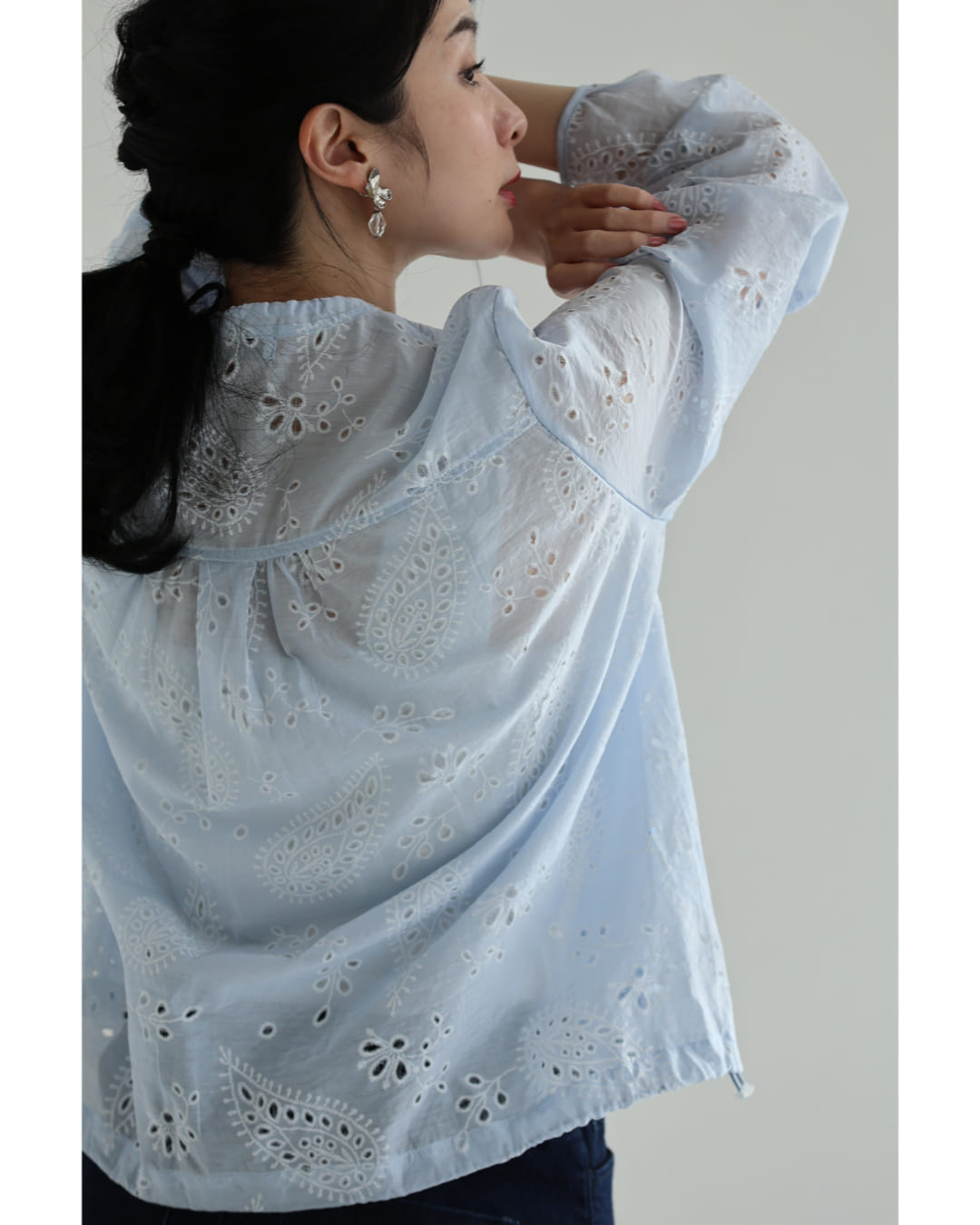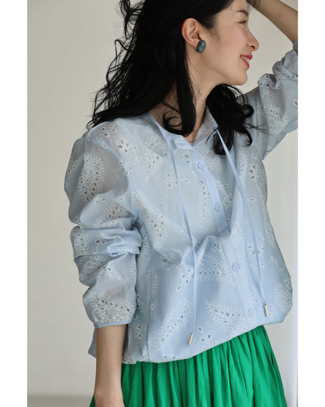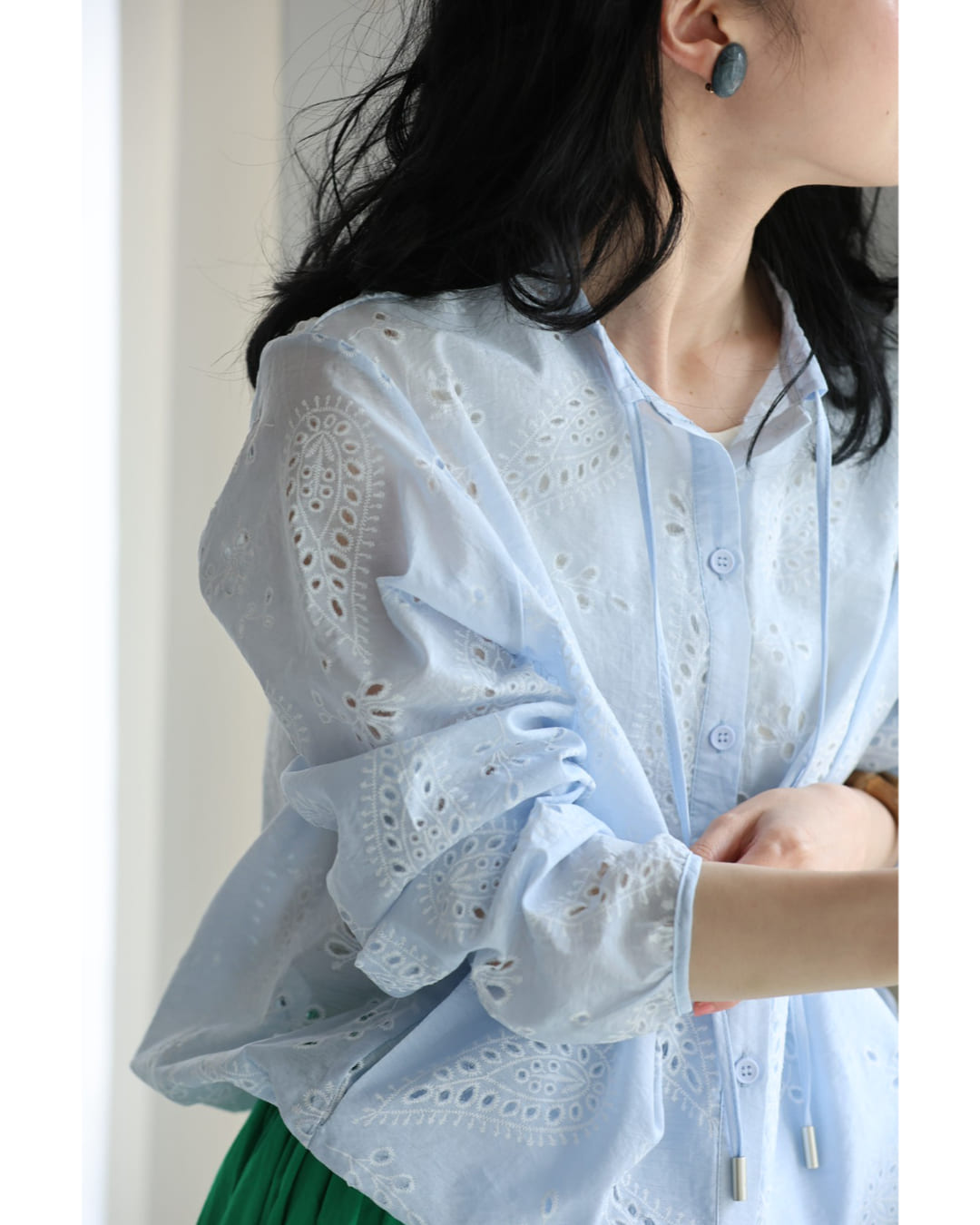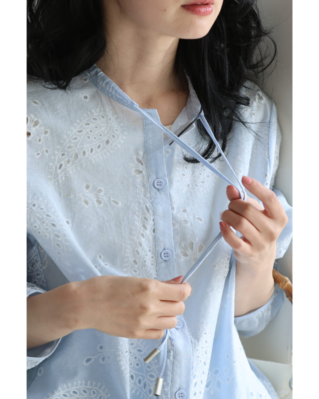 w61387ps 新作 新着 再入荷 CAWAII FRENCHPAVE フレンチパヴェ エレガント ベーシック カジュアル 可愛い かわいい カワイイ おしゃれ オシャレ お洒落 個性 個性的 定番 ベーシック 大人かわいい 大人可愛い 上品 女性らしい デザイン スタンダード ナチュラル きれいめ キレイめ シンプル フェミニン レディース レディースファッション 大人 ママ ミセス 30代 40代 50代 60代 ペイズリー浮かぶパンチングレースシャツトップス 長袖 S M L XL 3L ワンサイズ フリー 小さめ 小さい 低身長 痩せ ほっそり 小柄 細身 標準サイズ 大きめシルエット 大きい ビッグシルエット ゆったり F サイズ自由 薄手 涼感性 涼しい ずずしい 春 夏 春服 春物 夏服 夏物 爽やか トレンド 大人女子 体型カバー 楽 アイボリー ブルー 日常使い デイリー 仕事 会社 おでかけ 刺繍 レース 裾コード