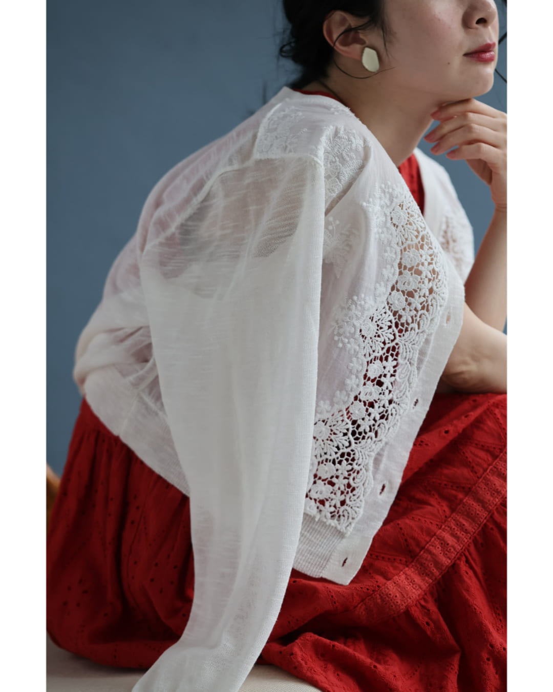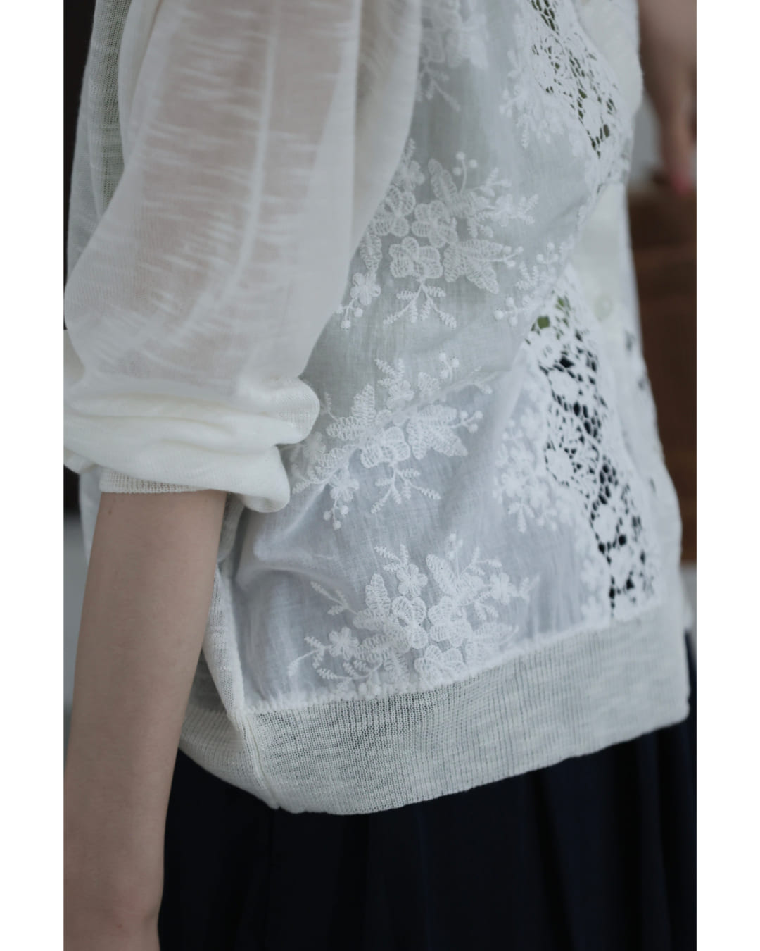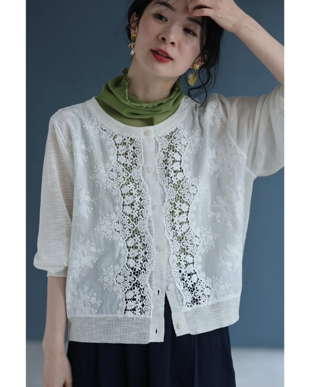 予約:4月25日〜5月10日前後の出荷予定 Sから3L対応 雅なレースが流れる刺繍シアーカーディガン
