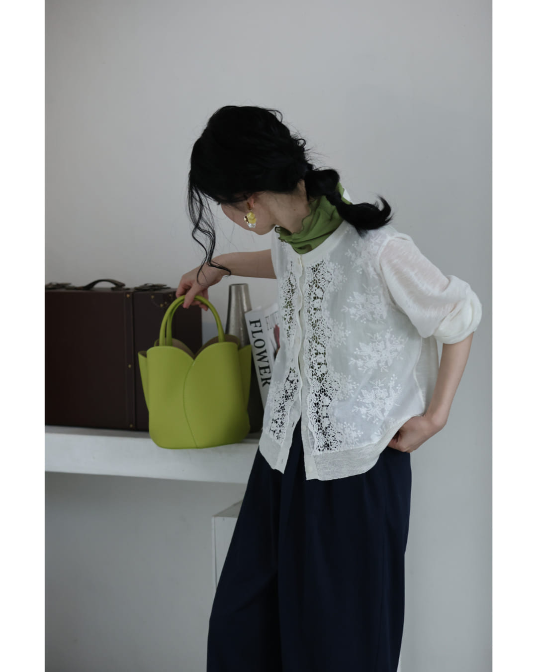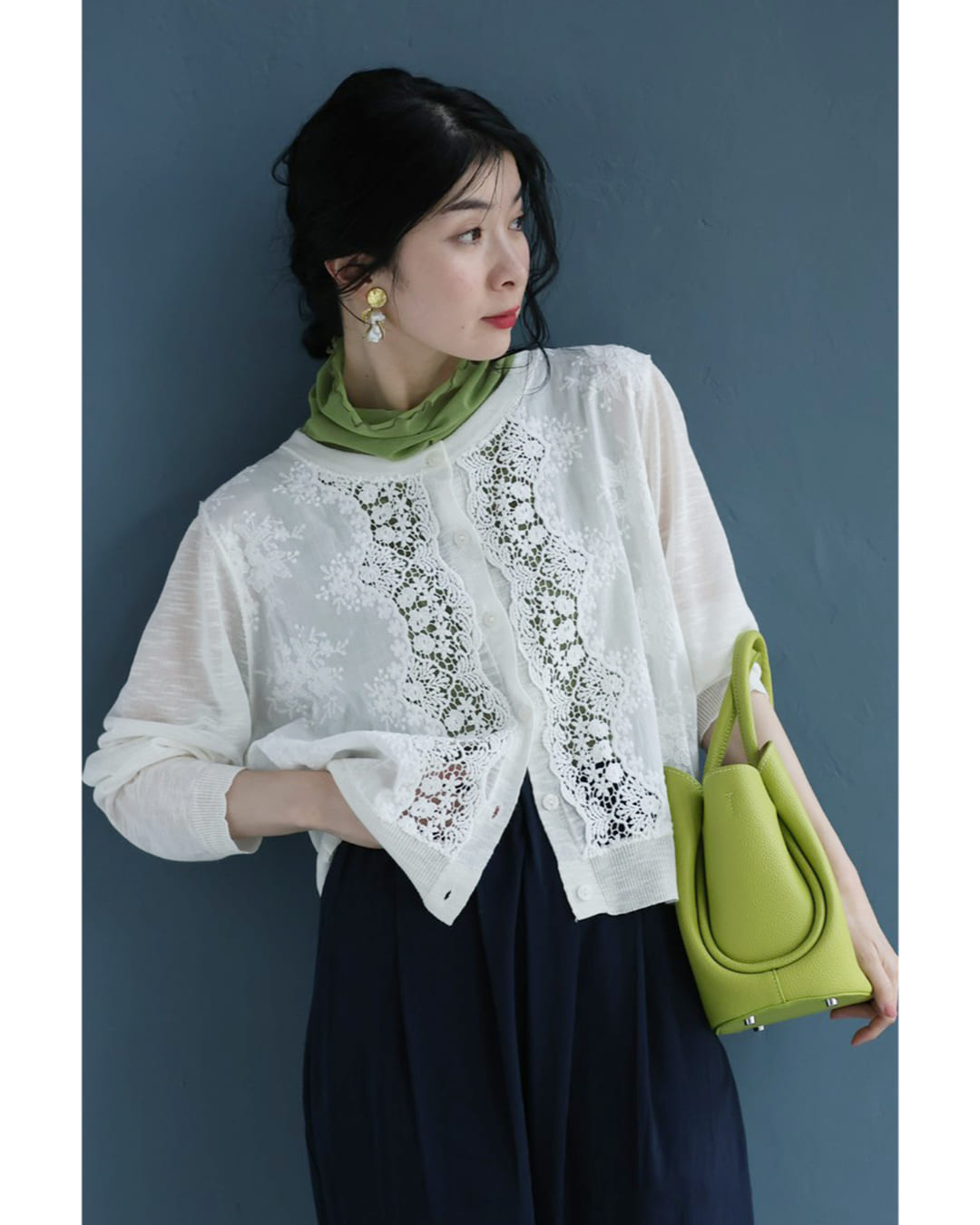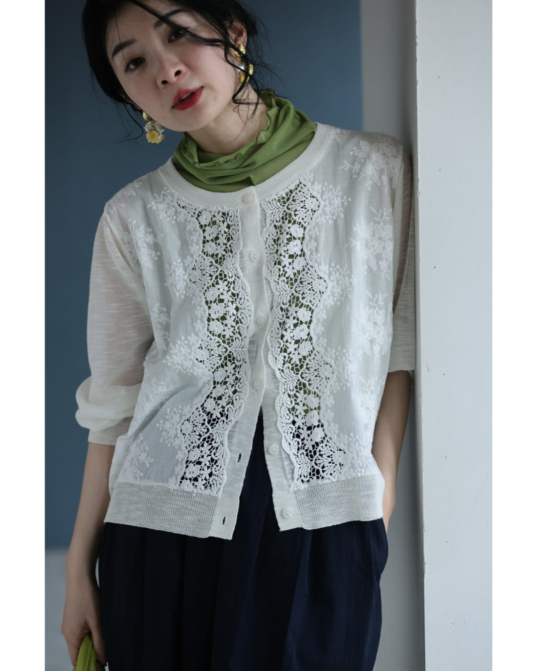 予約:4月25日〜5月10日前後の出荷予定 Sから3L対応 雅なレースが流れる刺繍シアーカーディガン