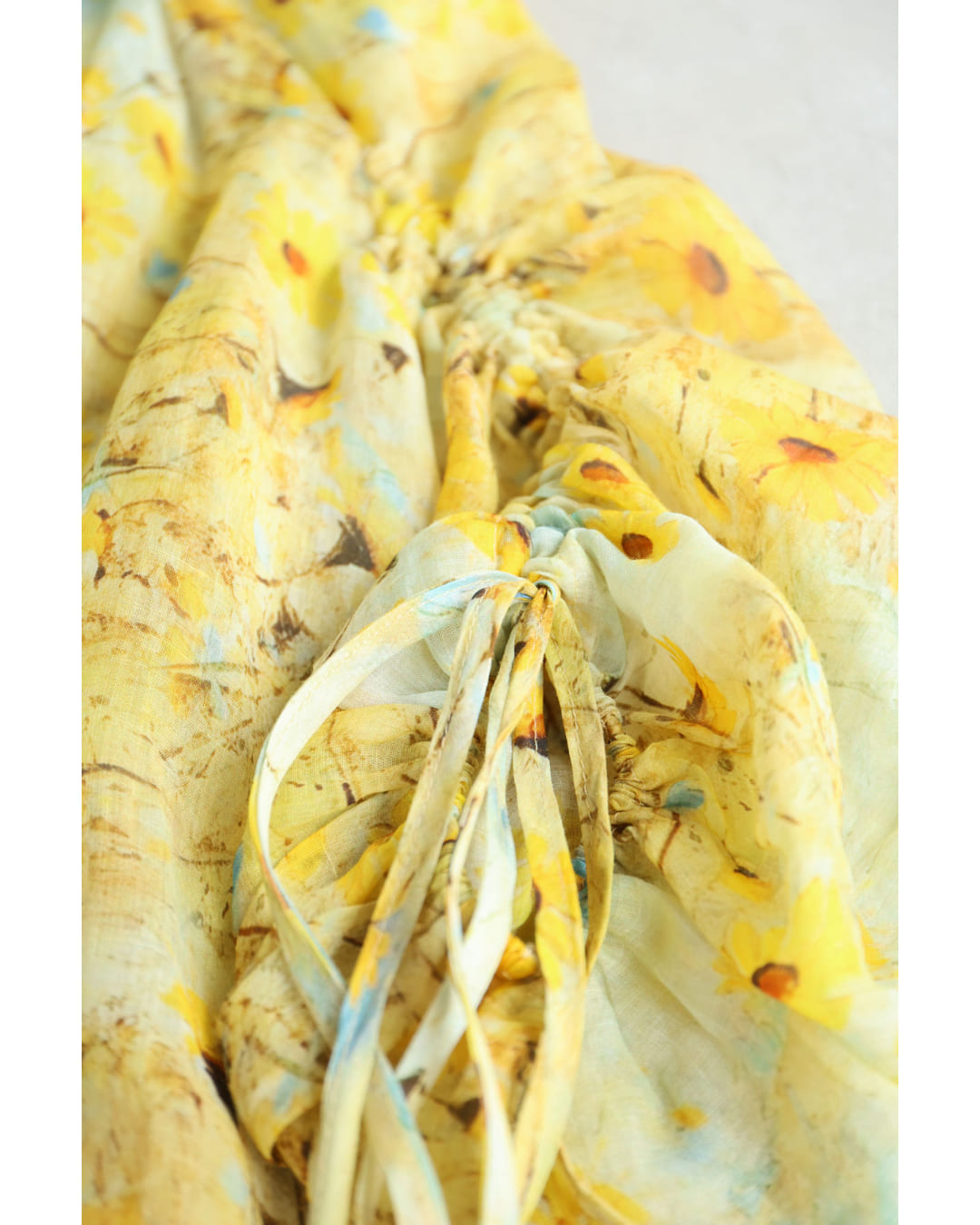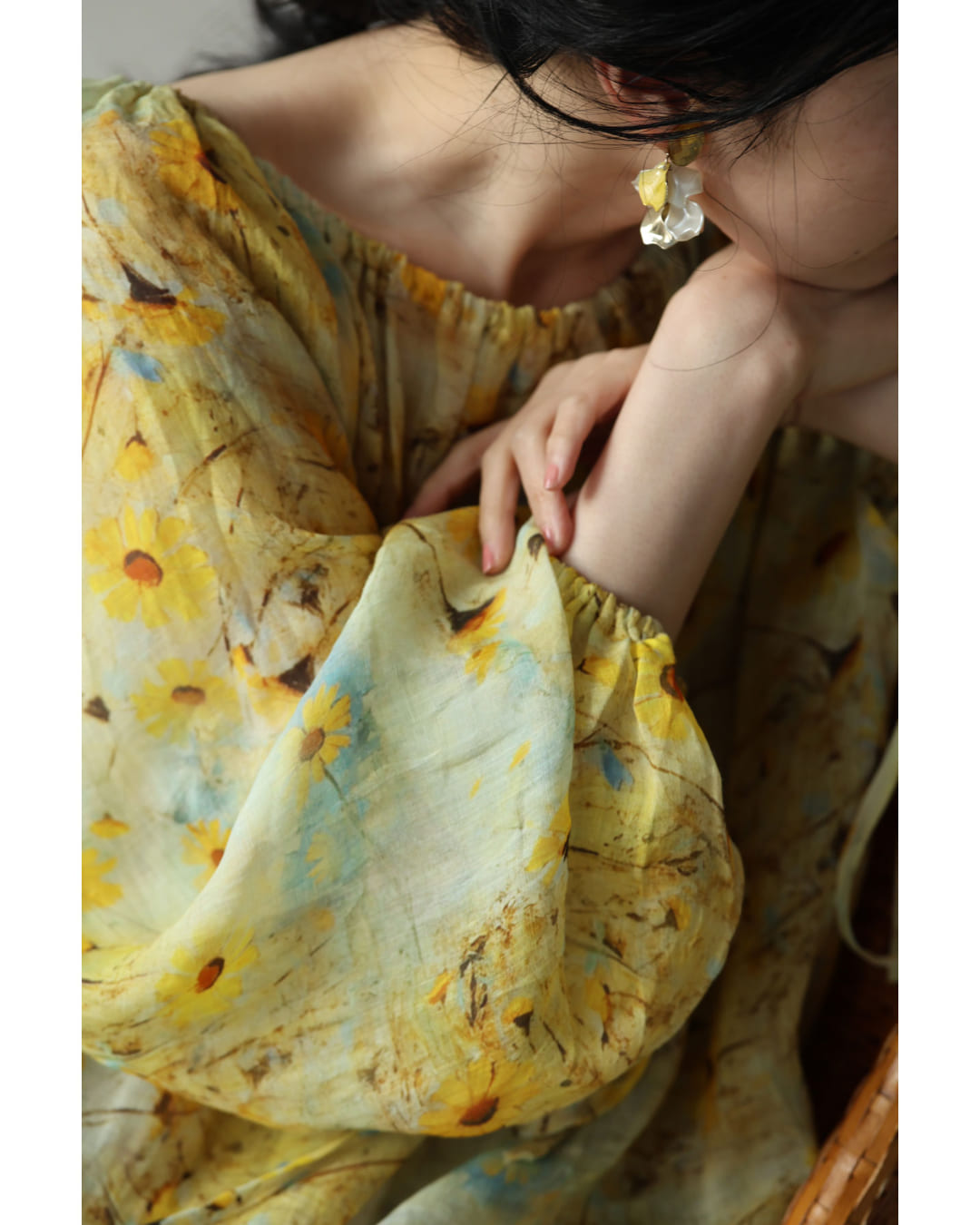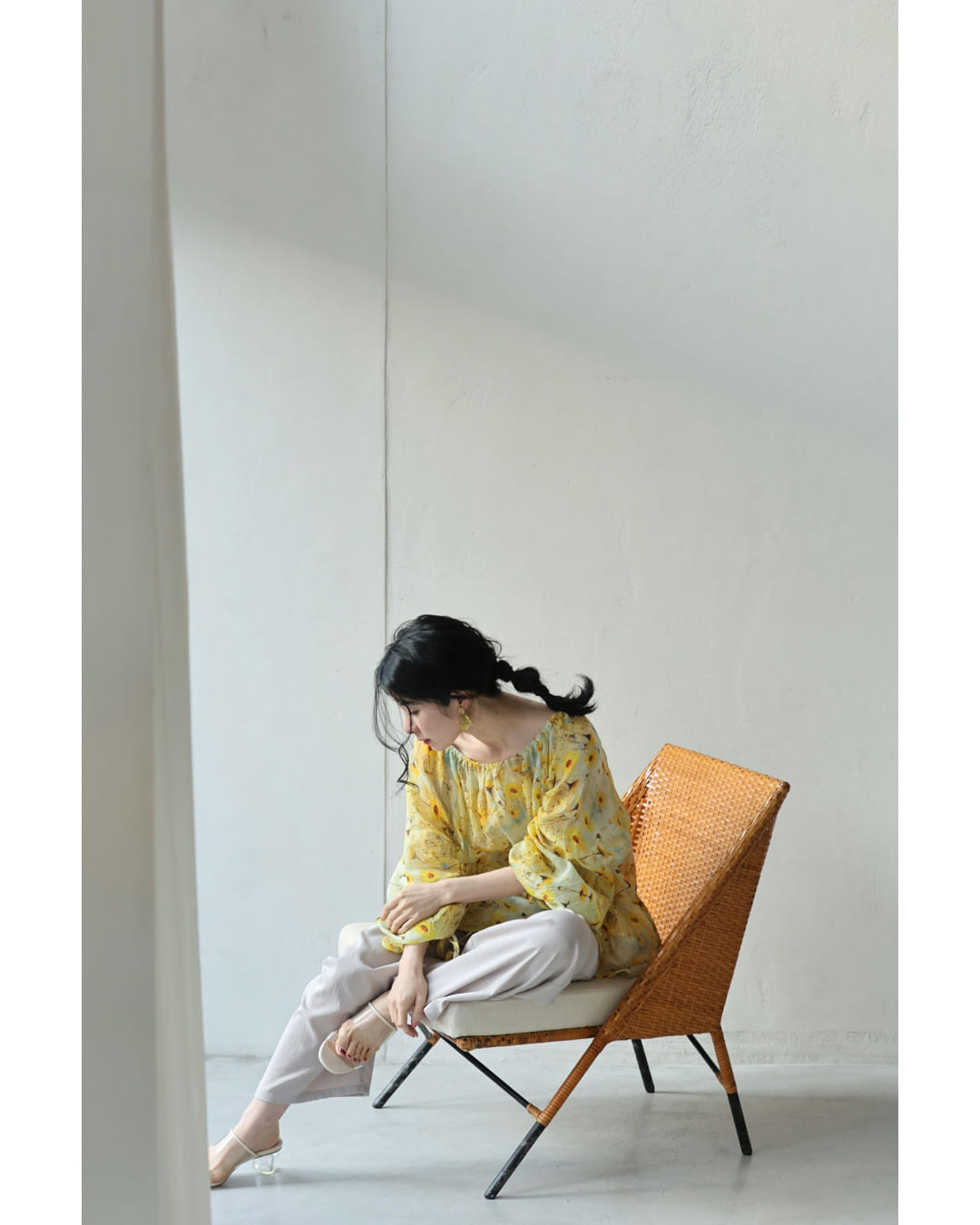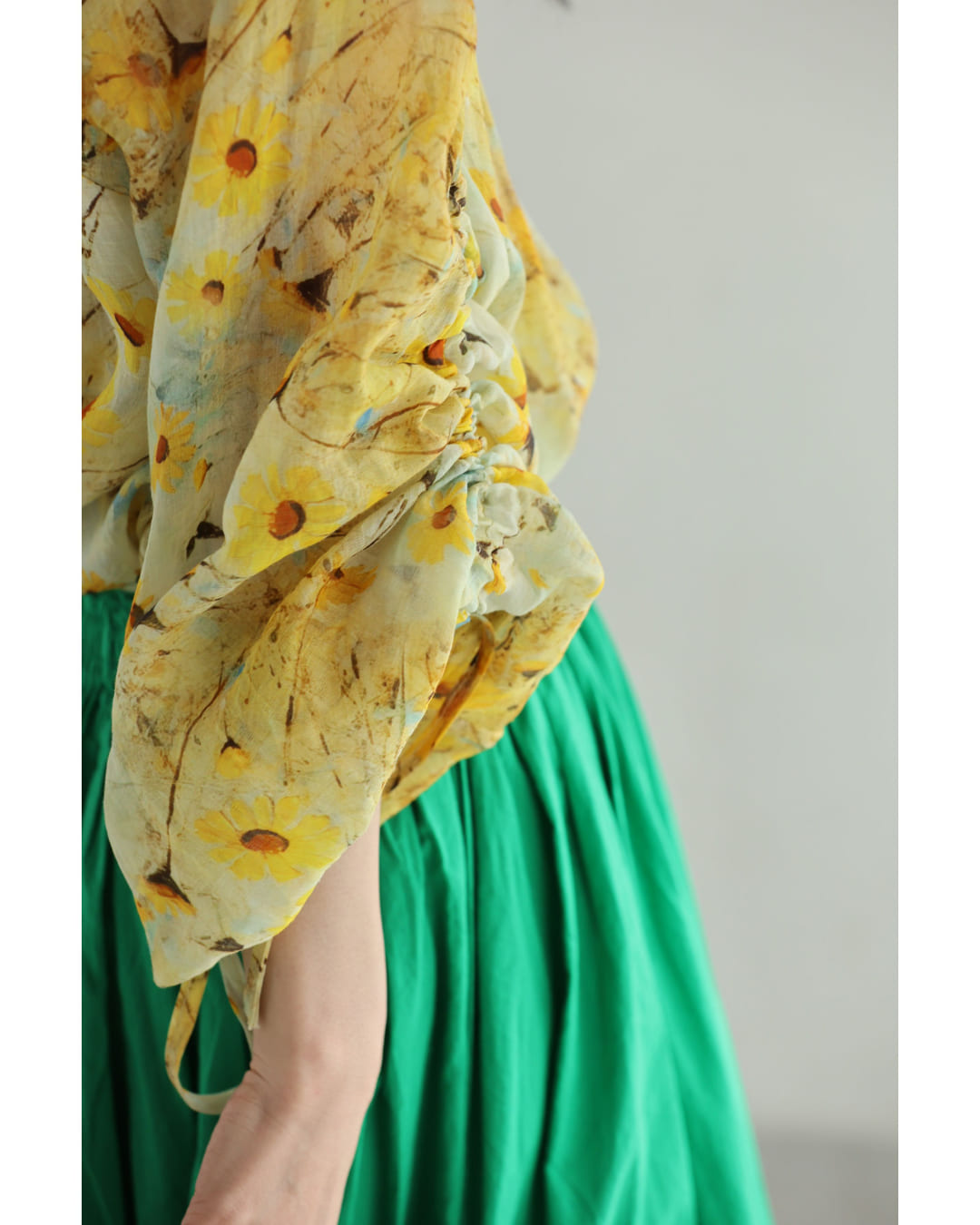 w61511ps 新作 新着 再入荷 CAWAII FRENCHPAVE フレンチパヴェ エレガント ベーシック カジュアル 可愛い かわいい カワイイ おしゃれ オシャレ お洒落 個性 個性的 定番 ベーシック 大人かわいい 大人可愛い 上品 女性らしい デザイン スタンダード ナチュラル きれいめ キレイめ シンプル フェミニン レディース レディースファッション 大人 ママ ミセス 30代 40代 50代 60代 日差しに揺れるマーガレットのシアーブラウストップス 長袖 S M L XL 3L ワンサイズ フリー 小さめ 小さい 低身長 痩せ ほっそり 小柄 細身 標準サイズ 大きめシルエット 大きい ビッグシルエット ゆったり F サイズ自由 薄手 涼感性 涼しい ずずしい 春 夏 春服 春物 夏服 夏物 楽 爽やか ビタミンカラー イエロー 黄 柄 総柄 花 フラワー ガーデン 麻 日常使い デイリー おでかけ リゾート 旅行 デート オフショル