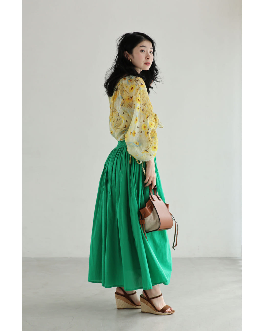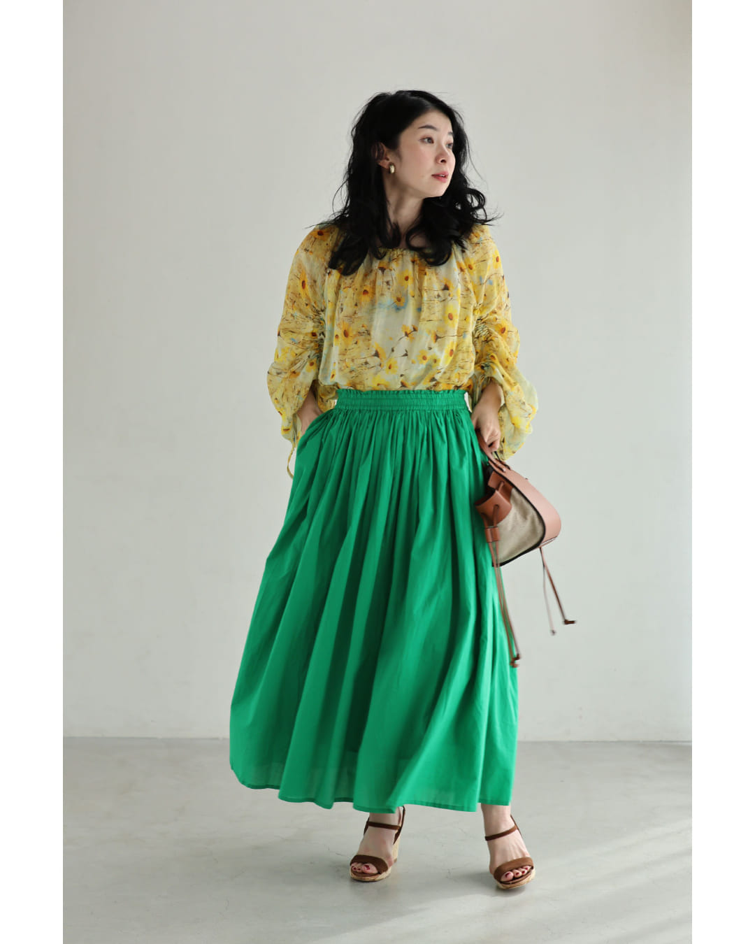 予約:4月25日〜5月10日前後の出荷予定 Sから3L対応 日差しに揺れるマーガレットのシアーブラウストップス