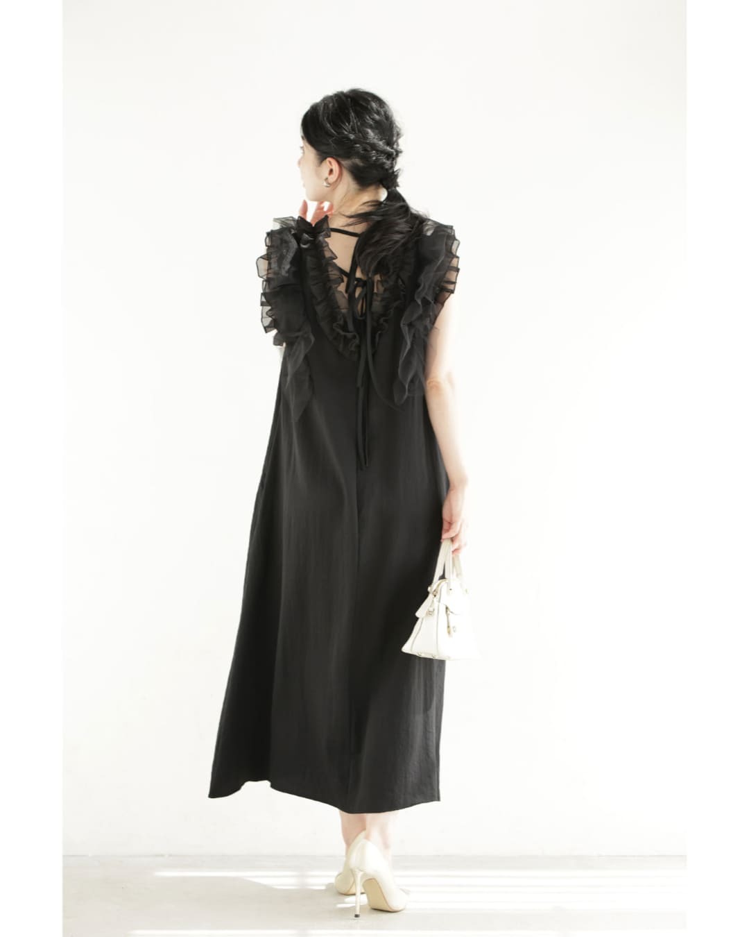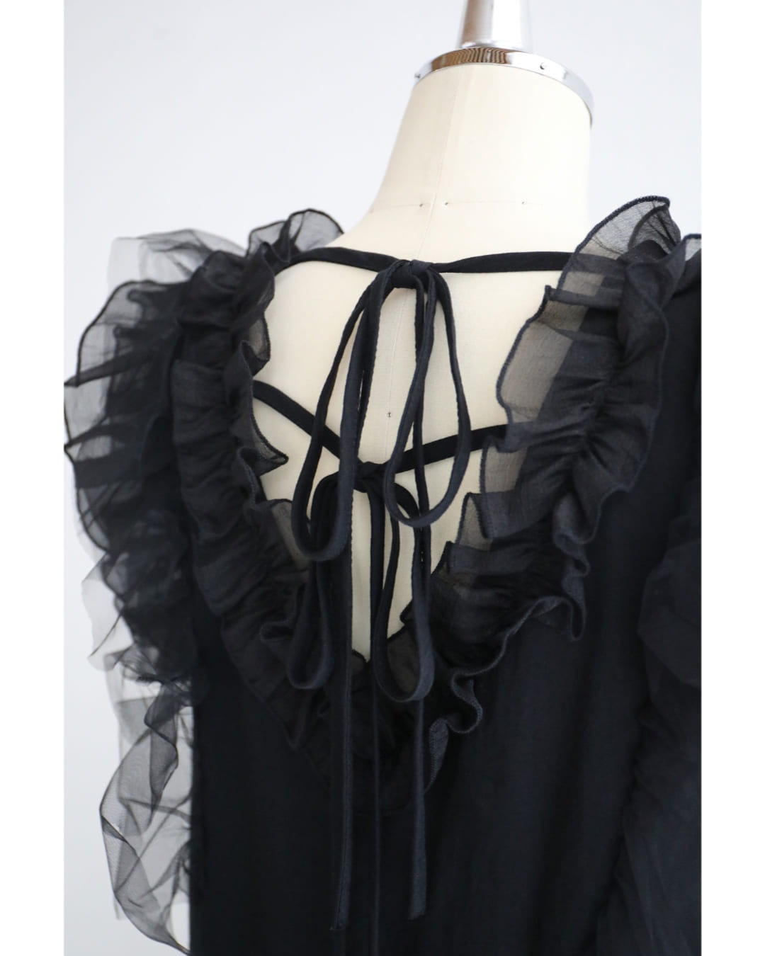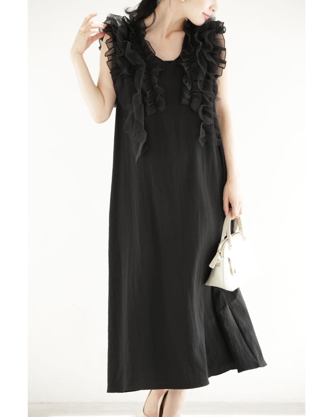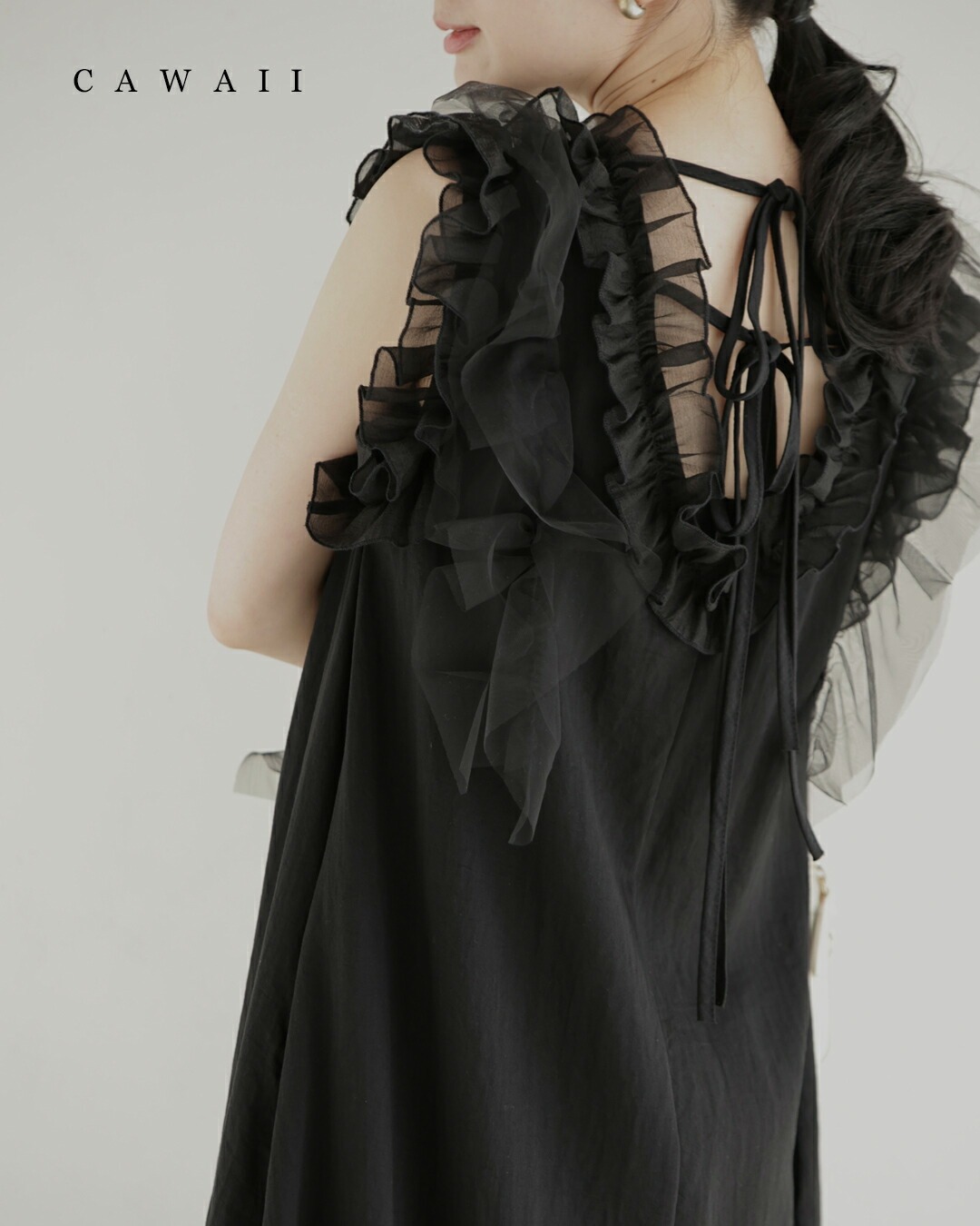 w61519ps 新作 新着 再入荷 CAWAII FRENCHPAVE フレンチパヴェ エレガント ベーシック カジュアル 可愛い かわいい カワイイ おしゃれ オシャレ お洒落 個性 個性的 定番 ベーシック 大人かわいい 大人可愛い 上品 女性らしい デザイン スタンダード ナチュラル きれいめ キレイめ シンプル フェミニン レディース レディースファッション 大人 ママ ミセス 30代 40代 50代 60代 黒 デコレーション チュール バックリボン ミディアム ワンピース ノースリ 袖なし ロング S M 小さめ 小さいサイズ 低身長 痩せ ほっそり 小柄 細身 薄手 涼感性 涼しい ずずしい 春 夏 春服 春物 夏服 夏物 軽やか 軽量 ブラック 黒 体型カバー 普段着 日常使い おでかけ 女子会 デート 食事会 フリル ボリューム リボン 装飾