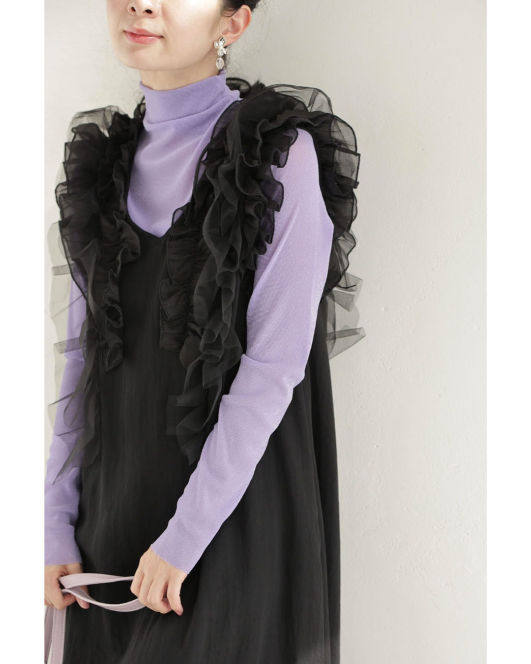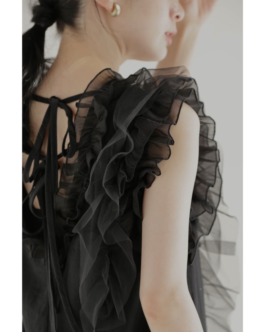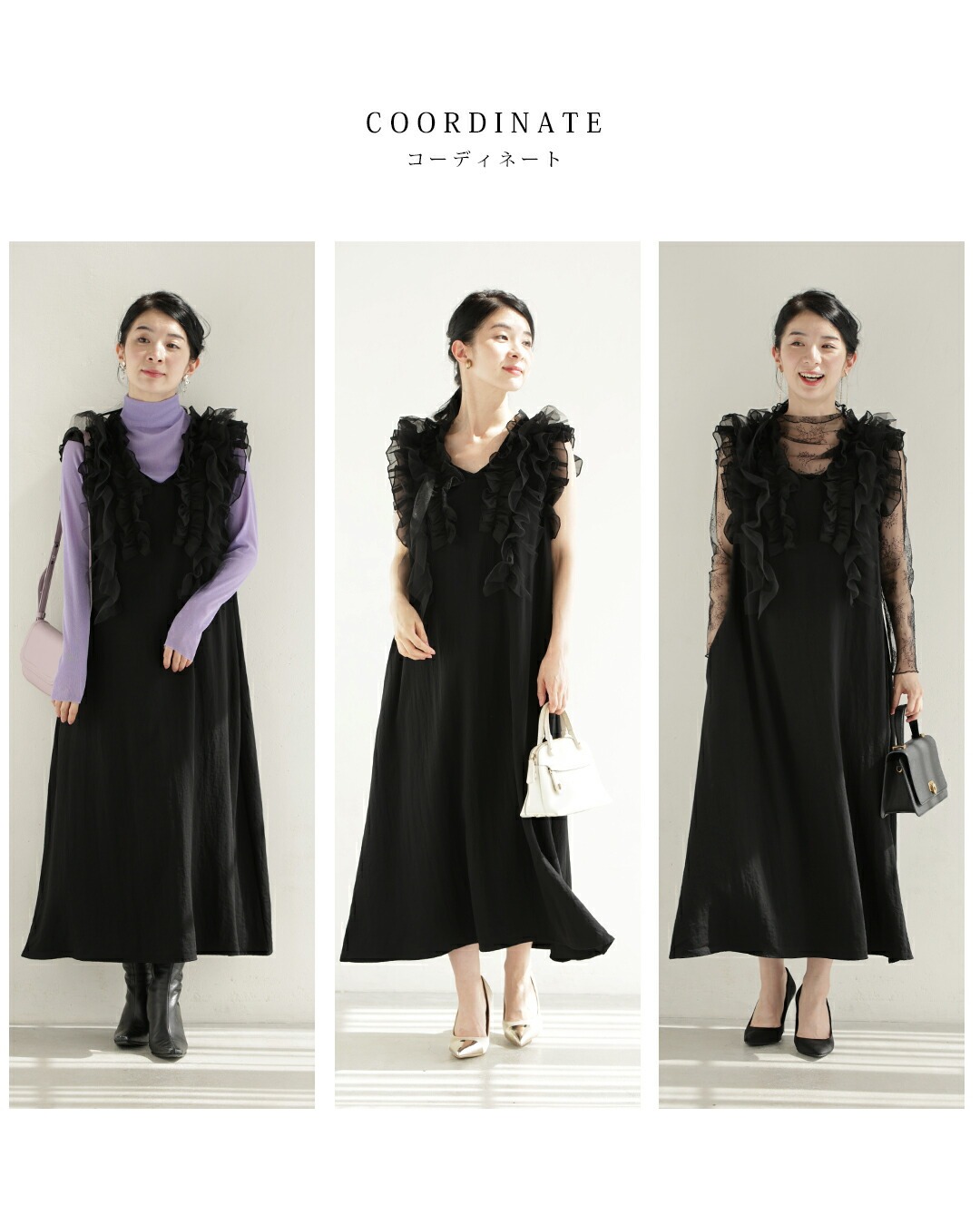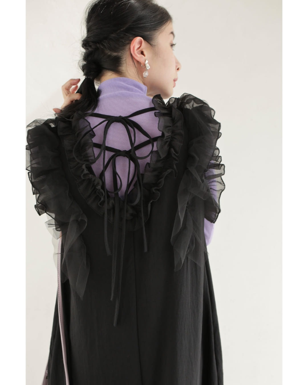 w61519ps 新作 新着 再入荷 CAWAII FRENCHPAVE フレンチパヴェ エレガント ベーシック カジュアル 可愛い かわいい カワイイ おしゃれ オシャレ お洒落 個性 個性的 定番 ベーシック 大人かわいい 大人可愛い 上品 女性らしい デザイン スタンダード ナチュラル きれいめ キレイめ シンプル フェミニン レディース レディースファッション 大人 ママ ミセス 30代 40代 50代 60代 黒 デコレーション チュール バックリボン ミディアム ワンピース ノースリ 袖なし ロング S M 小さめ 小さいサイズ 低身長 痩せ ほっそり 小柄 細身 薄手 涼感性 涼しい ずずしい 春 夏 春服 春物 夏服 夏物 軽やか 軽量 ブラック 黒 体型カバー 普段着 日常使い おでかけ 女子会 デート 食事会 フリル ボリューム リボン 装飾