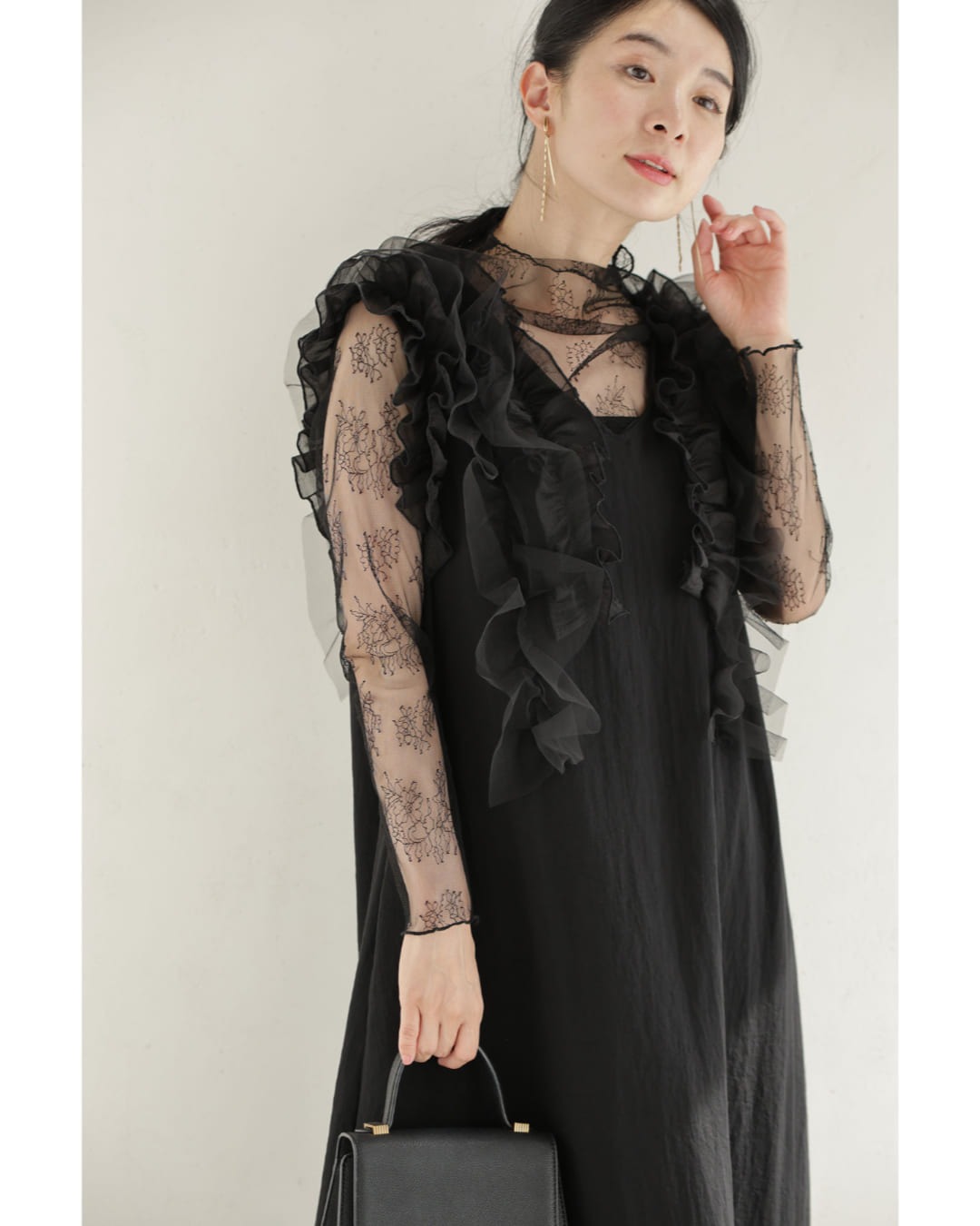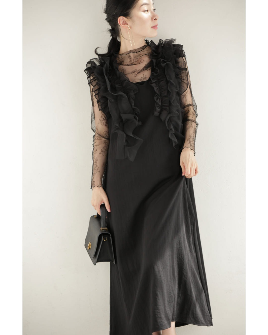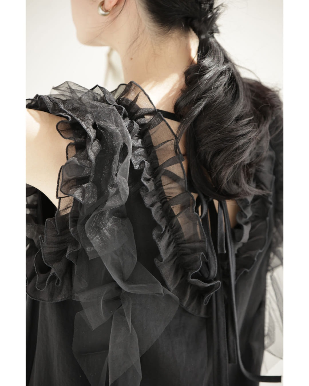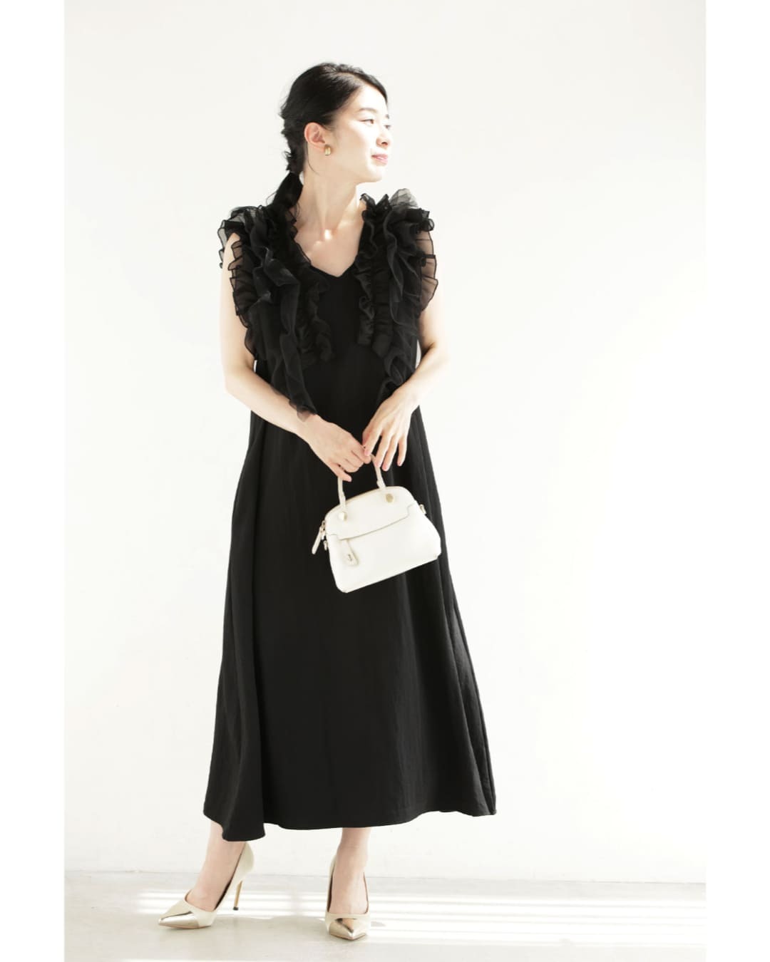 w61519ps 新作 新着 再入荷 CAWAII FRENCHPAVE フレンチパヴェ エレガント ベーシック カジュアル 可愛い かわいい カワイイ おしゃれ オシャレ お洒落 個性 個性的 定番 ベーシック 大人かわいい 大人可愛い 上品 女性らしい デザイン スタンダード ナチュラル きれいめ キレイめ シンプル フェミニン レディース レディースファッション 大人 ママ ミセス 30代 40代 50代 60代 黒 デコレーション チュール バックリボン ミディアム ワンピース ノースリ 袖なし ロング S M 小さめ 小さいサイズ 低身長 痩せ ほっそり 小柄 細身 薄手 涼感性 涼しい ずずしい 春 夏 春服 春物 夏服 夏物 軽やか 軽量 ブラック 黒 体型カバー 普段着 日常使い おでかけ 女子会 デート 食事会 フリル ボリューム リボン 装飾