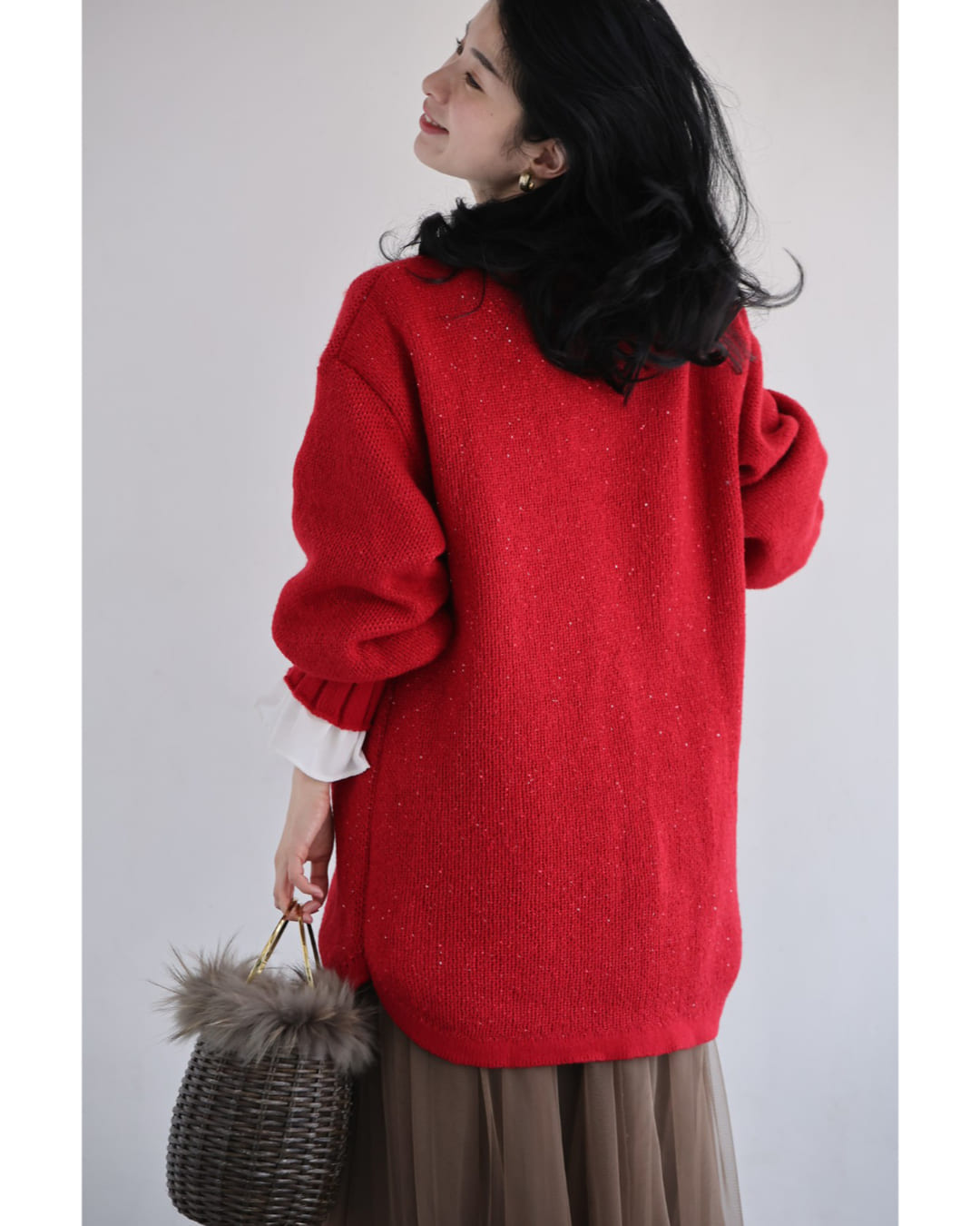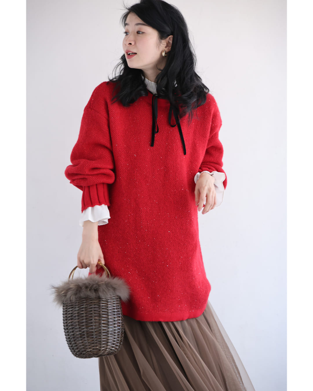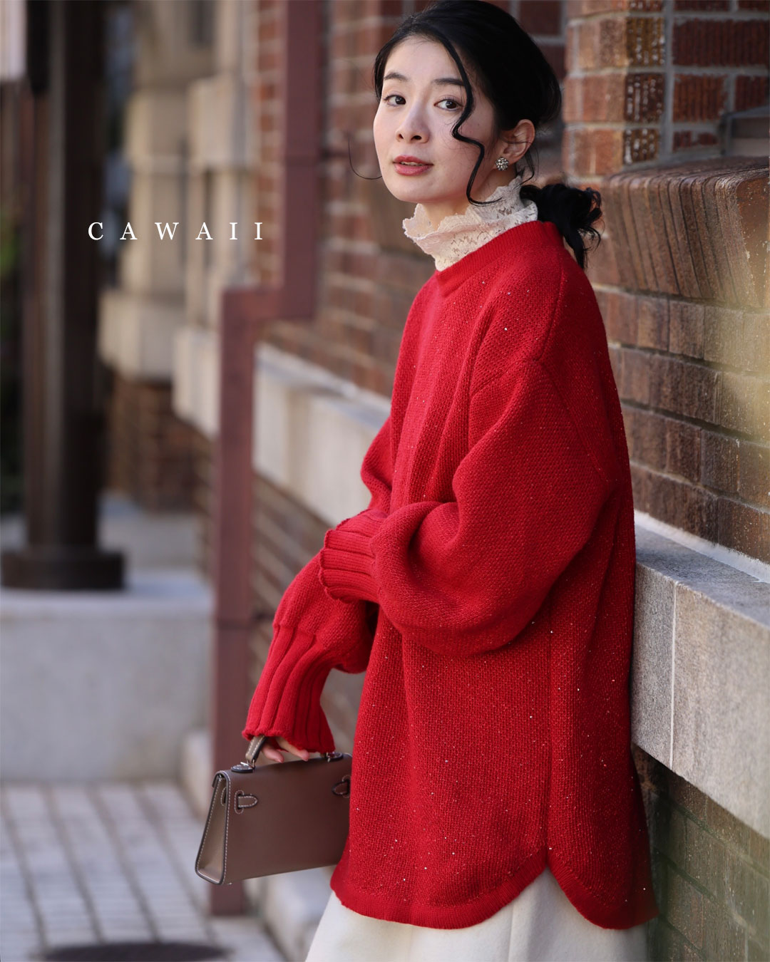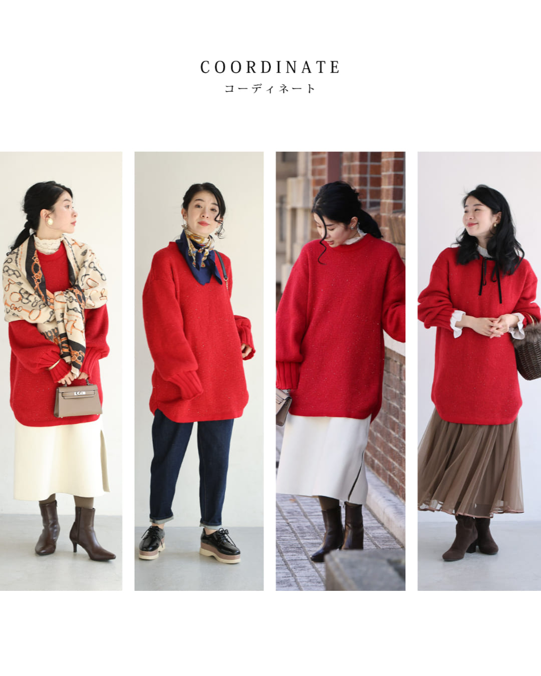 w61548ps 新作 新着 再入荷 CAWAII FRENCHPAVE フレンチパヴェ エレガント ベーシック カジュアル 可愛い かわいい カワイイ おしゃれ オシャレ お洒落 個性 個性的 定番 ベーシック 大人かわいい 大人可愛い 上品 女性らしい デザイン スタンダード ナチュラル きれいめ キレイめ シンプル フェミニン レディース レディースファッション 大人 ママ ミセス 30代 40代 50代 60代 動くたび キラキラ 瞬く スパンコール ニット チュニック 長袖 丸首 クルーネック スパンコール ラメ キラキラ 華やか S M L 2L 3L フリーサイズ フリー 小さめ 小さめサイズ小さい 小さいサイズ 低身長 痩せ ほっそり 小柄 細身 標準サイズ 大きめシルエット 大きい 大きめ ビッグシルエット ぽっちゃり F サイズ自由 春 秋 冬 秋服 秋物 冬服 冬物 楽ちん 伸縮性 レッド 赤色 普段着 日常使い おでかけ 買い物 旅行 女子会 デート 大人女子