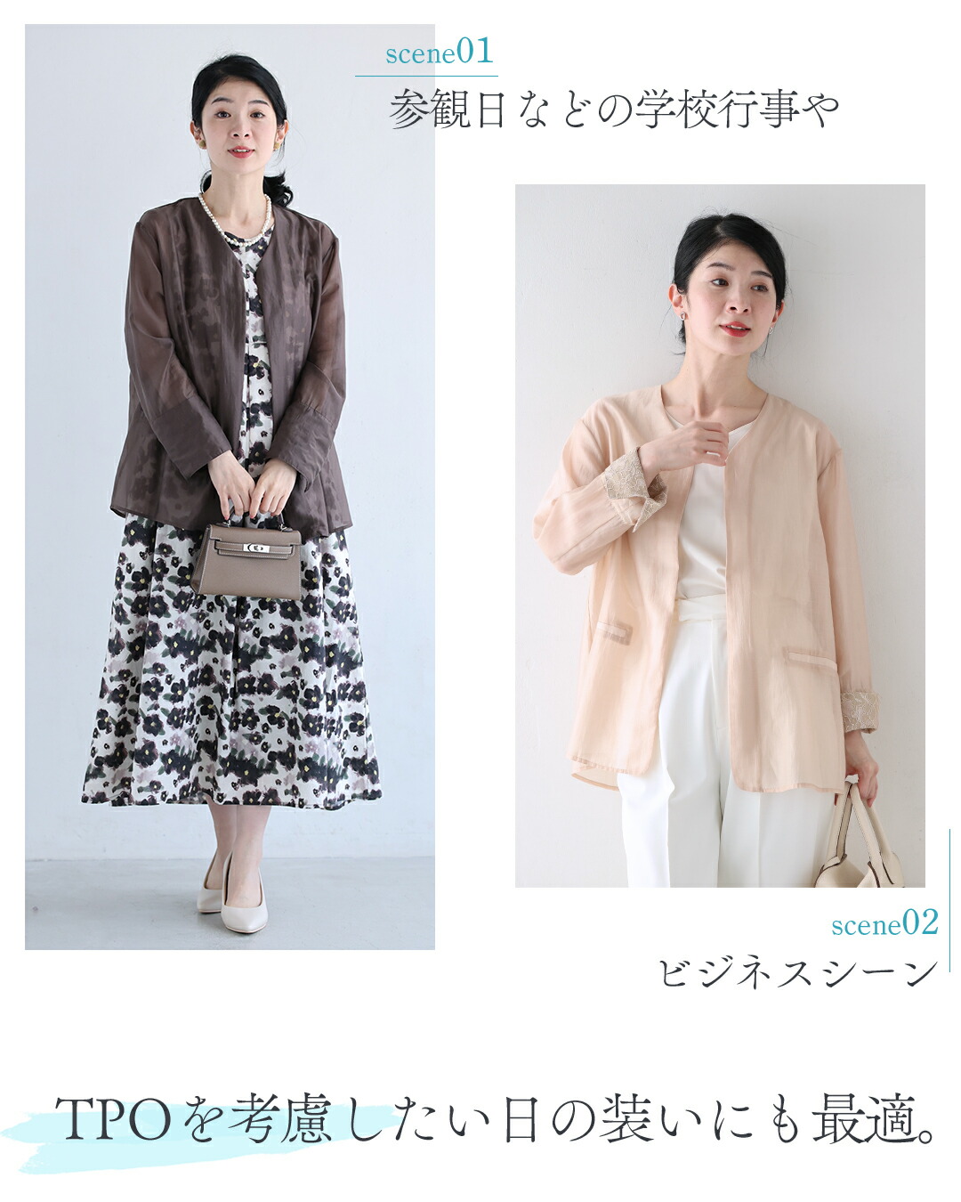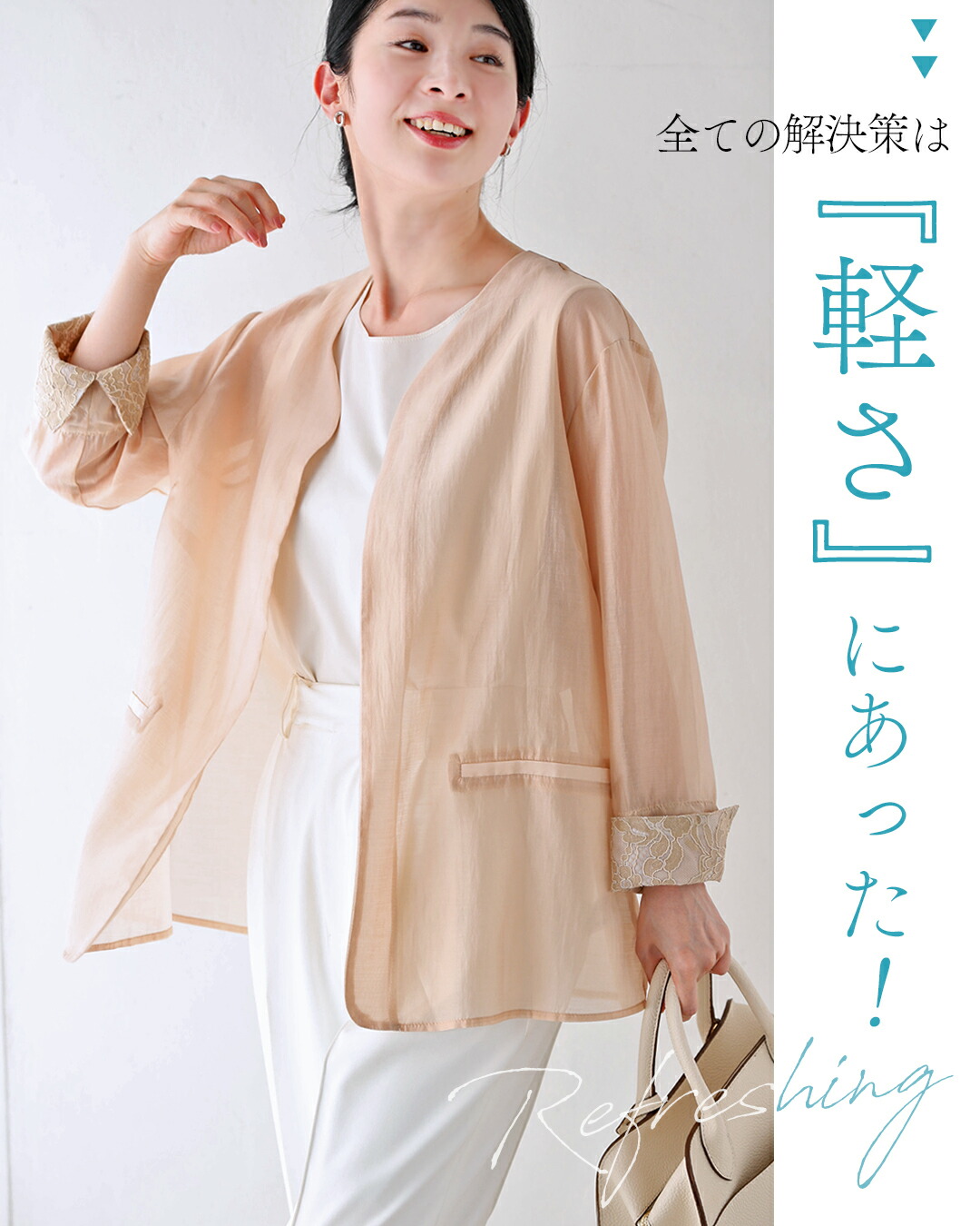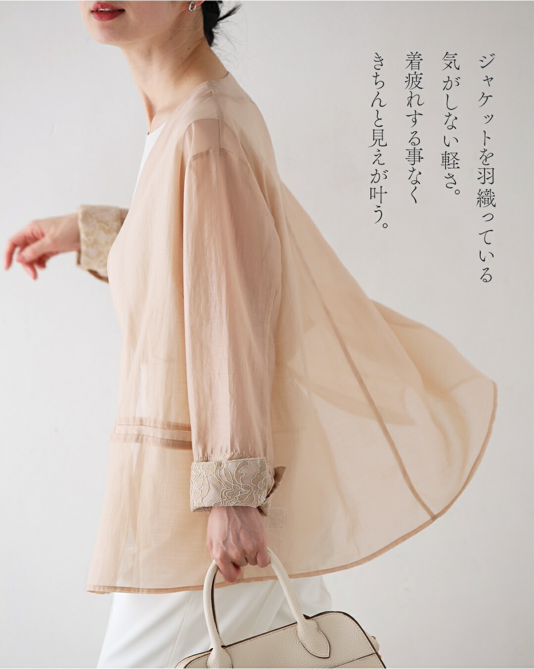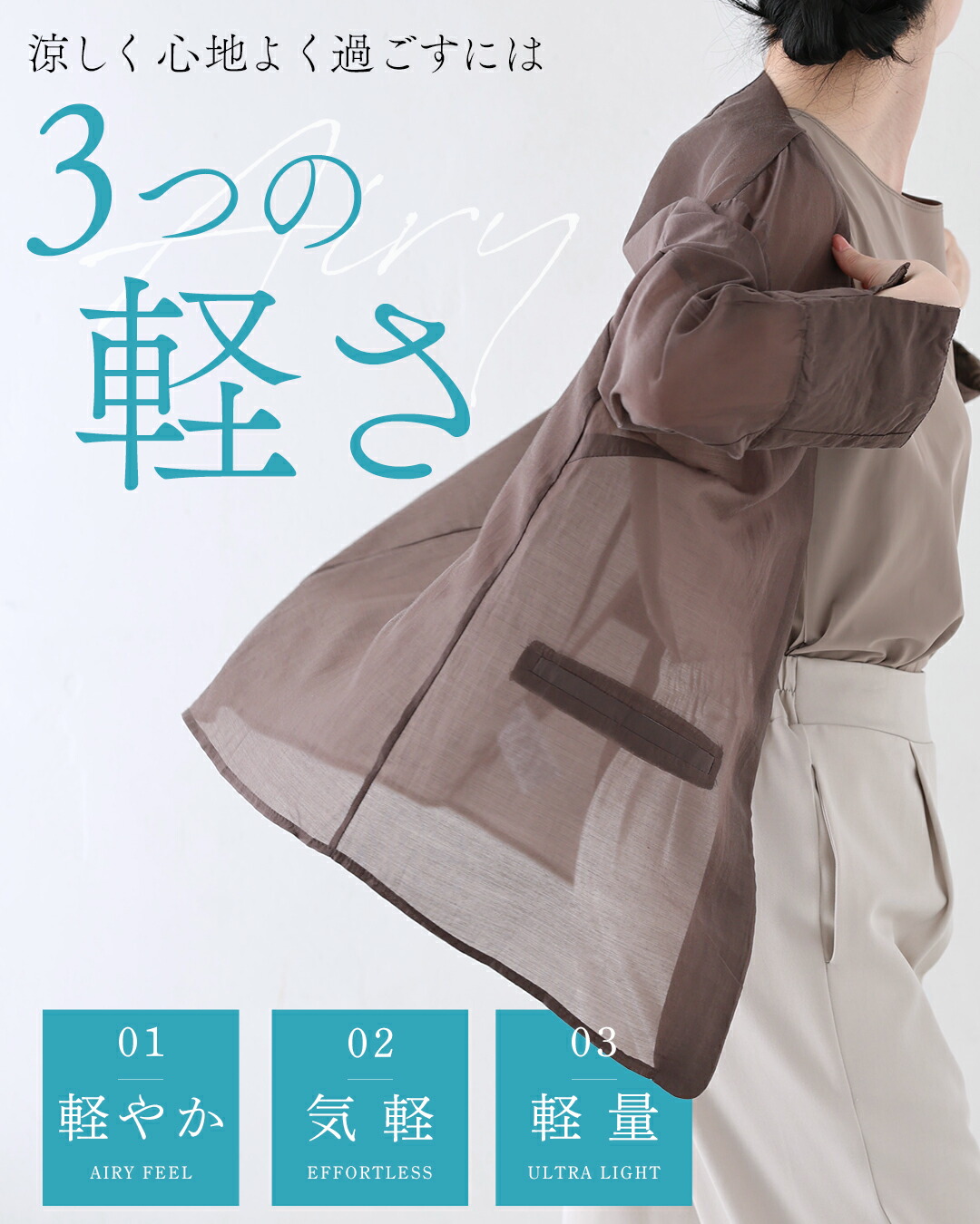 w61620ps 新作 新着 再入荷 CAWAII FRENCHPAVE フレンチパヴェ エレガント ベーシック カジュアル 可愛い かわいい カワイイ おしゃれ オシャレ お洒落 個性 個性的 定番 ベーシック 大人かわいい 大人可愛い 上品 女性らしい デザイン スタンダード ナチュラル きれいめ キレイめ シンプル フェミニン レディース レディースファッション 大人 ママ ミセス 30代 40代 50代 60代 軽ジャケ 薄くて軽くて、きちんと見え アウター 羽織り ブラウン 茶 ベージュ S M L XL 標準サイズ サイズ展開 日常使い ヘビロテ おでかけ 軽やか UVカット 紫外線カット UV対策 紫外線対策 日焼け対策 冷房対策 シアー 光沢感 抜け感