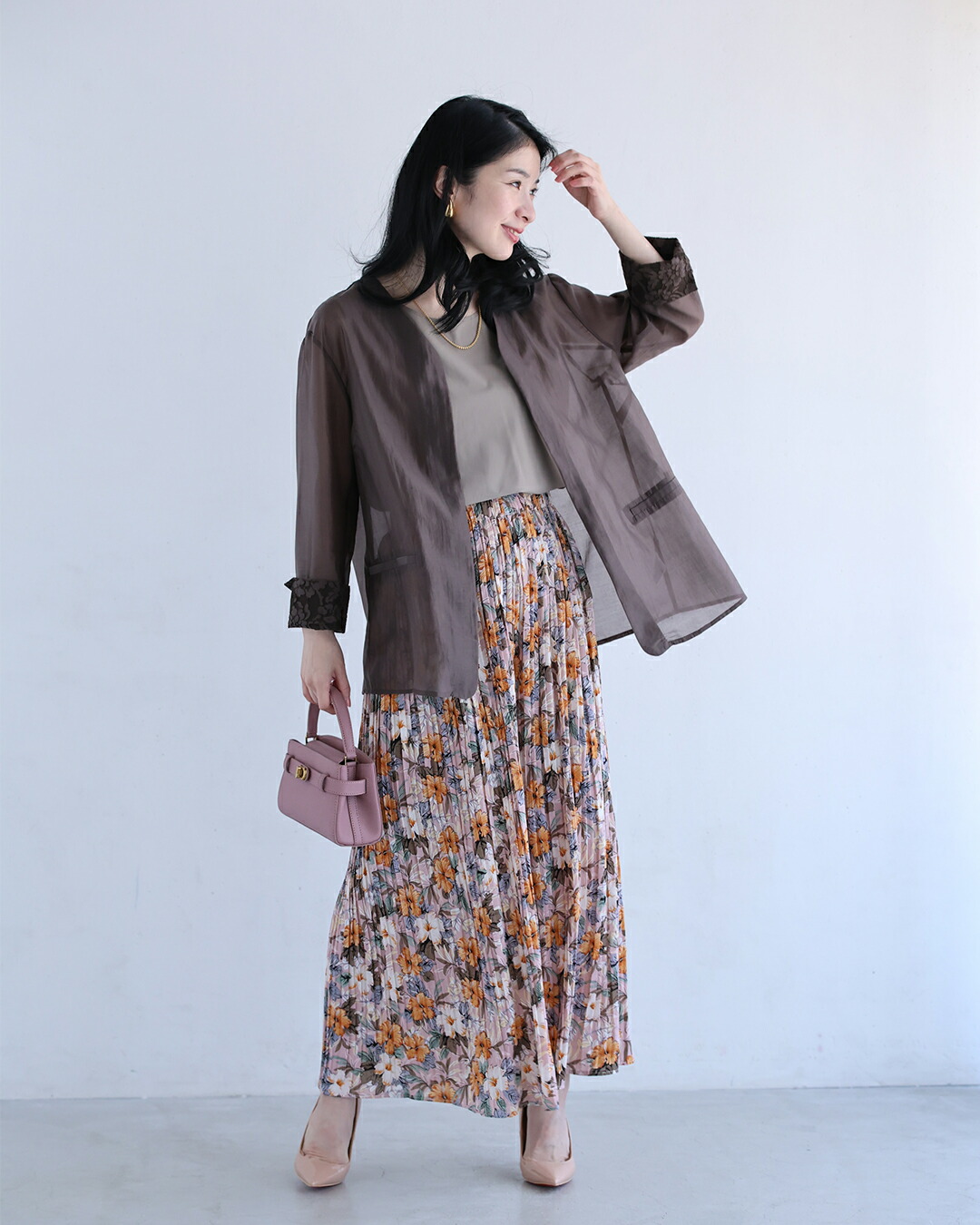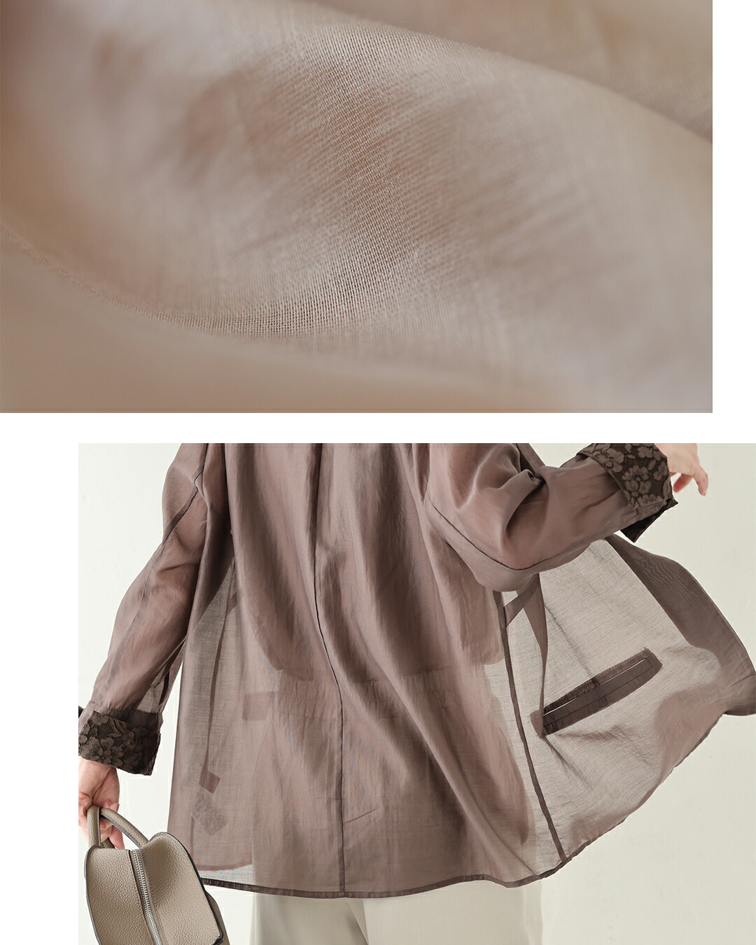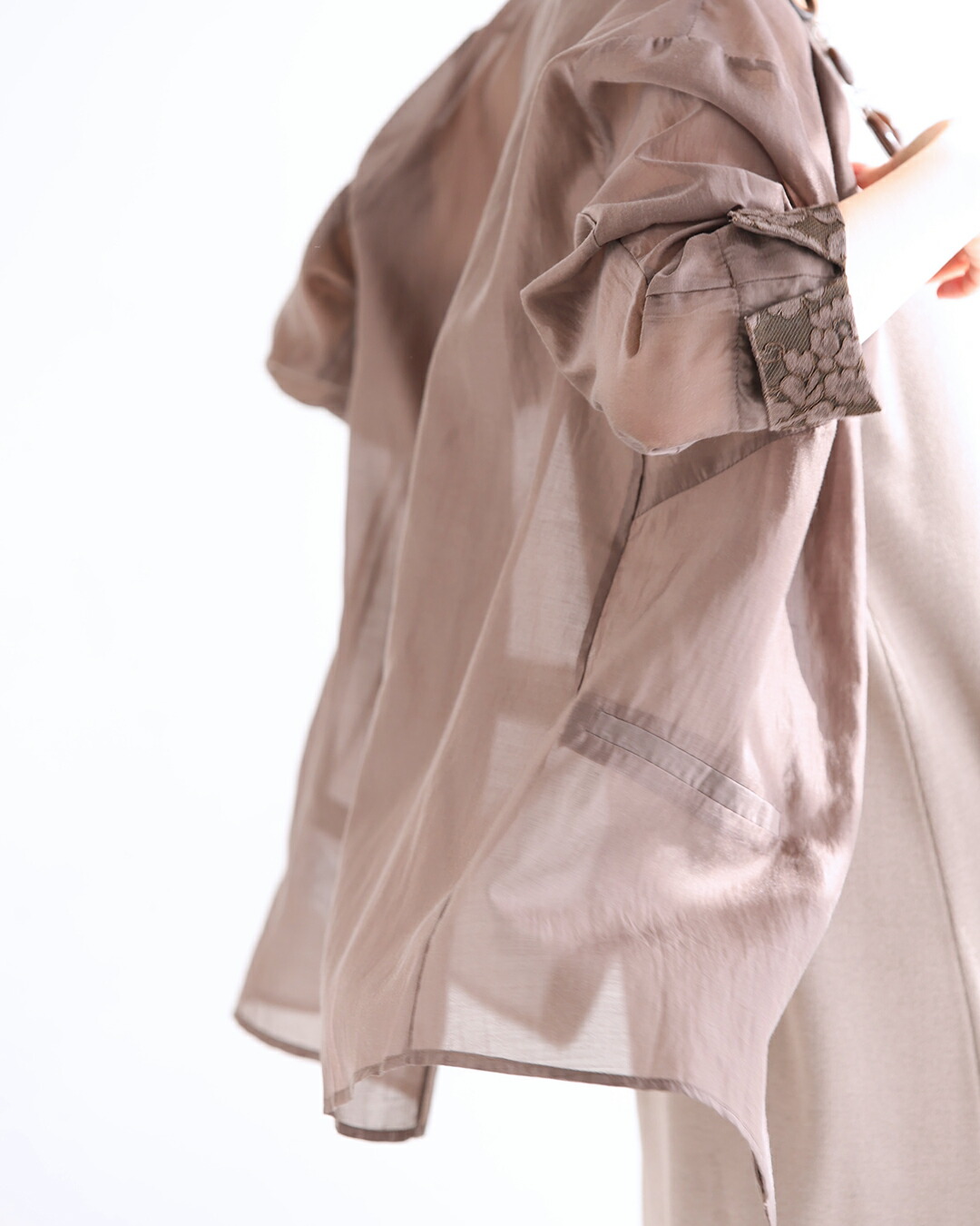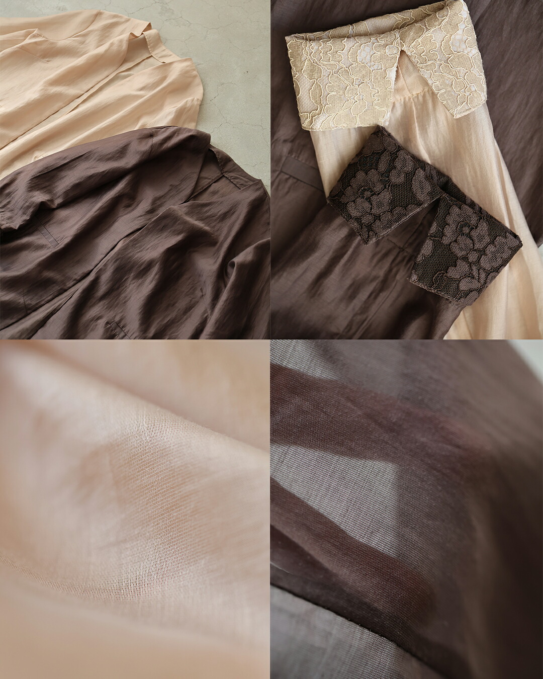 w61620ps 新作 新着 再入荷 CAWAII FRENCHPAVE フレンチパヴェ エレガント ベーシック カジュアル 可愛い かわいい カワイイ おしゃれ オシャレ お洒落 個性 個性的 定番 ベーシック 大人かわいい 大人可愛い 上品 女性らしい デザイン スタンダード ナチュラル きれいめ キレイめ シンプル フェミニン レディース レディースファッション 大人 ママ ミセス 30代 40代 50代 60代 軽ジャケ 薄くて軽くて、きちんと見え アウター 羽織り ブラウン 茶 ベージュ S M L XL 標準サイズ サイズ展開 日常使い ヘビロテ おでかけ 軽やか UVカット 紫外線カット UV対策 紫外線対策 日焼け対策 冷房対策 シアー 光沢感 抜け感