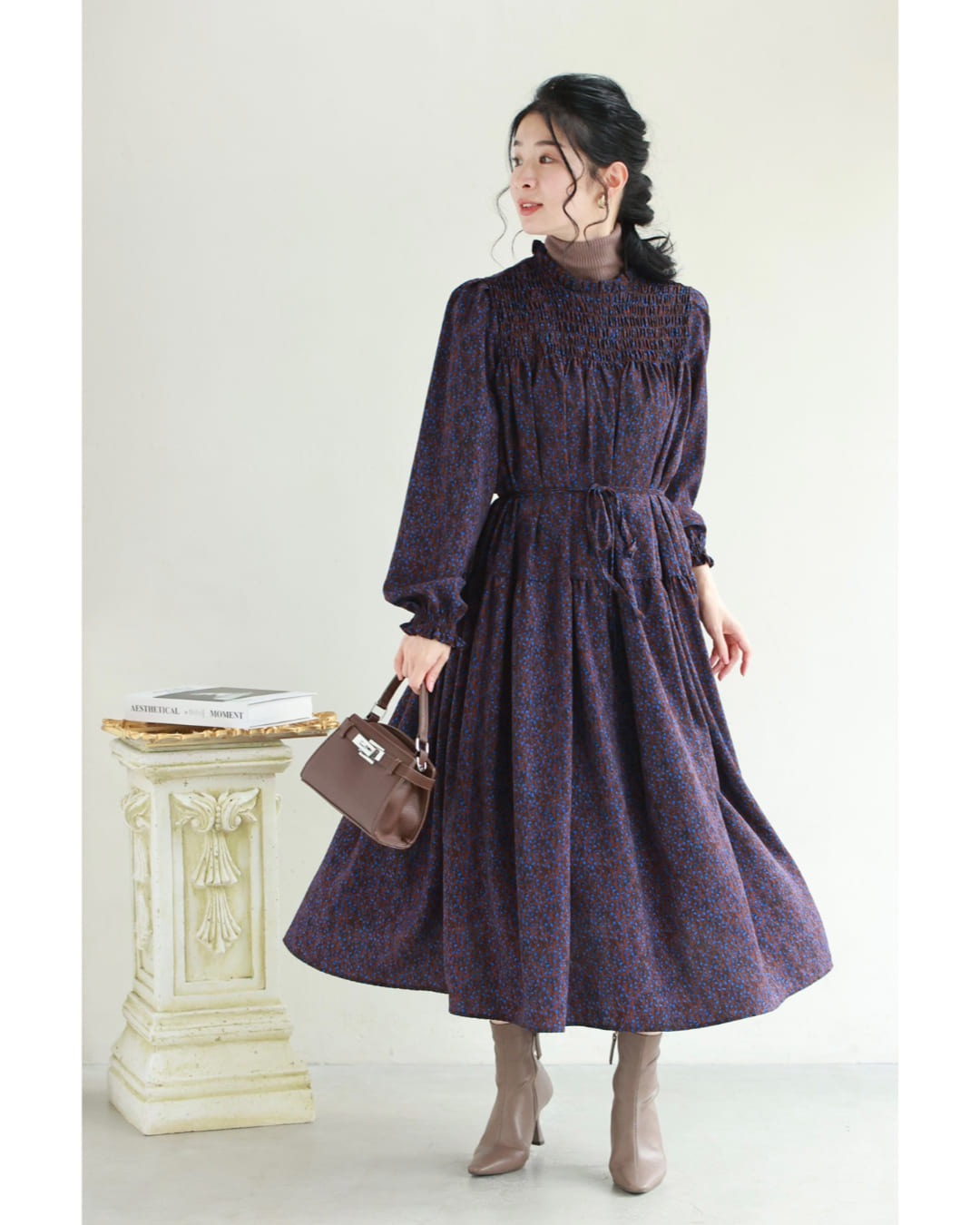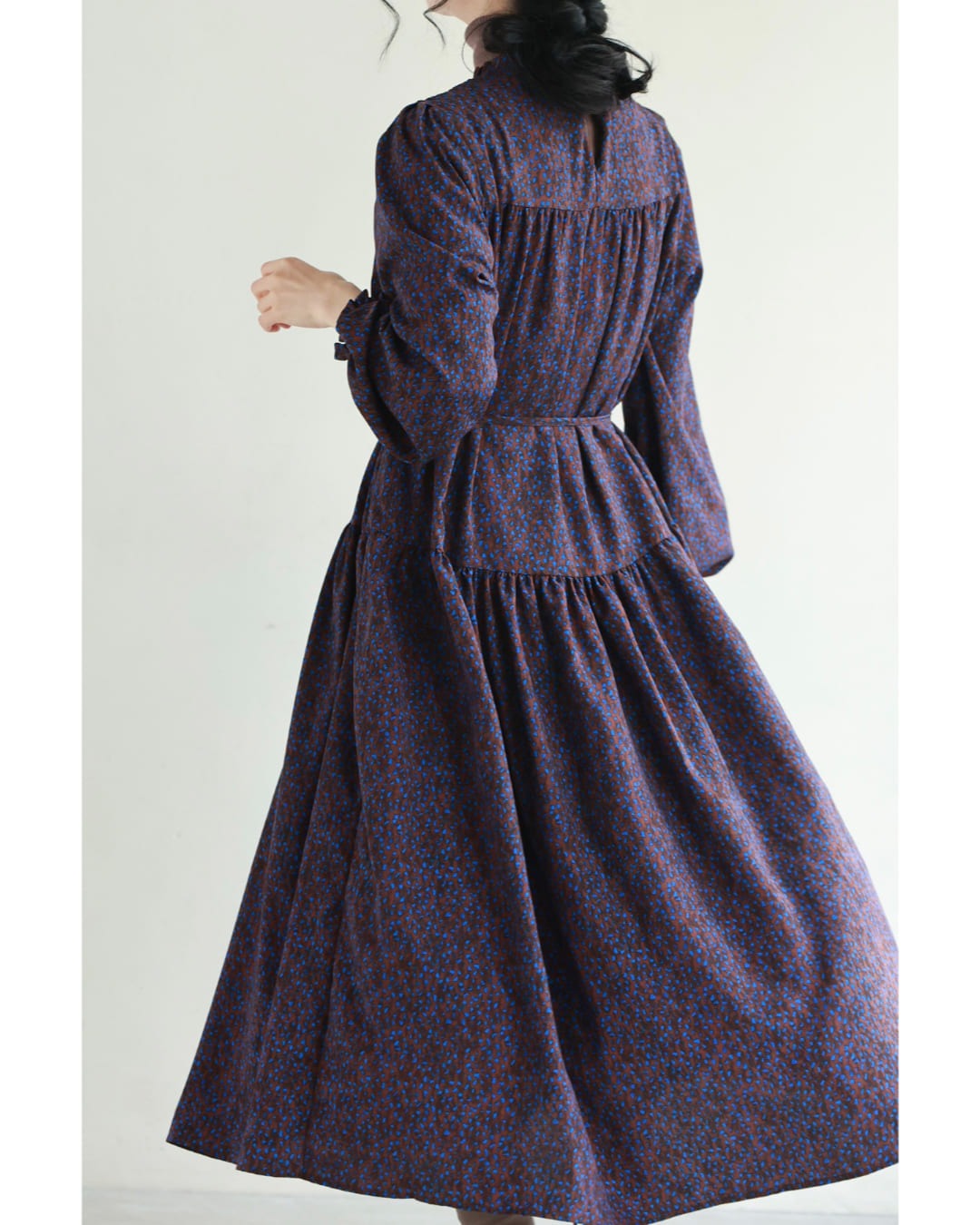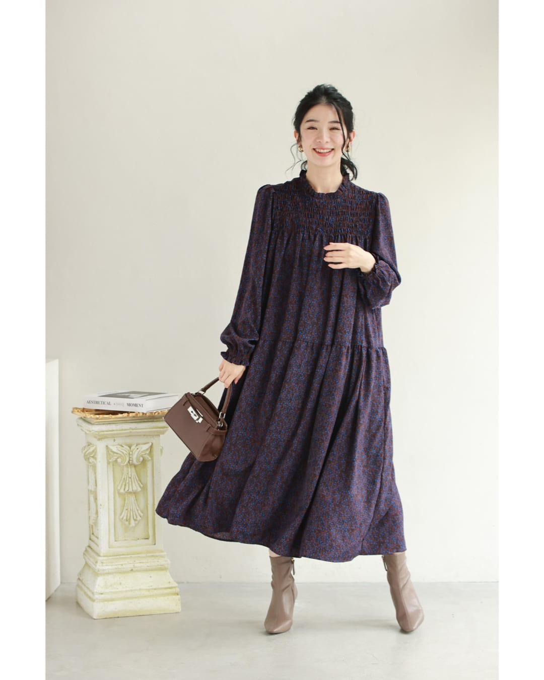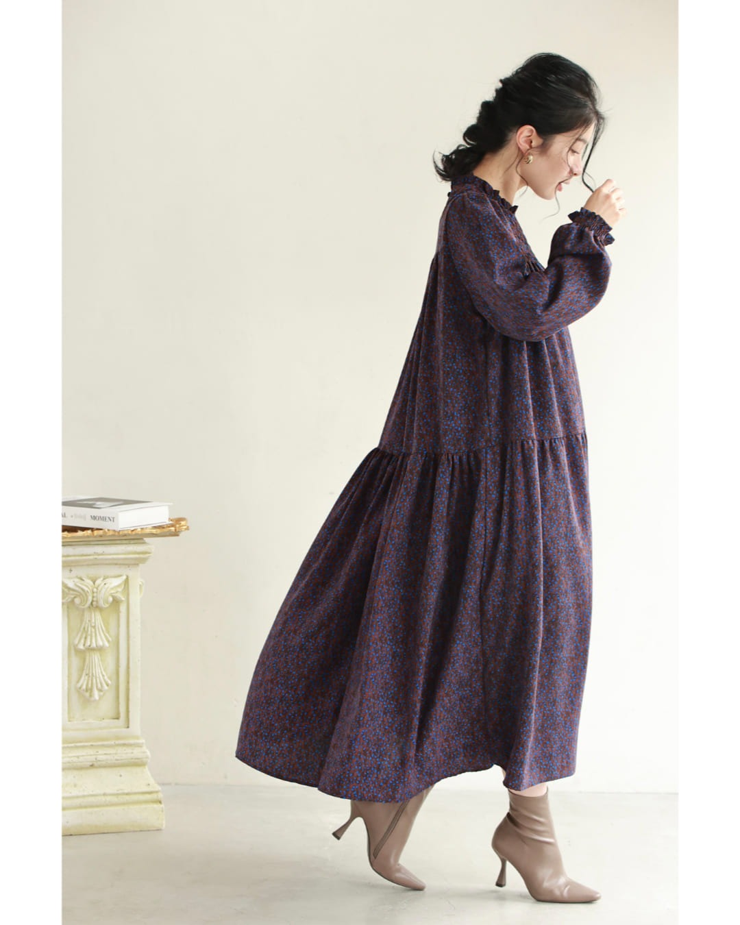 w61632ps 新作 新着 再入荷 CAWAII FRENCHPAVE フレンチパヴェ エレガント ベーシック カジュアル 可愛い かわいい カワイイ おしゃれ オシャレ お洒落 個性 個性的 定番 ベーシック 大人かわいい 大人可愛い 上品 女性らしい デザイン スタンダード ナチュラル きれいめ キレイめ シンプル フェミニン レディース レディースファッション 大人 ママ ミセス 30代 40代 50代 60代 青い花びら舞うようなアート柄ミディアムワンピース 紐リボン付き 長袖 S M L XL ワンサイズ フリー 小さめ 小さい 低身長 痩せ ほっそり 小柄 細身 標準サイズ 大きめシルエット 大きい ビッグシルエット ゆったり F サイズ自由 春 秋 冬 秋服 秋物 冬服 冬物 体型カバー パープル 紫 柄 総柄 普段着 日常使い デイリー おでかけ 旅行 女子会 デート 買い物 フレア ティアード シャーリング