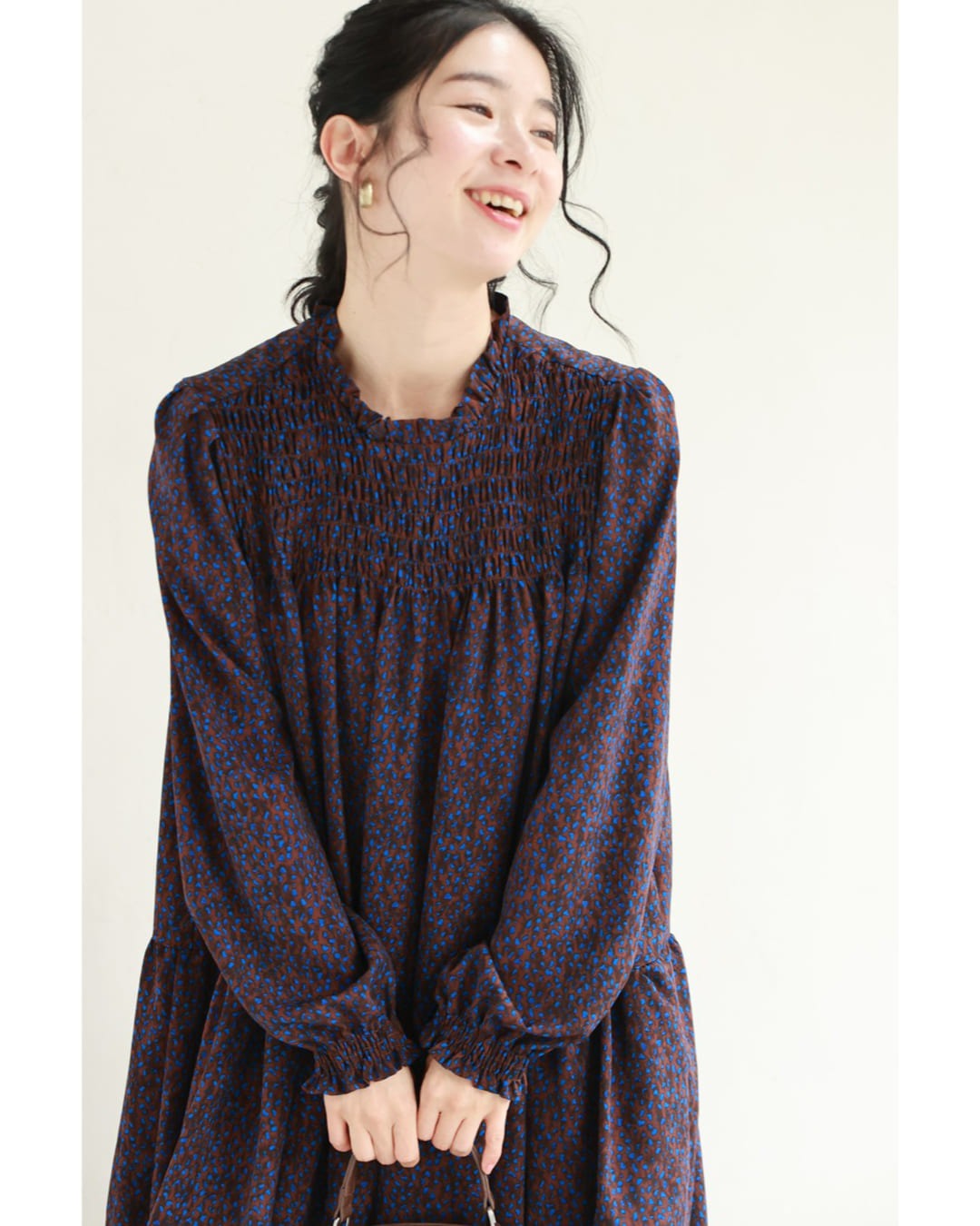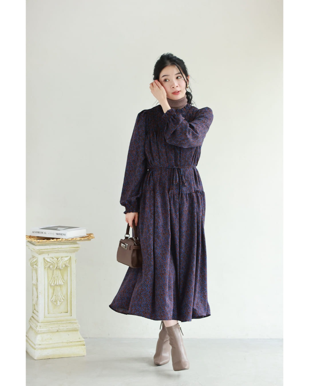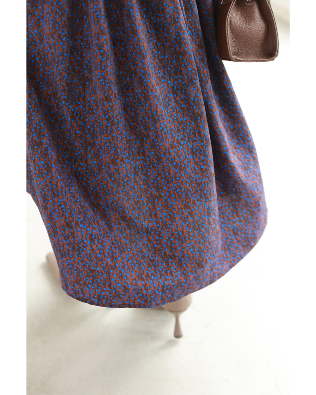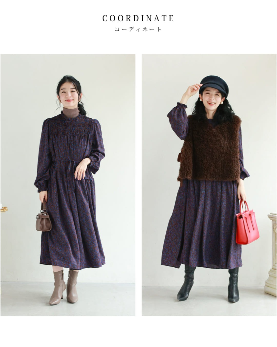w61632ps 新作 新着 再入荷 CAWAII FRENCHPAVE フレンチパヴェ エレガント ベーシック カジュアル 可愛い かわいい カワイイ おしゃれ オシャレ お洒落 個性 個性的 定番 ベーシック 大人かわいい 大人可愛い 上品 女性らしい デザイン スタンダード ナチュラル きれいめ キレイめ シンプル フェミニン レディース レディースファッション 大人 ママ ミセス 30代 40代 50代 60代 青い花びら舞うようなアート柄ミディアムワンピース 紐リボン付き 長袖 S M L XL ワンサイズ フリー 小さめ 小さい 低身長 痩せ ほっそり 小柄 細身 標準サイズ 大きめシルエット 大きい ビッグシルエット ゆったり F サイズ自由 春 秋 冬 秋服 秋物 冬服 冬物 体型カバー パープル 紫 柄 総柄 普段着 日常使い デイリー おでかけ 旅行 女子会 デート 買い物 フレア ティアード シャーリング