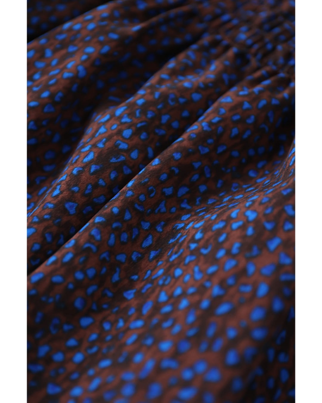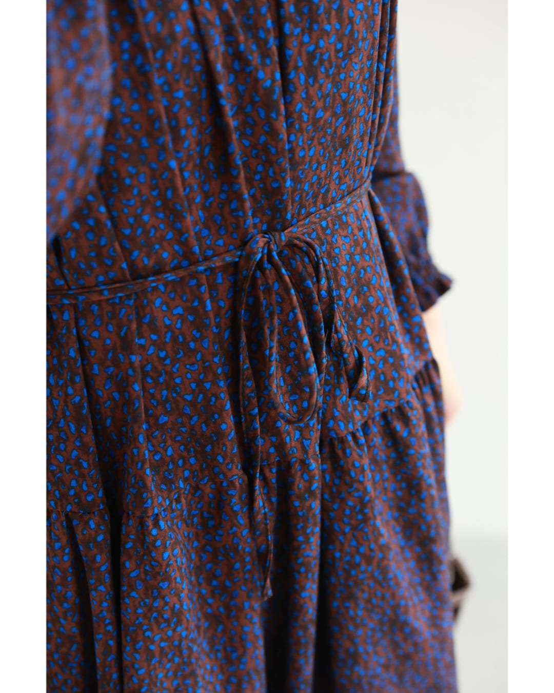 Sから2L対応 青い花びら舞うようなアート柄ミディアムワンピース(紐ベルト付き)