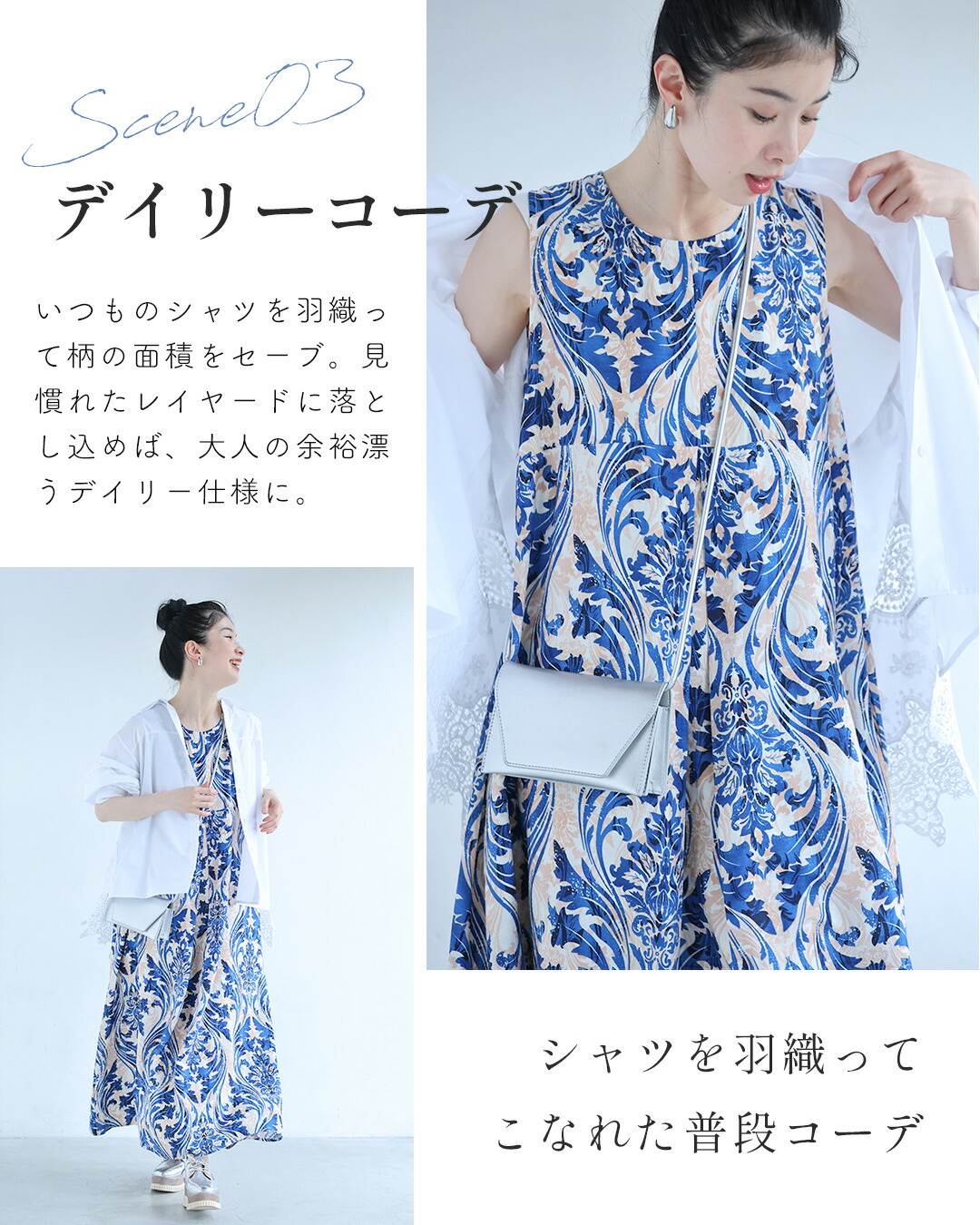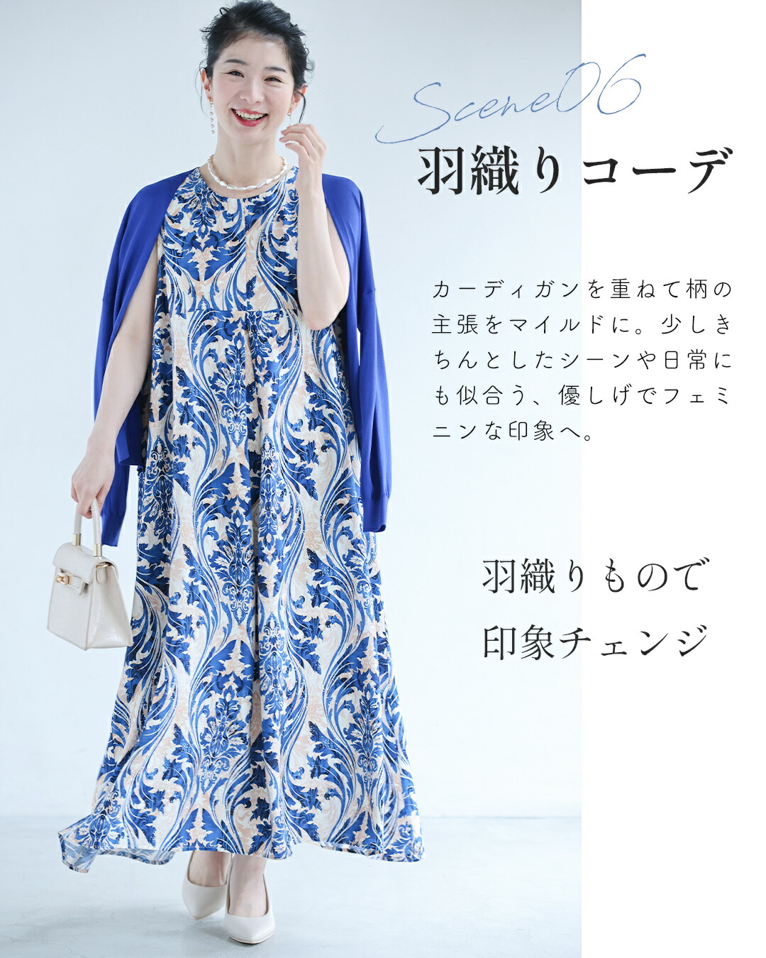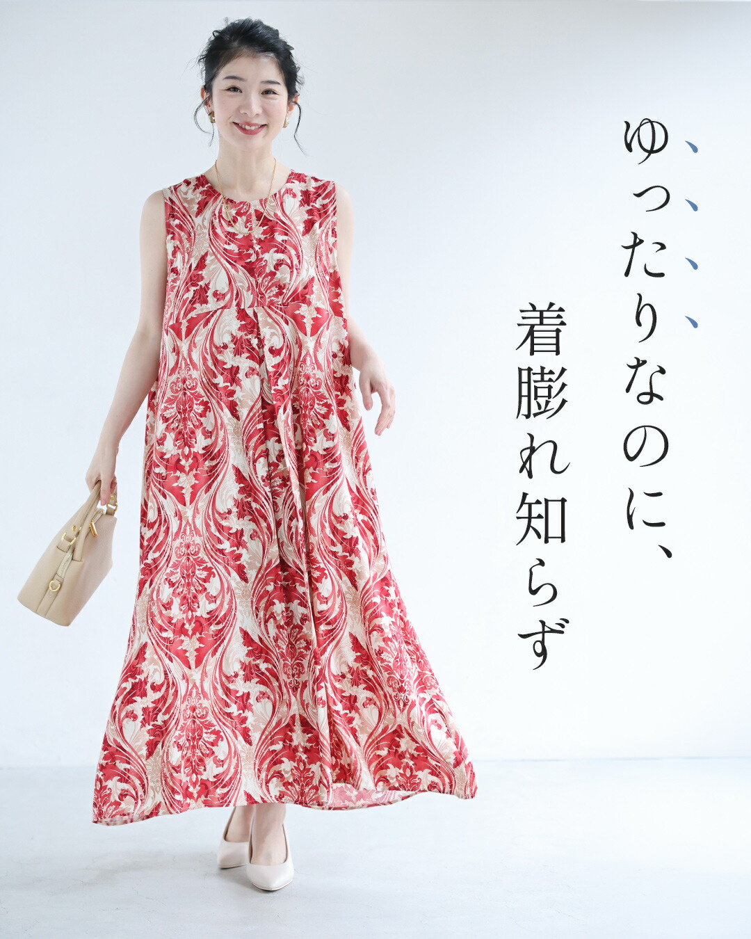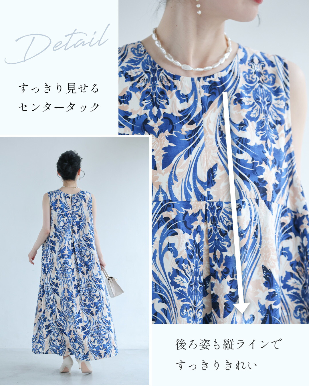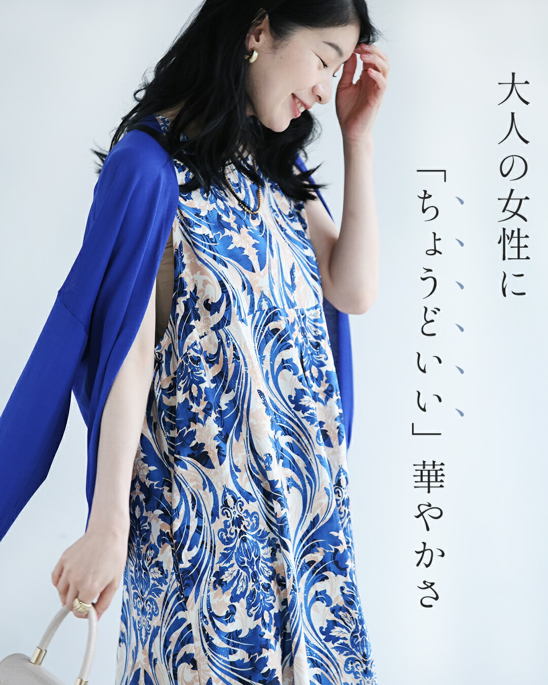 w61696ps 新作 新着 再入荷 CAWAII FRENCHPAVE フレンチパヴェ エレガント ベーシック カジュアル 可愛い かわいい カワイイ おしゃれ オシャレ お洒落 個性 個性的 定番 ベーシック 大人かわいい 大人可愛い 上品 女性らしい デザイン スタンダード ナチュラル きれいめ キレイめ シンプル フェミニン レディース レディースファッション 大人 ママ ミセス 30代 40代 50代 60代 一枚で華やぐ ダマスク柄ワンピース ノースリ 袖なし S M L XL 3L ワンサイズ フリー 小さめ 小さい 低身長 痩せ ほっそり 小柄 細身 標準サイズ 大きめシルエット 大きい ビッグシルエット ゆったり F サイズ自由 薄手 涼感性 涼しい ずずしい 春 夏 春服 春物 夏服 夏物 トレンド 大人女子 体型カバー 楽 ブルー レッド 赤 柄 総柄 日常使い デイリー おでかけ リゾート 旅行