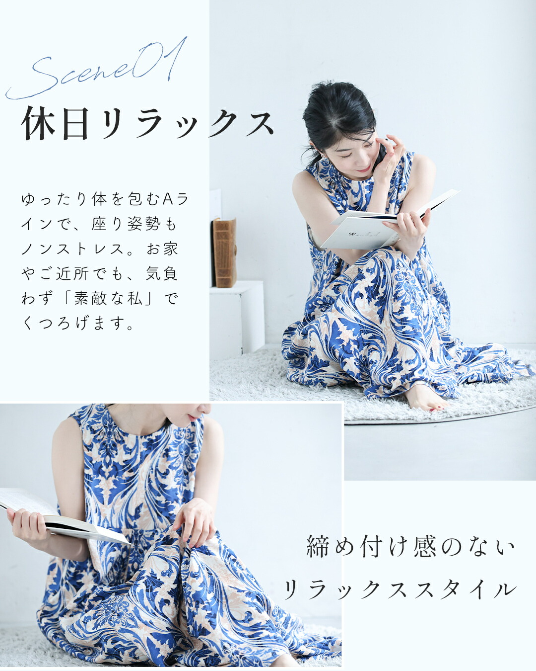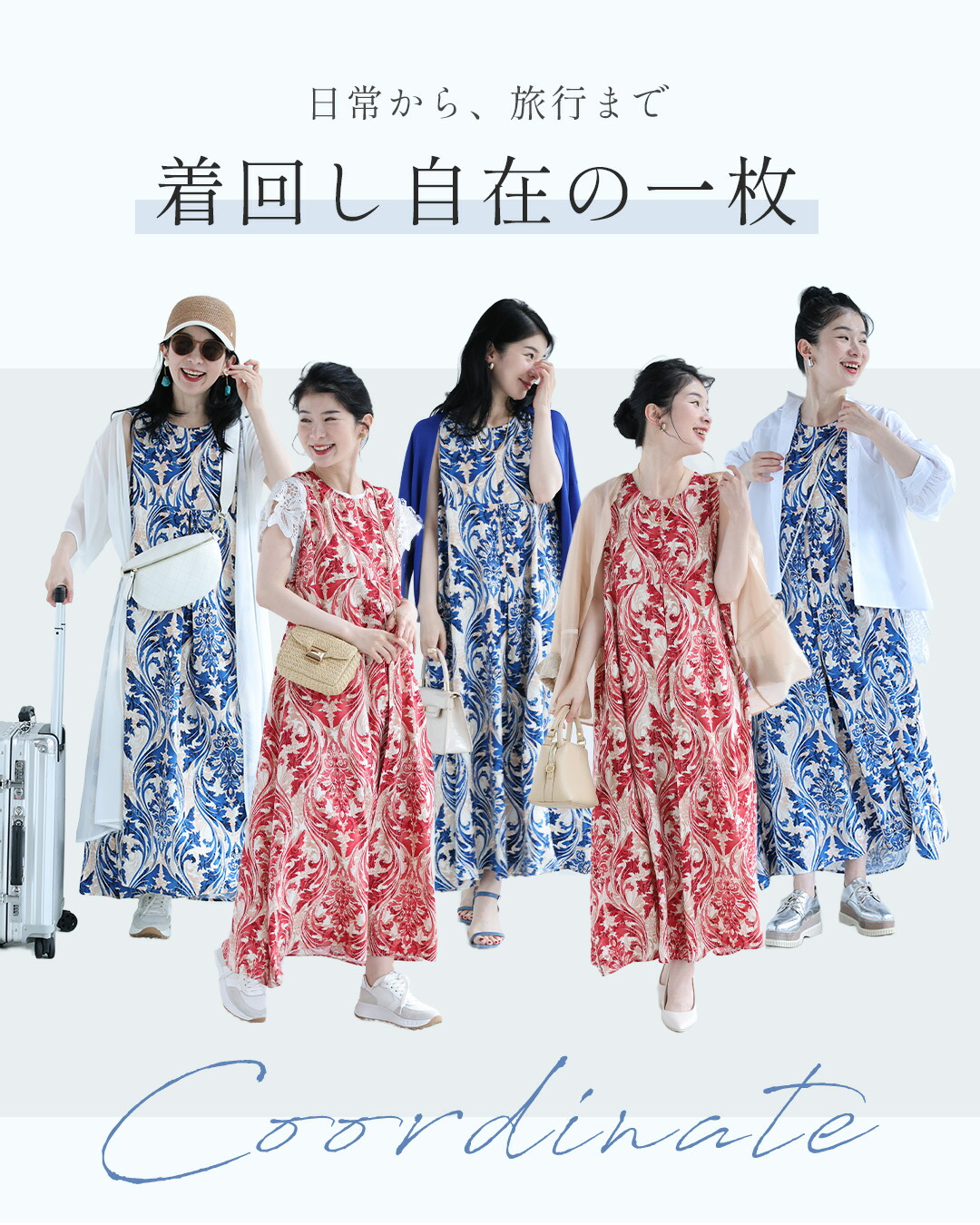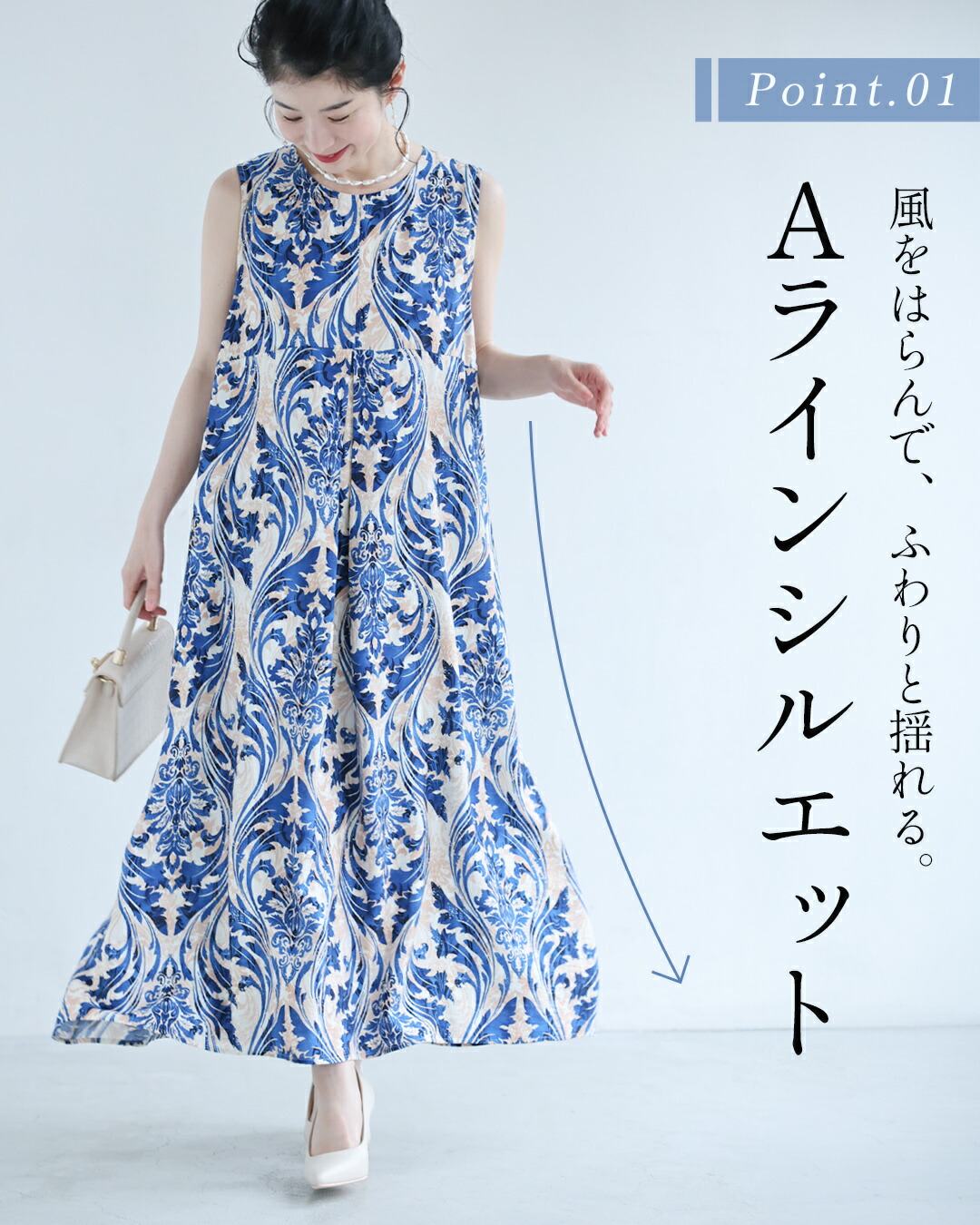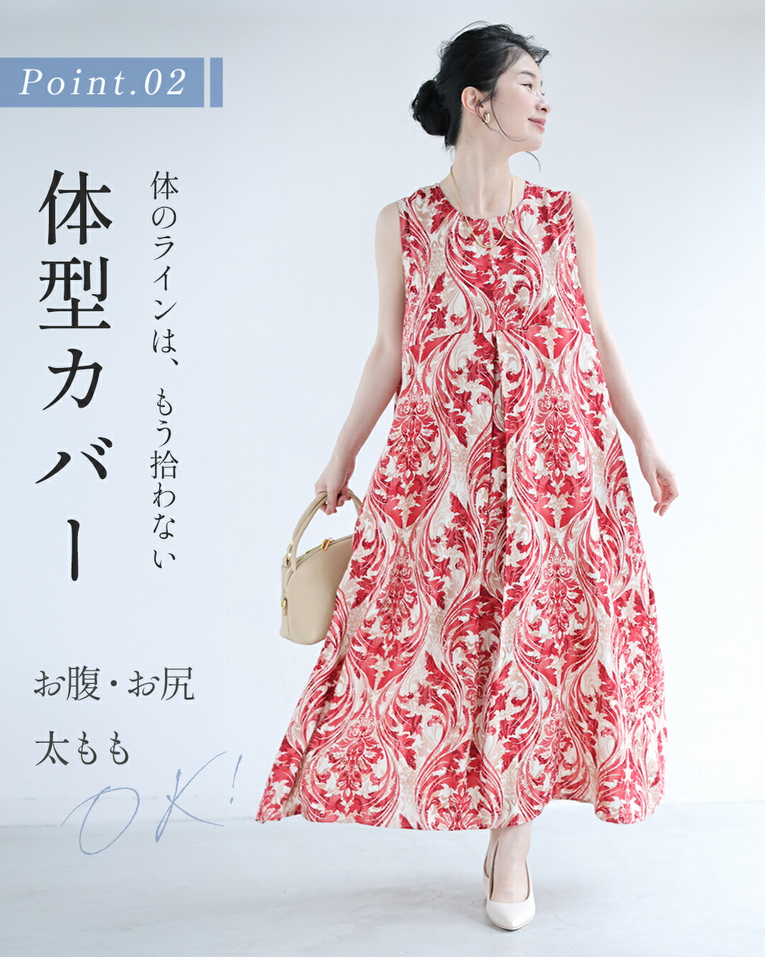 w61696ps 新作 新着 再入荷 CAWAII FRENCHPAVE フレンチパヴェ エレガント ベーシック カジュアル 可愛い かわいい カワイイ おしゃれ オシャレ お洒落 個性 個性的 定番 ベーシック 大人かわいい 大人可愛い 上品 女性らしい デザイン スタンダード ナチュラル きれいめ キレイめ シンプル フェミニン レディース レディースファッション 大人 ママ ミセス 30代 40代 50代 60代 一枚で華やぐ ダマスク柄ワンピース ノースリ 袖なし S M L XL 3L ワンサイズ フリー 小さめ 小さい 低身長 痩せ ほっそり 小柄 細身 標準サイズ 大きめシルエット 大きい ビッグシルエット ゆったり F サイズ自由 薄手 涼感性 涼しい ずずしい 春 夏 春服 春物 夏服 夏物 トレンド 大人女子 体型カバー 楽 ブルー レッド 赤 柄 総柄 日常使い デイリー おでかけ リゾート 旅行