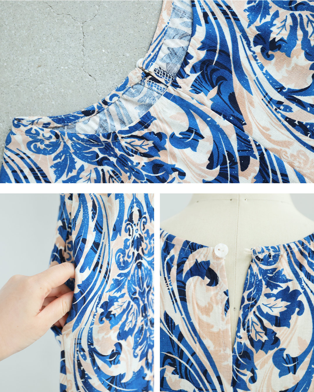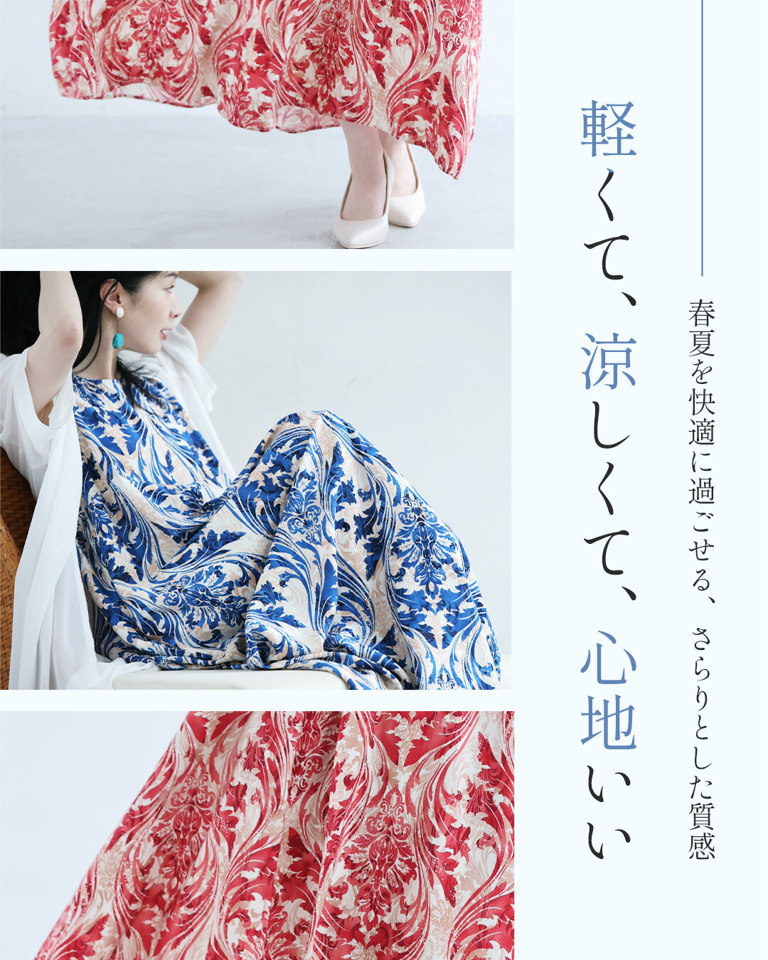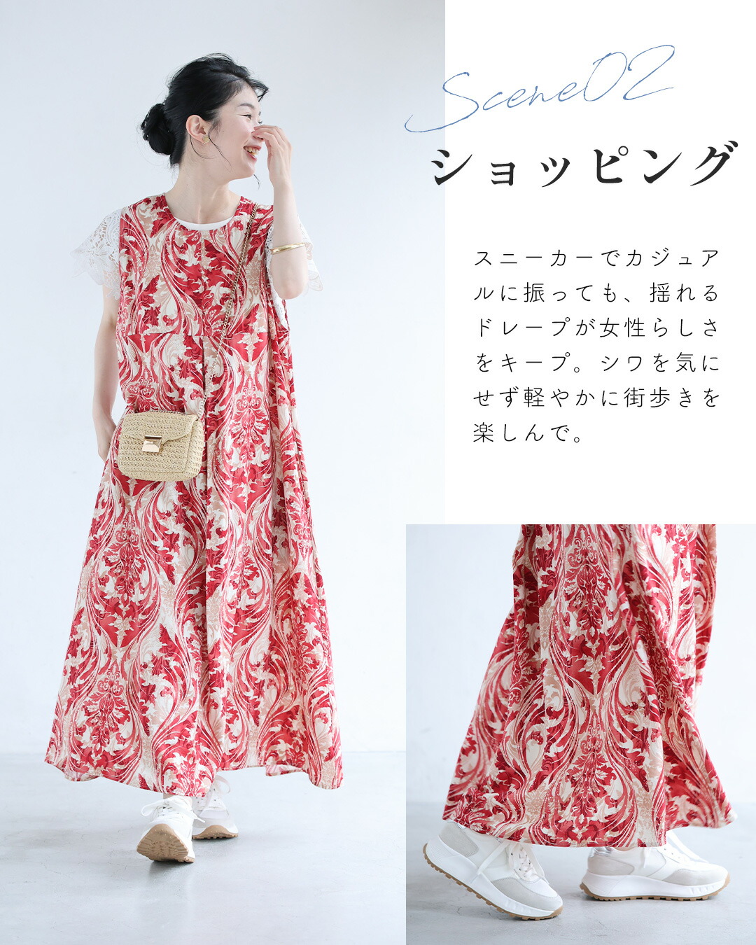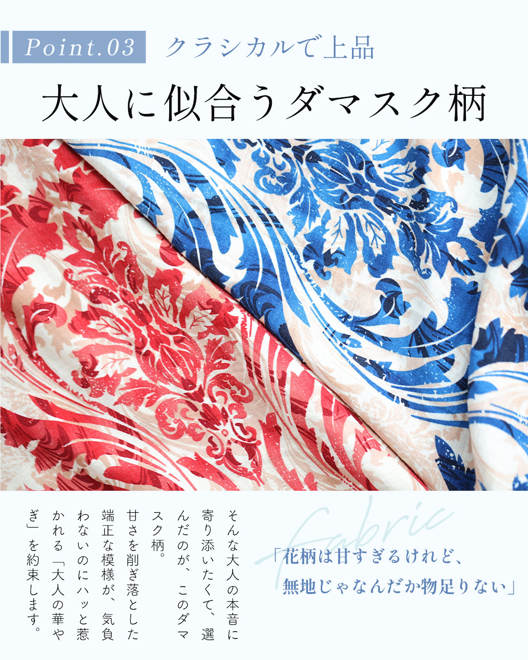 Sから3L対応 一枚で華やぐ ダマスク柄ワンピース