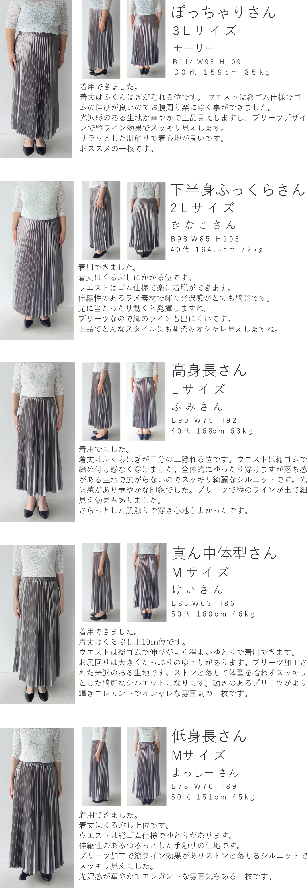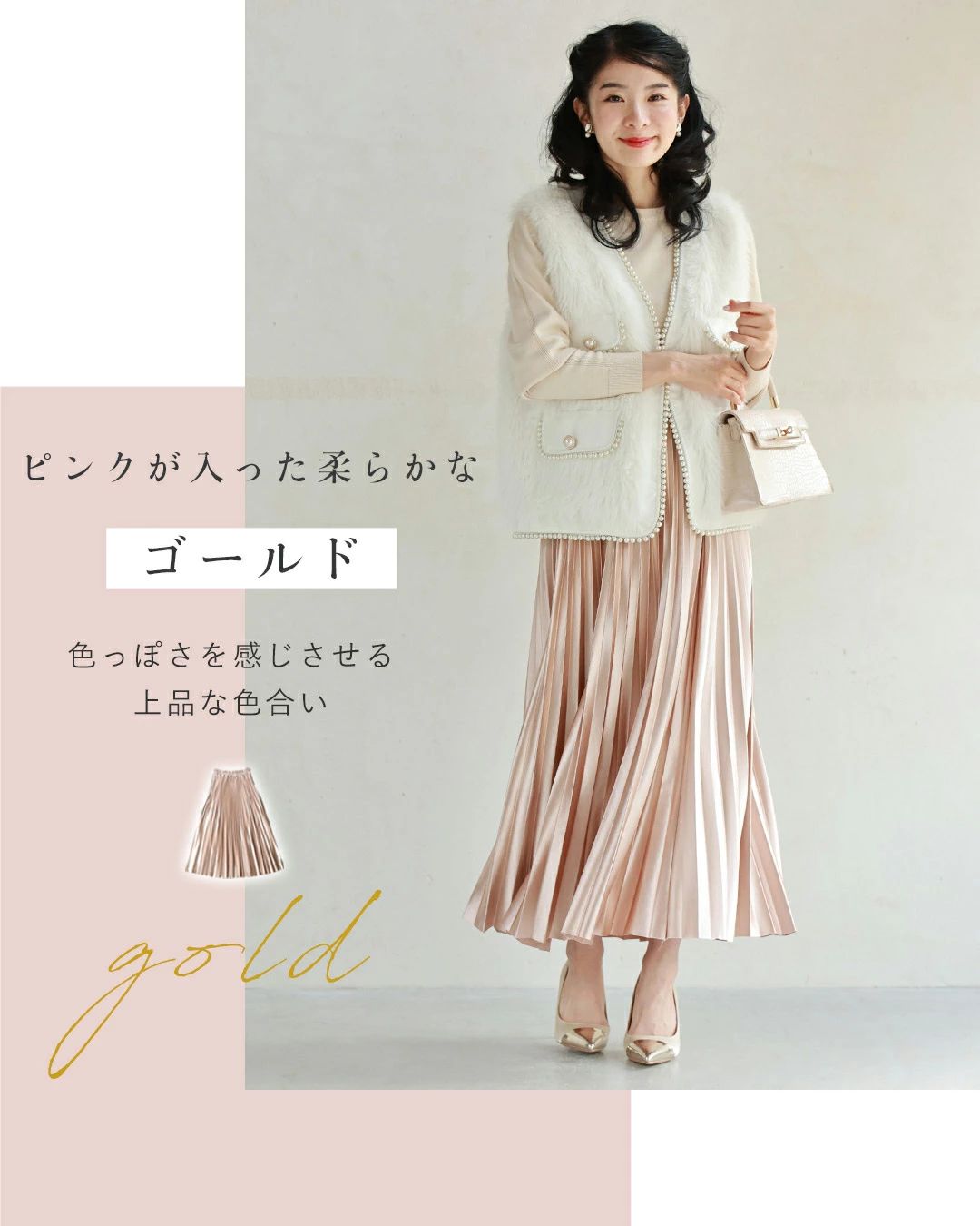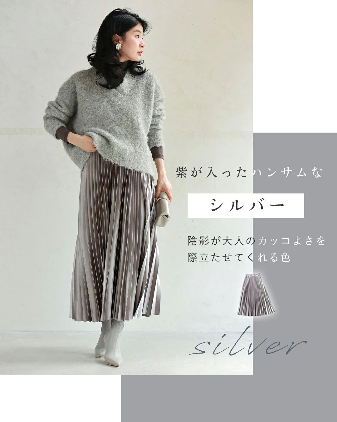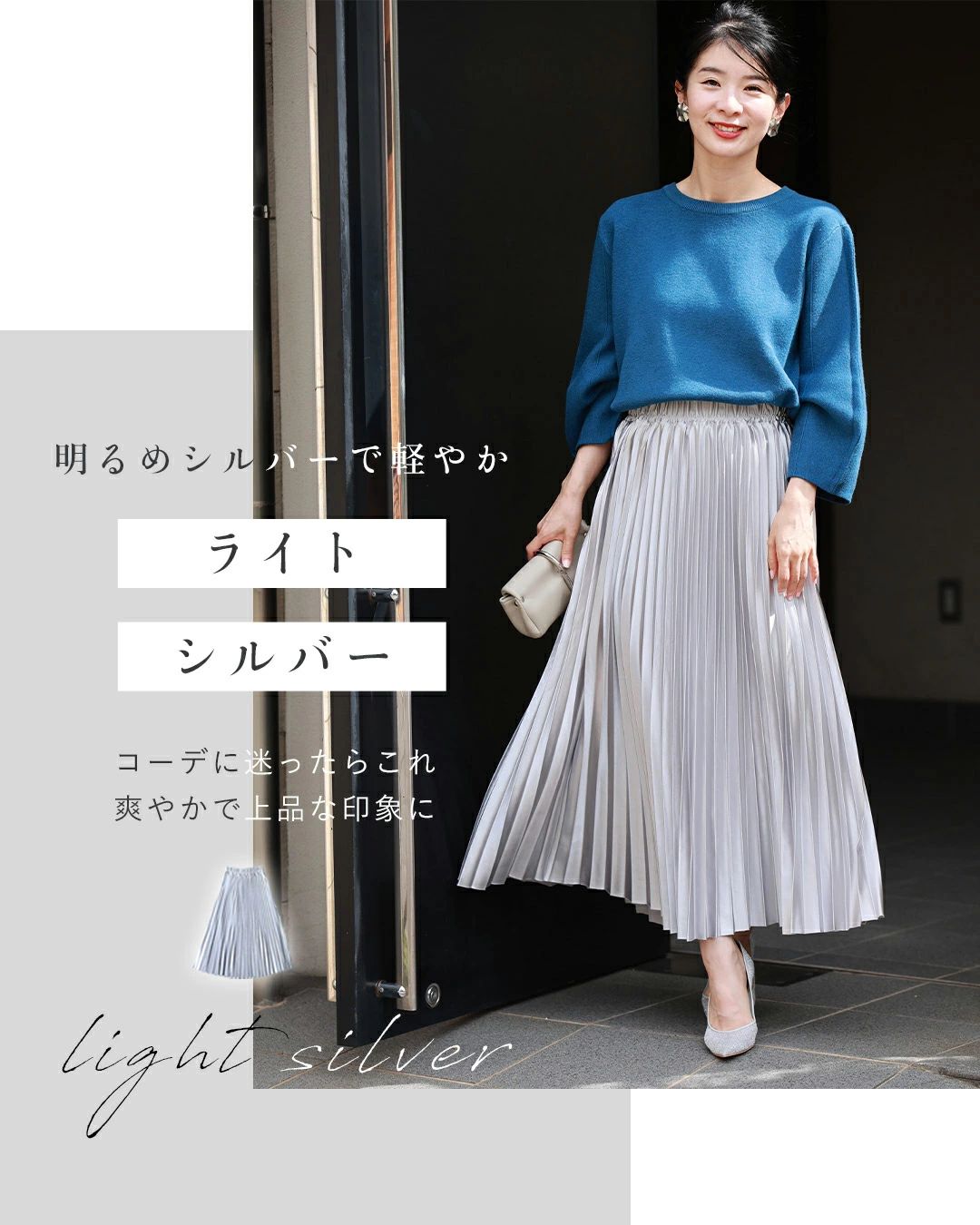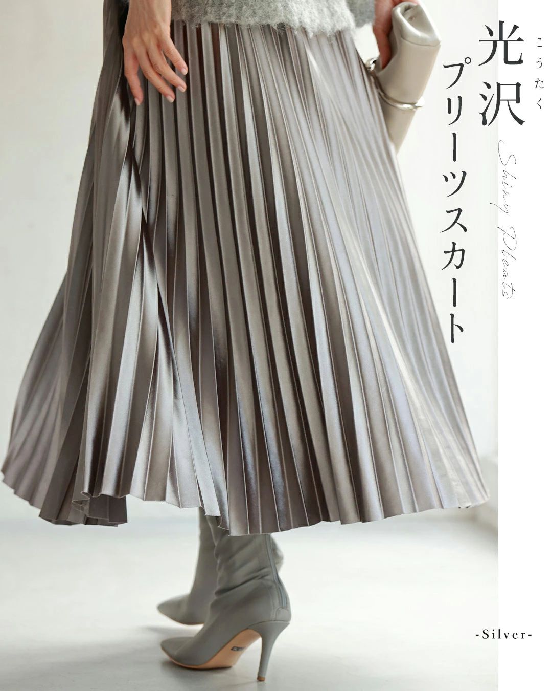 wkj00011 プリーツスカート 新作 新着 再入荷 CAWAII FRENCHPAVE フレンチパヴェ エレガント ベーシック カジュアル 可愛い かわいい カワイイ おしゃれ オシャレ お洒落 個性 個性的 定番 ベーシック 大人かわいい 大人可愛い 上品 女性らしい デザイン スタンダード ナチュラル きれいめ キレイめ シンプル フェミニン レディース レディースファッション 大人 ママ ミセス 30代 40代 50代 60代 スカート 総ゴム プリーツ ミドル ミディアム シルバー ゴールド 光沢 ウエストフリー S M L 2L LL XL 3L LLL XXL フリーサイズ フリー 小さめ 小さめサイズ 小さい 小さいサイズ 低身長 痩せ ほっそり 小柄 細身 標準サイズ 大きめシルエット 大きい 大きめ ビッグシルエット ぽっちゃり F サイズ自由 日常着 普段着 日常使い おでかけ 春 夏 夏服 夏物 春服 春物