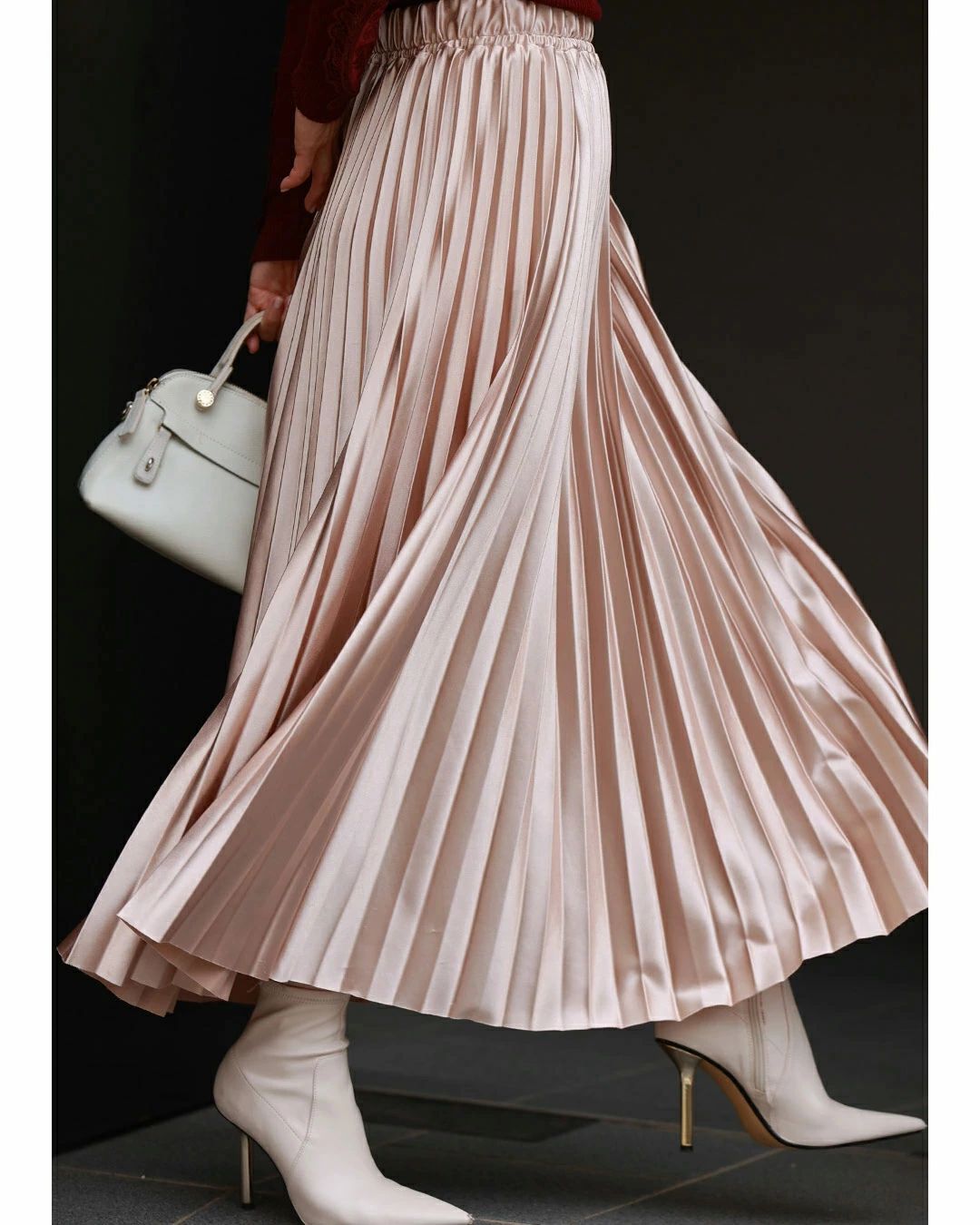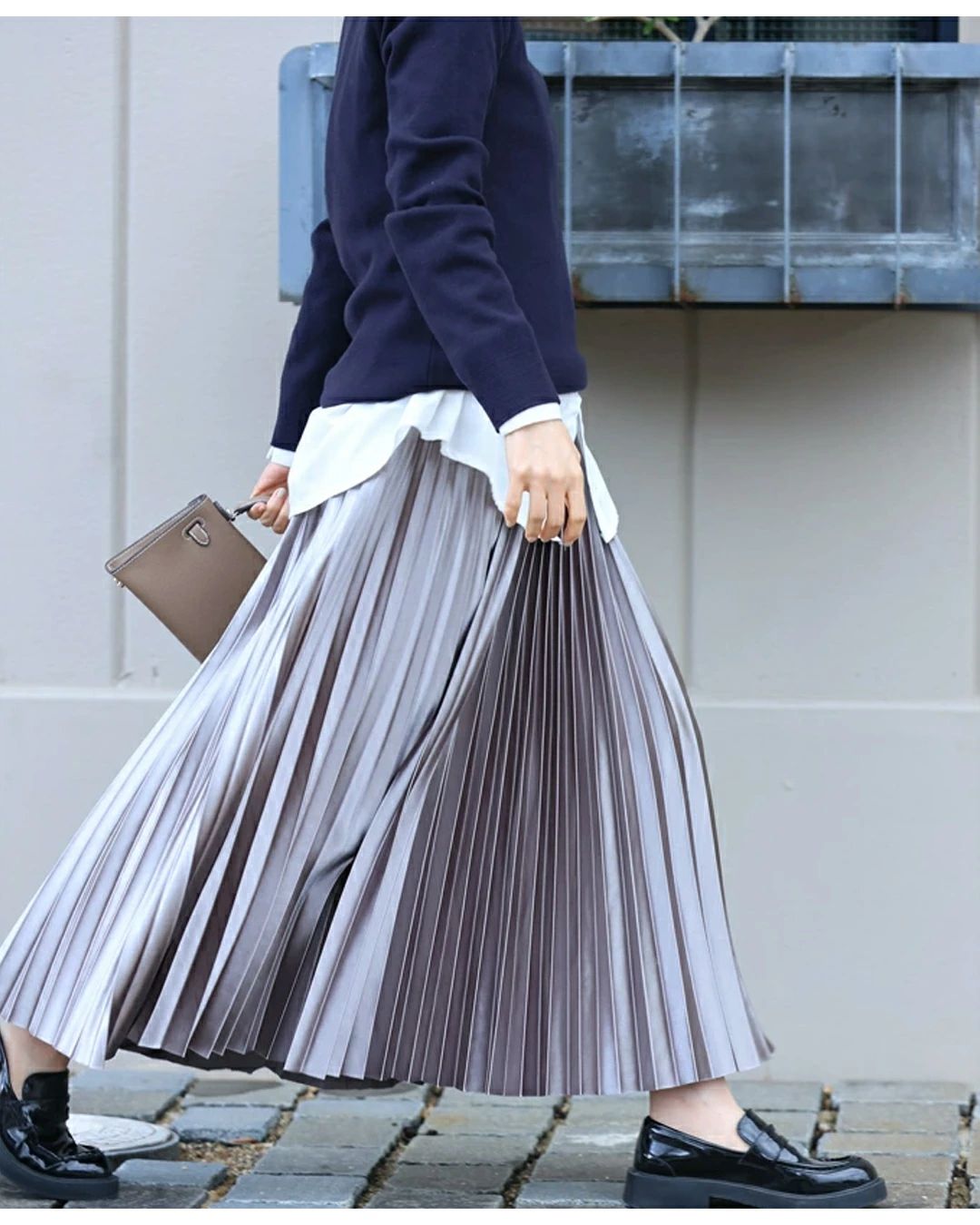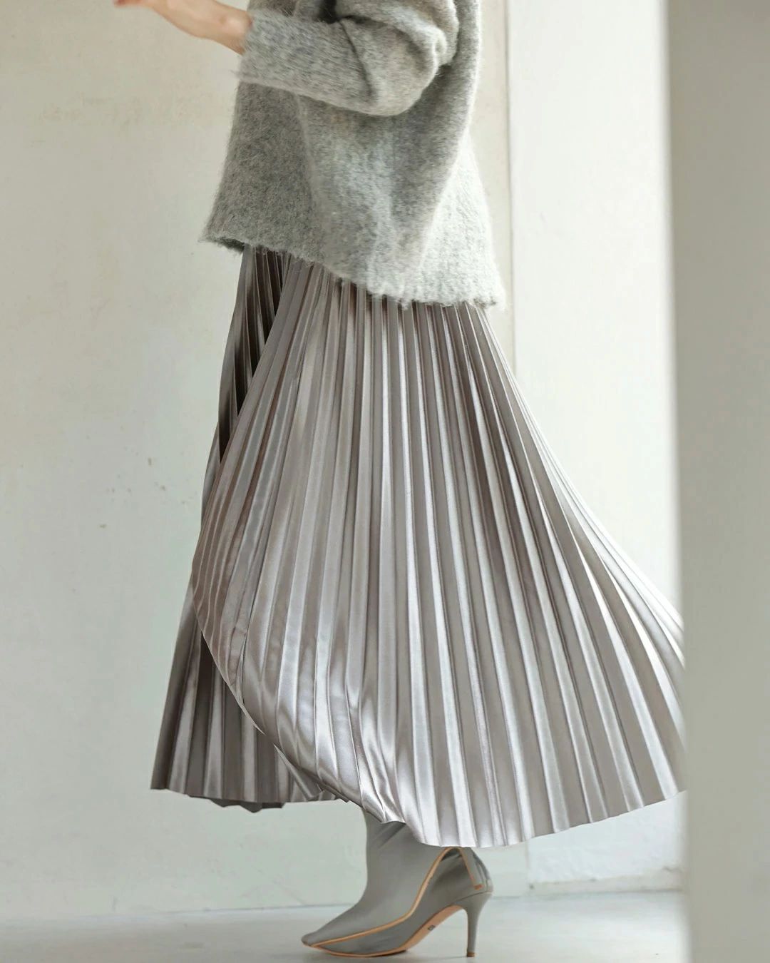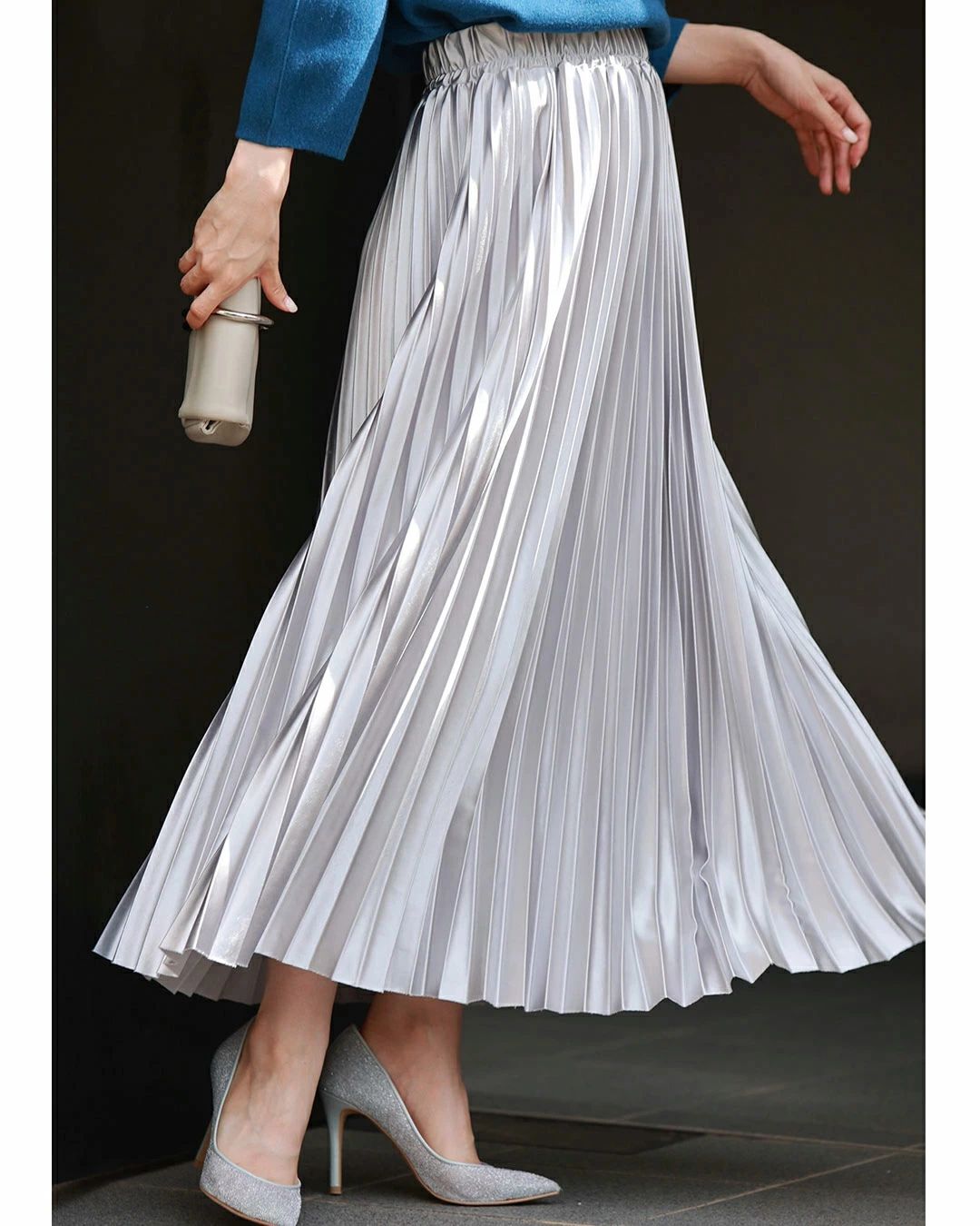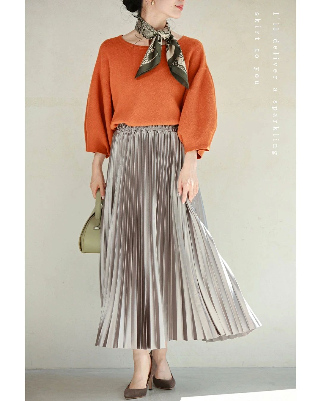wkj00011 プリーツスカート 新作 新着 再入荷 CAWAII FRENCHPAVE フレンチパヴェ エレガント ベーシック カジュアル 可愛い かわいい カワイイ おしゃれ オシャレ お洒落 個性 個性的 定番 ベーシック 大人かわいい 大人可愛い 上品 女性らしい デザイン スタンダード ナチュラル きれいめ キレイめ シンプル フェミニン レディース レディースファッション 大人 ママ ミセス 30代 40代 50代 60代 スカート 総ゴム プリーツ ミドル ミディアム シルバー ゴールド 光沢 ウエストフリー S M L 2L LL XL 3L LLL XXL フリーサイズ フリー 小さめ 小さめサイズ 小さい 小さいサイズ 低身長 痩せ ほっそり 小柄 細身 標準サイズ 大きめシルエット 大きい 大きめ ビッグシルエット ぽっちゃり F サイズ自由 日常着 普段着 日常使い おでかけ 春 夏 夏服 夏物 春服 春物