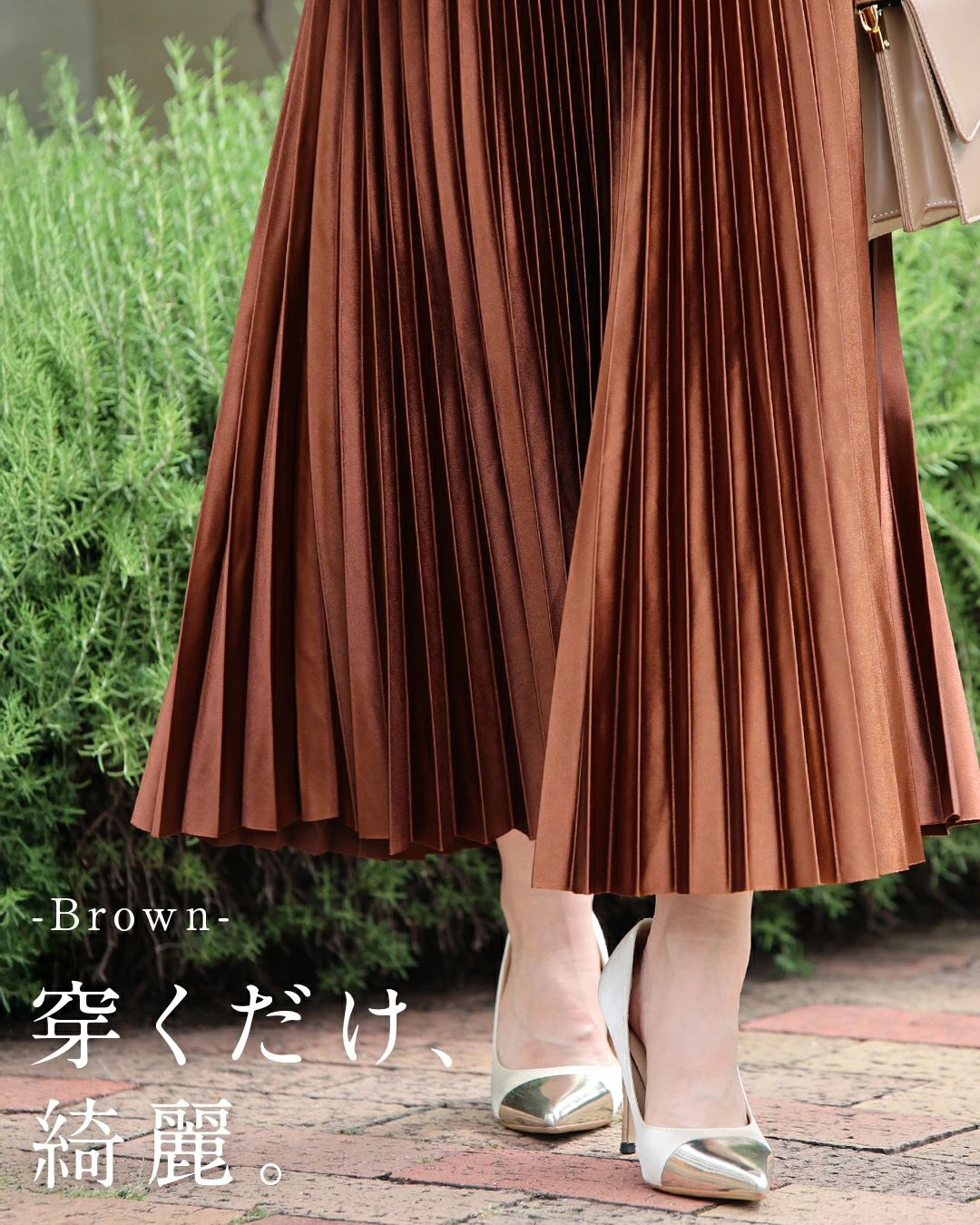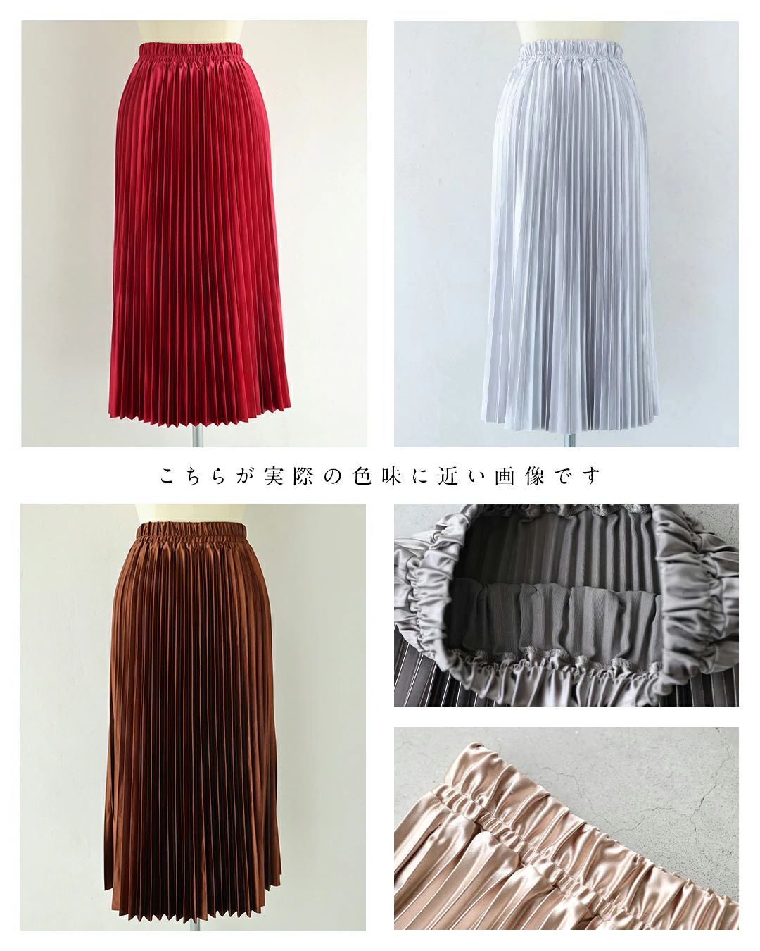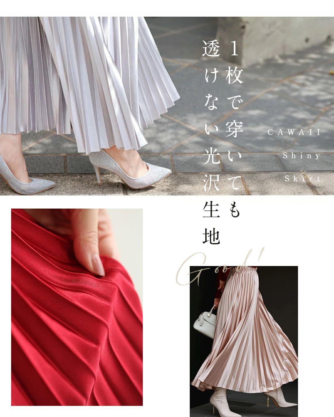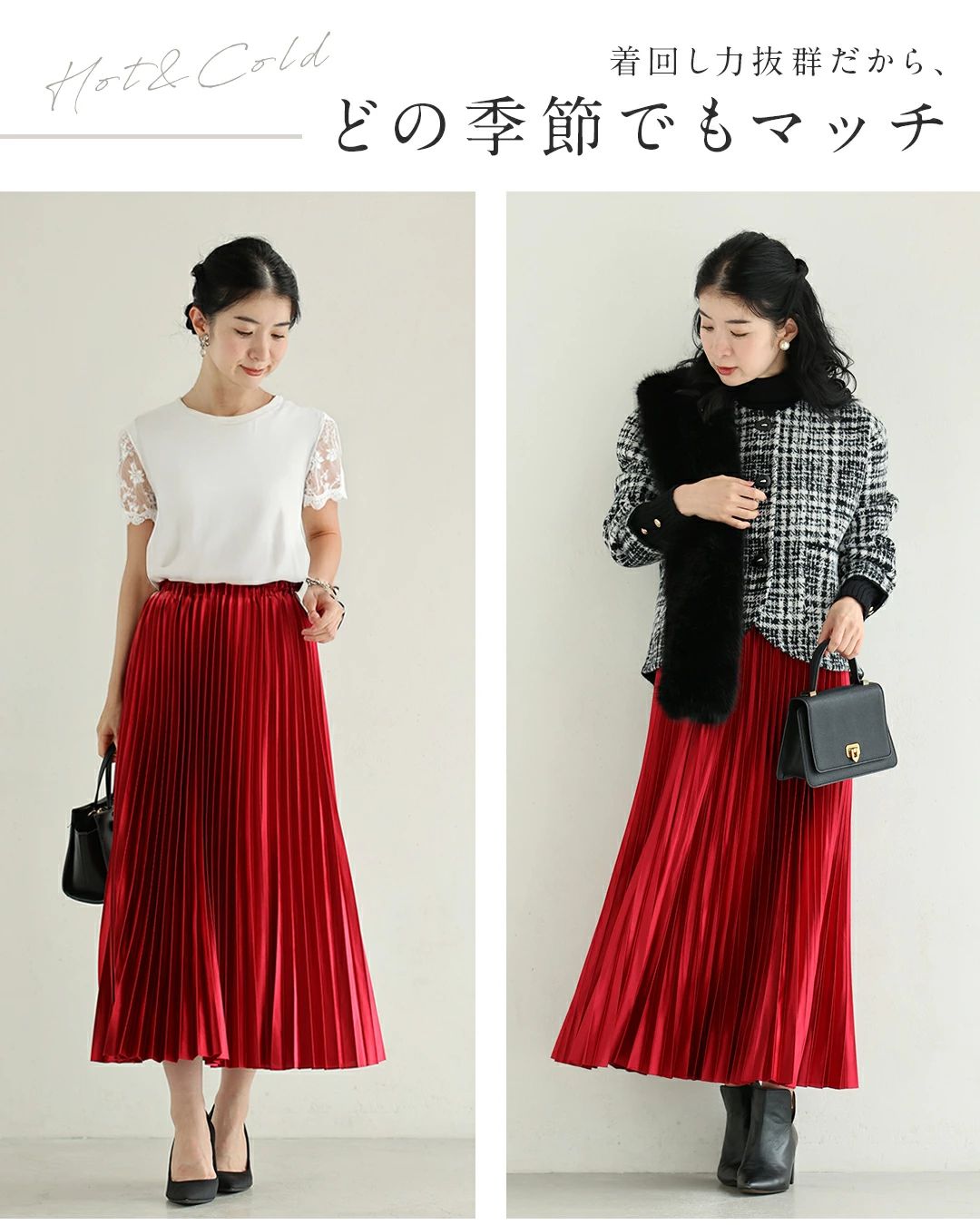 Sから3L対応 落ち感美しい 光沢プリーツスカート
