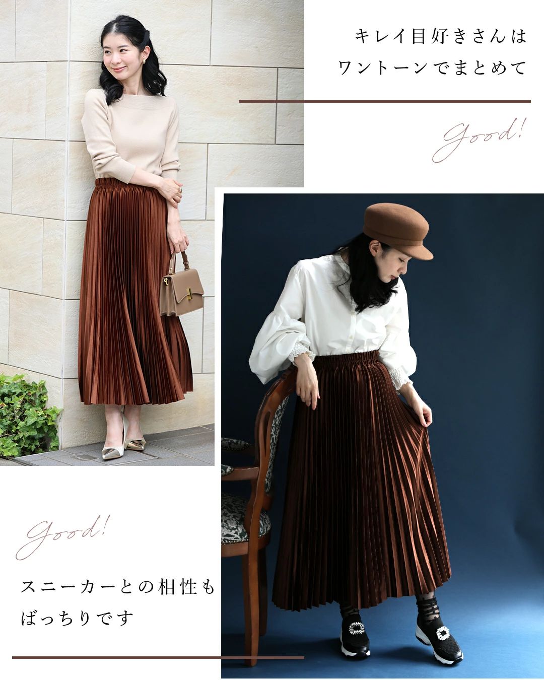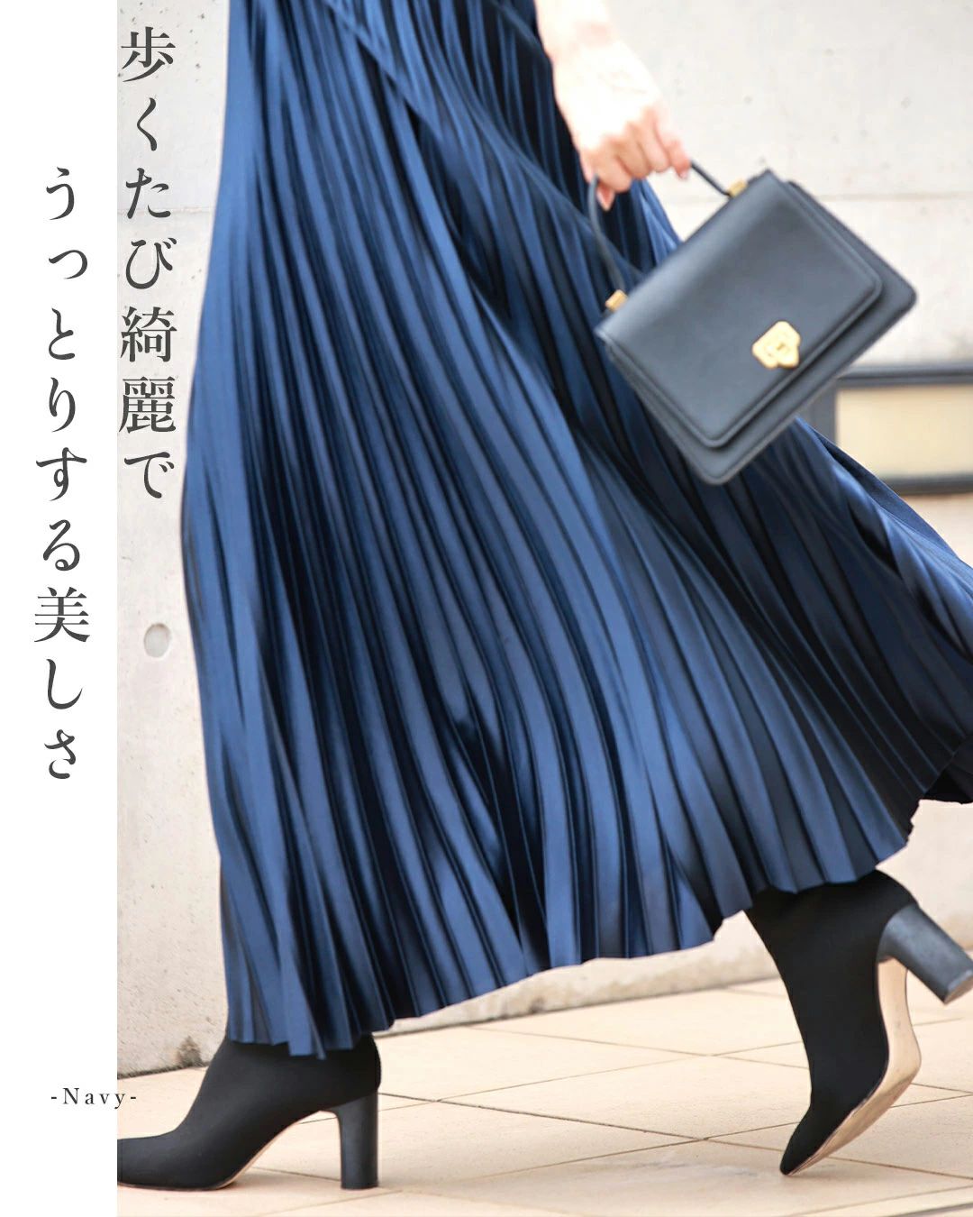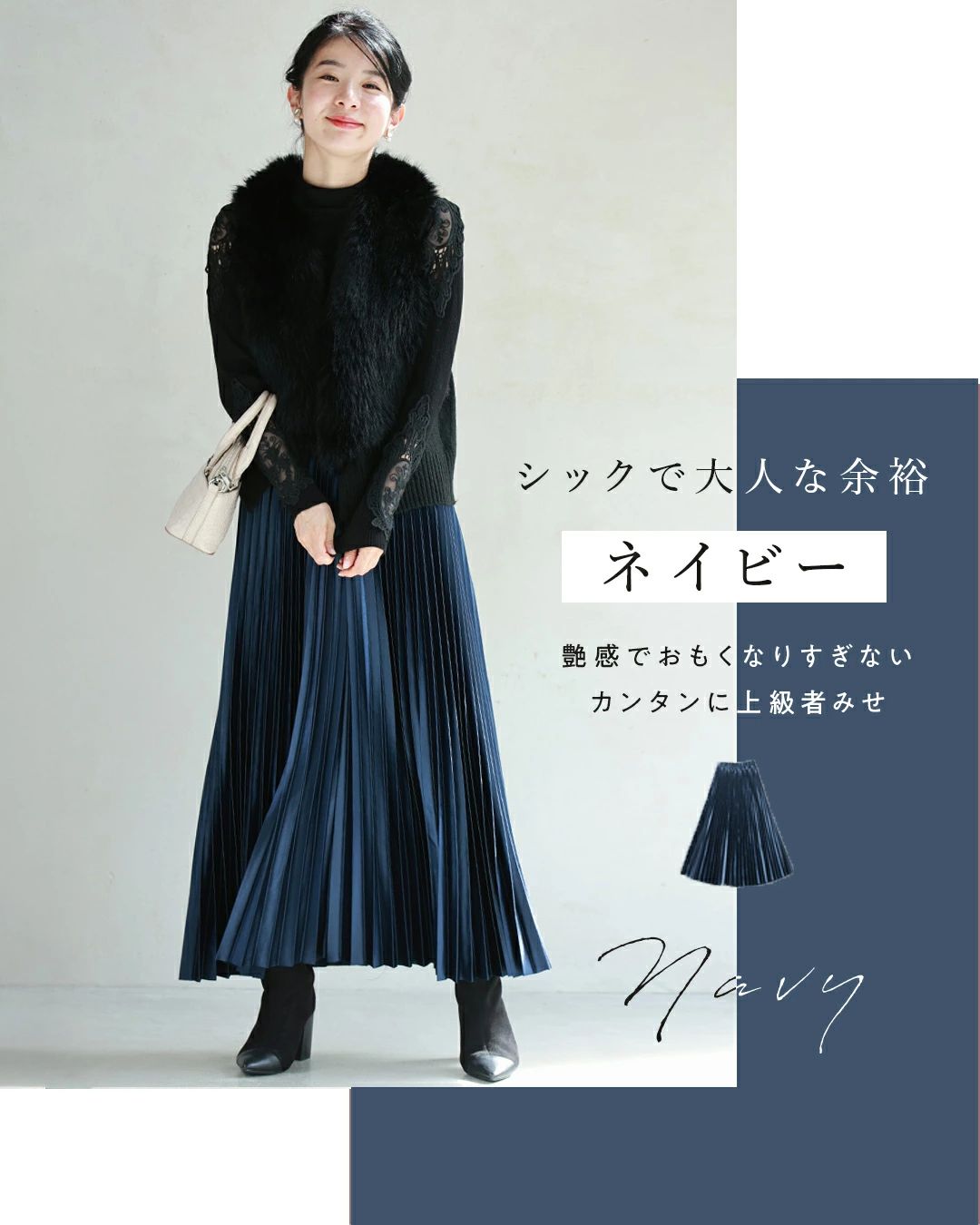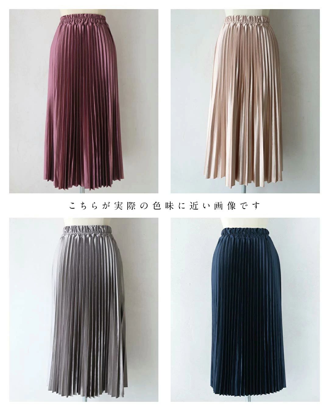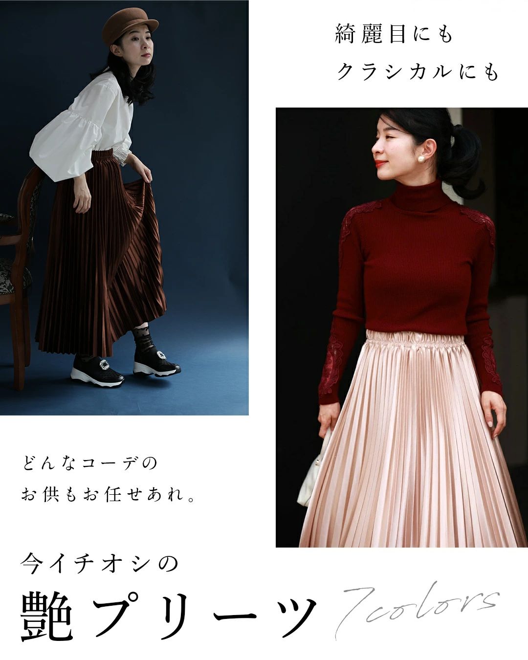 Sから3L対応 落ち感美しい 光沢プリーツスカート