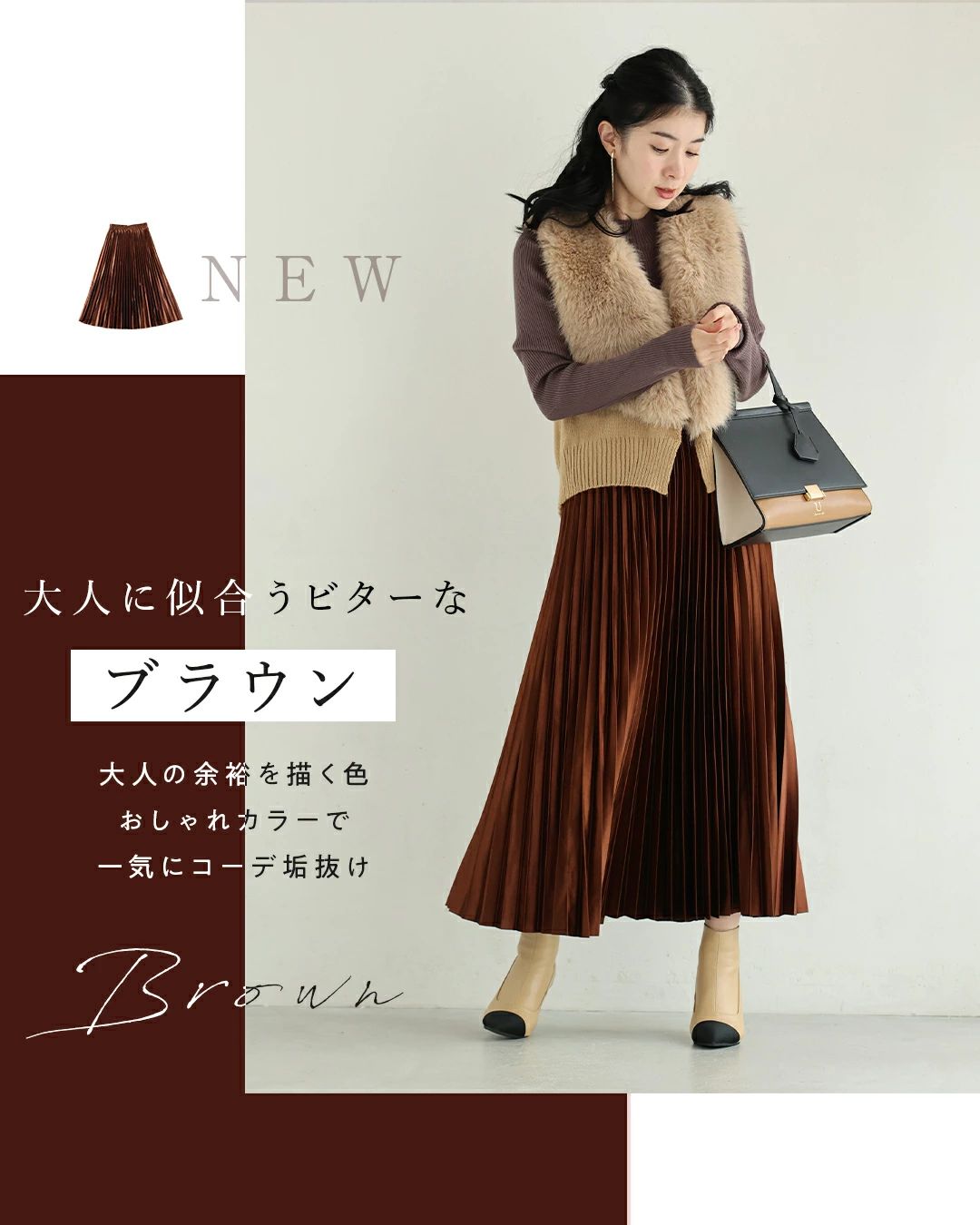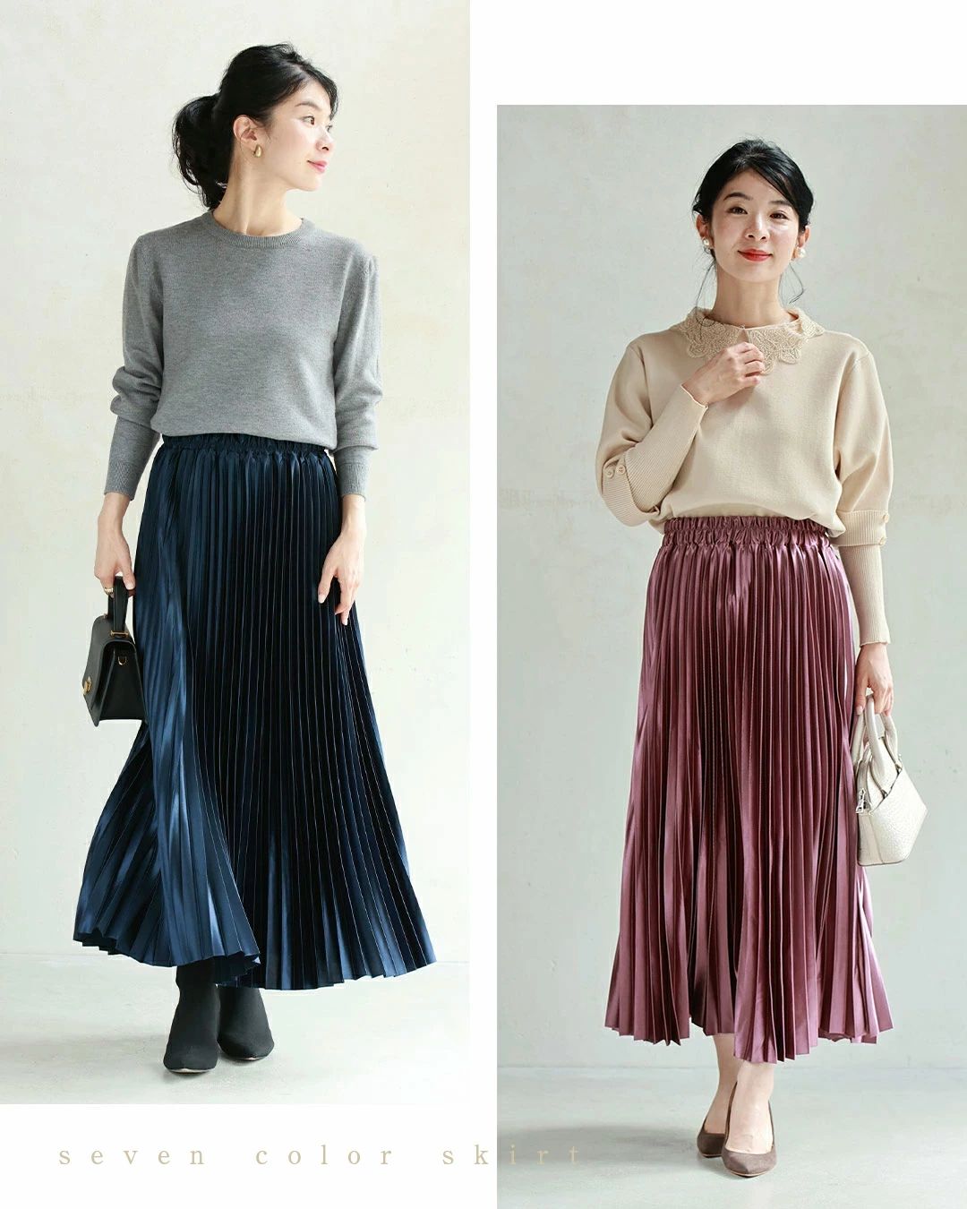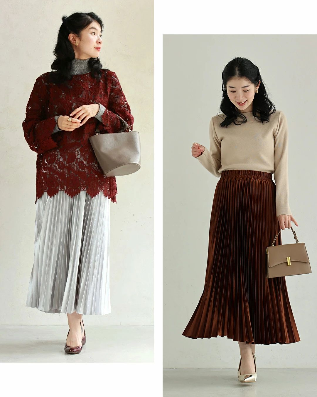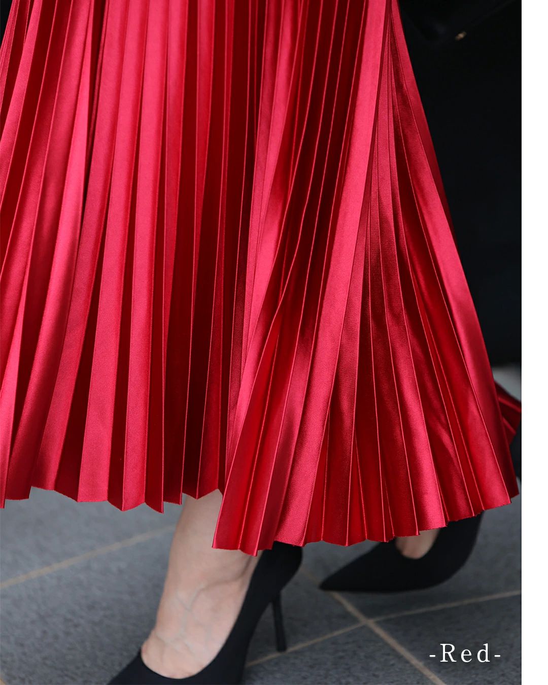 Sから3L対応 落ち感美しい 光沢プリーツスカート