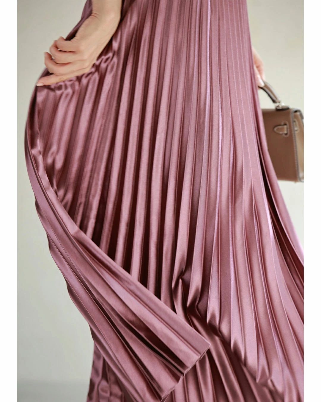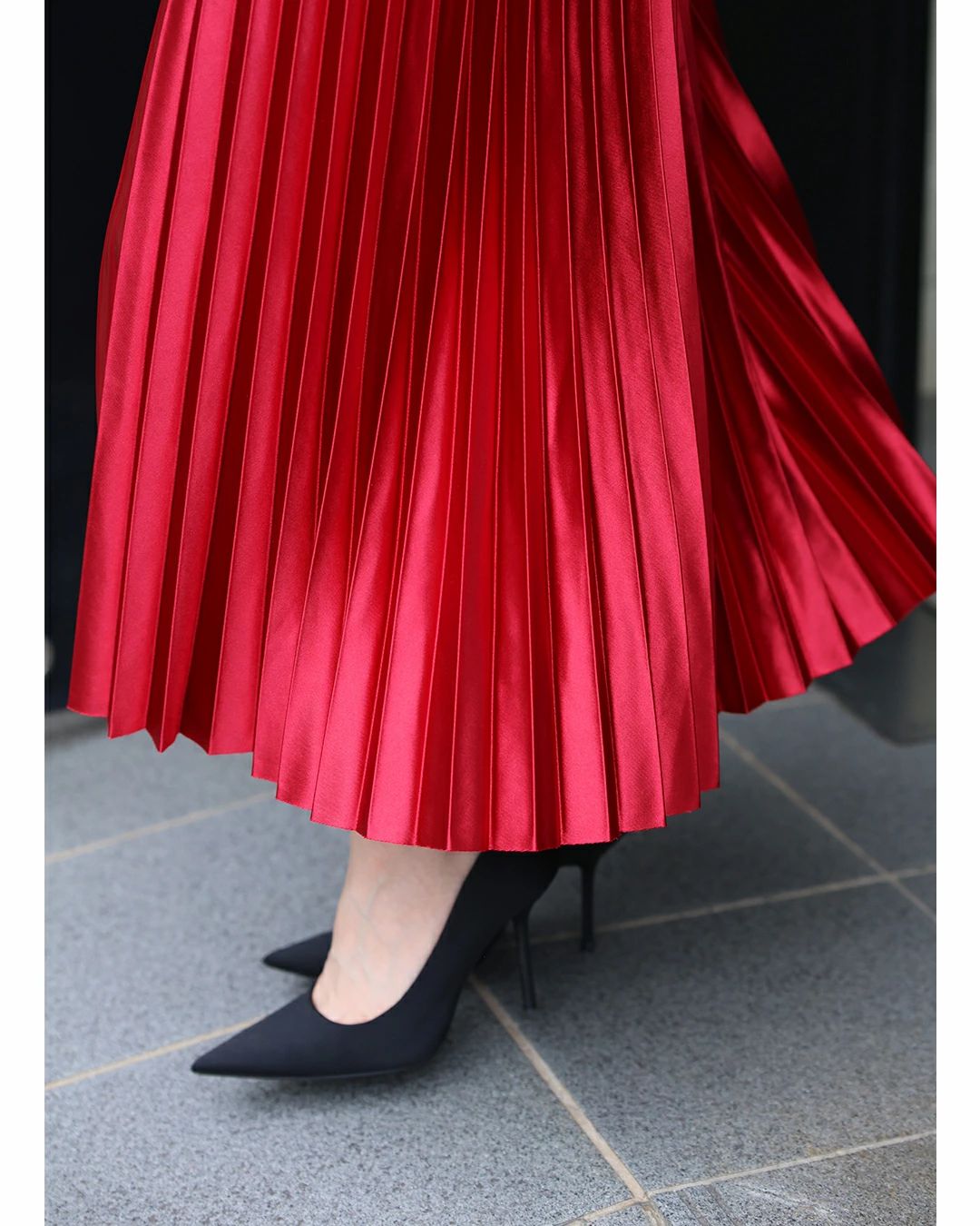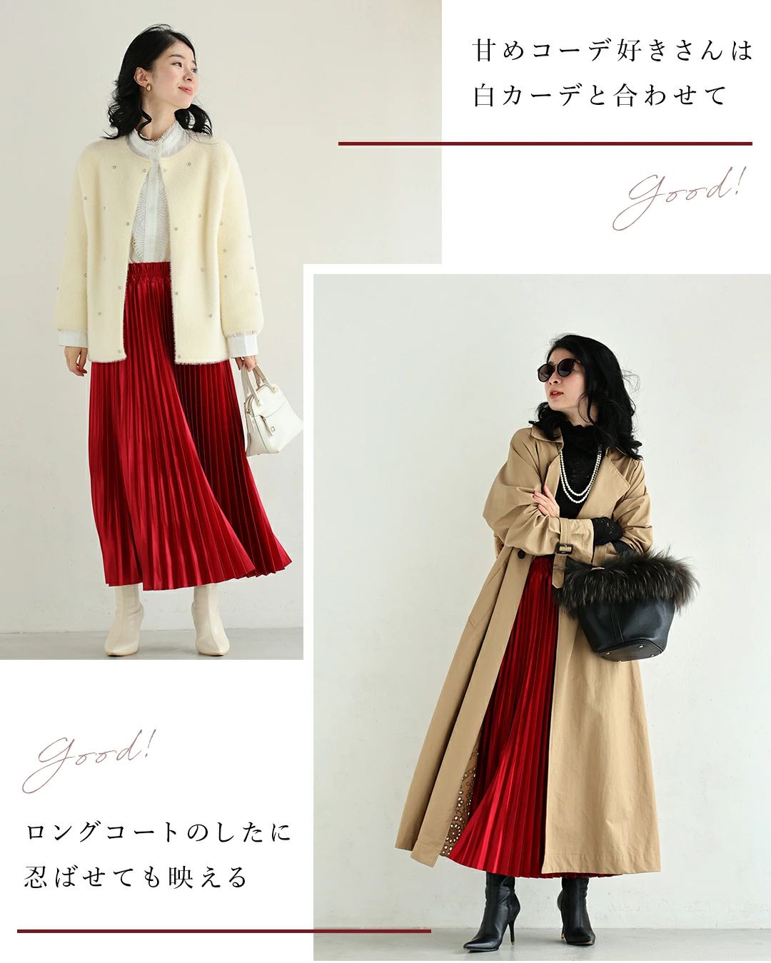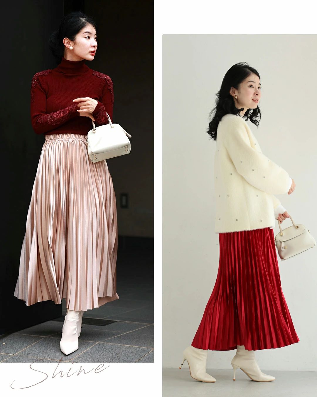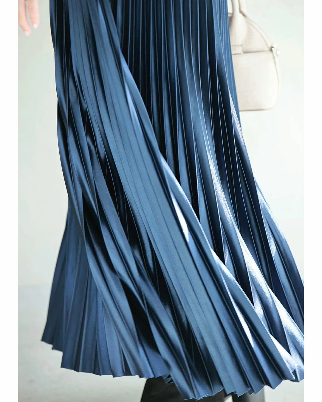 Sから3L対応 落ち感美しい 光沢プリーツスカート