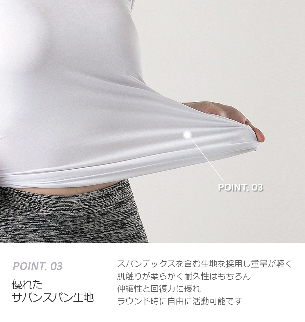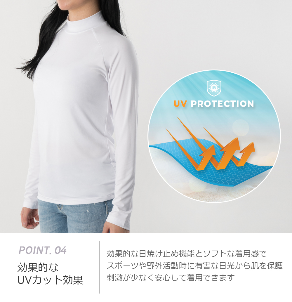 屋外スポーツにも最適なUVカット効果が備わっており、日差しから肌を守りながら快適な着心地を提供します。